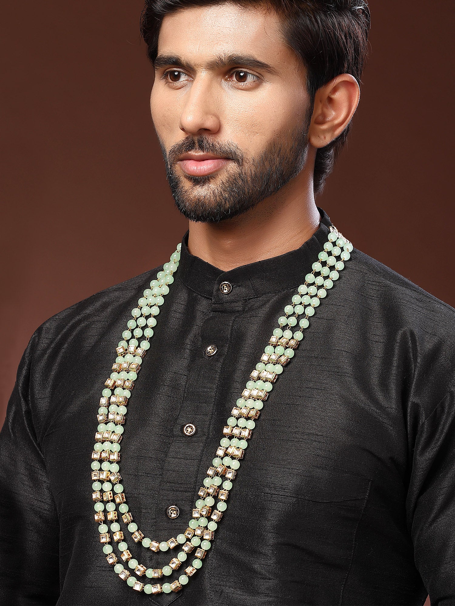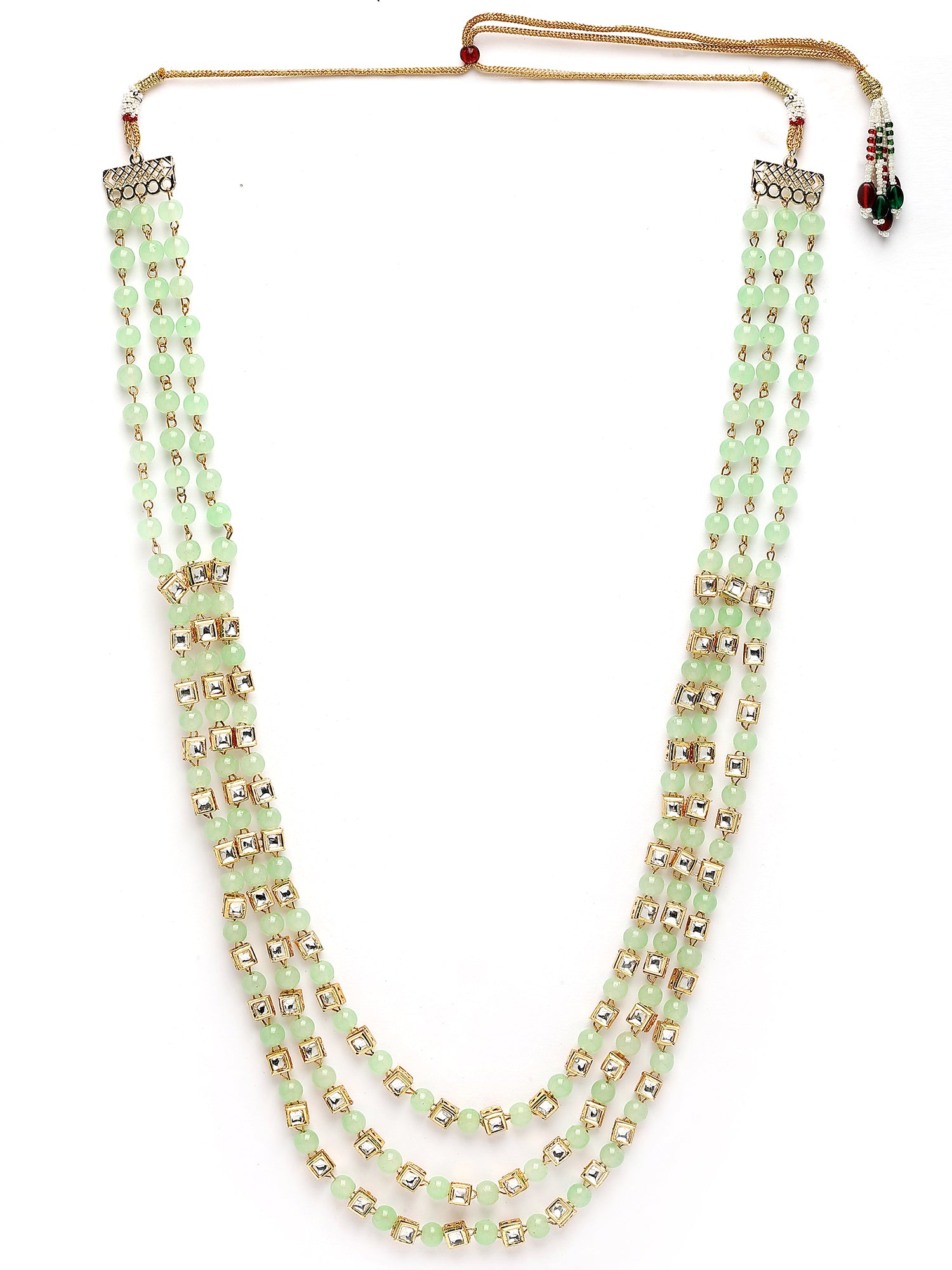 Karatcart Luxurious Polki Kundan Lime Green Moti Maharaja Haar for Men