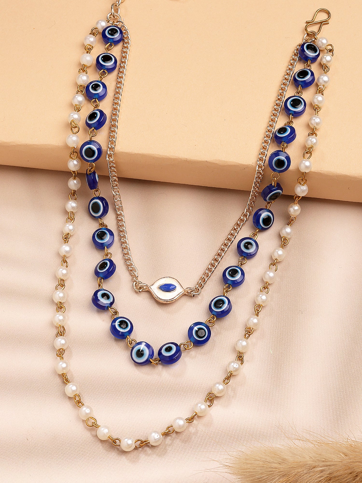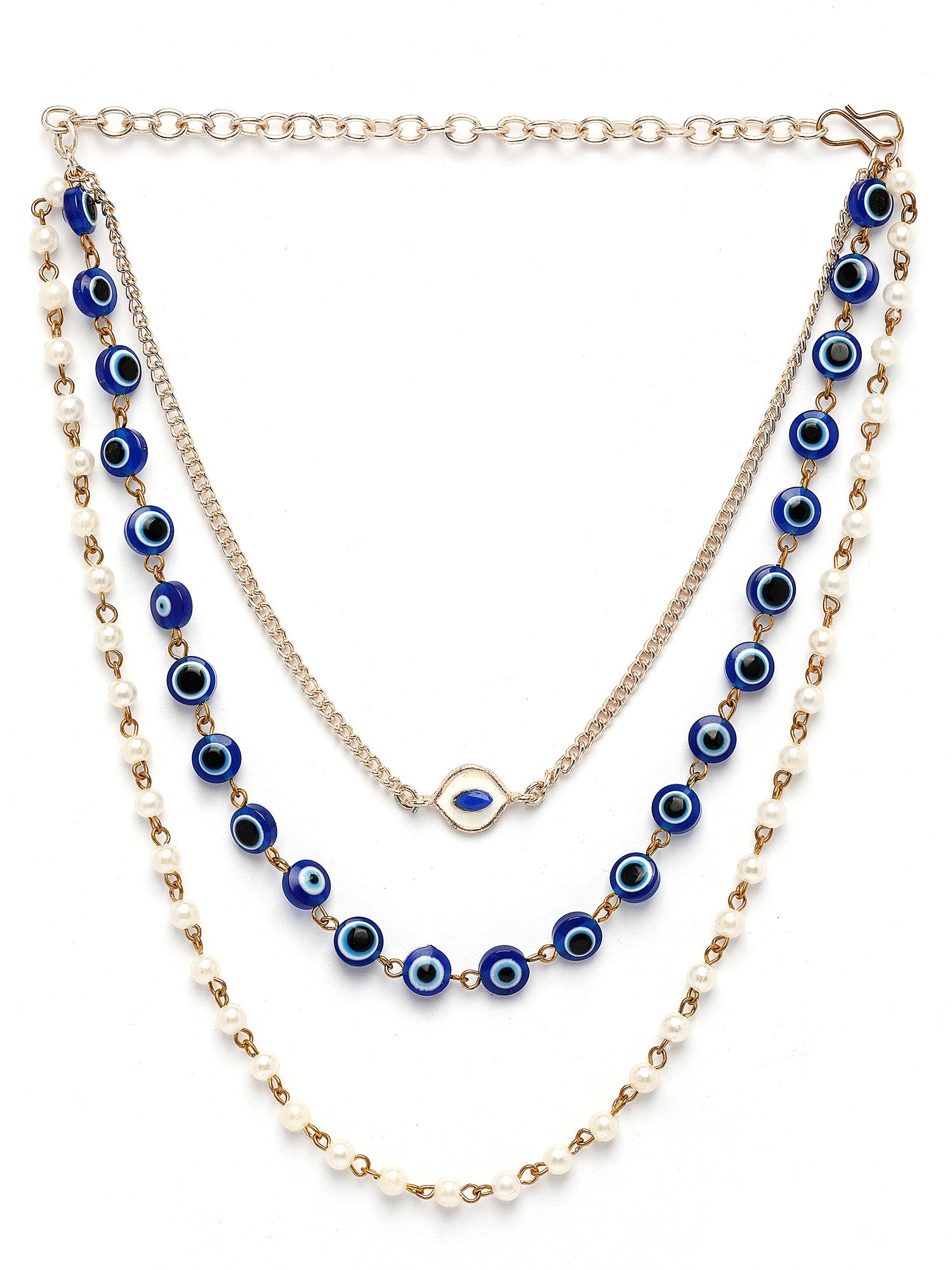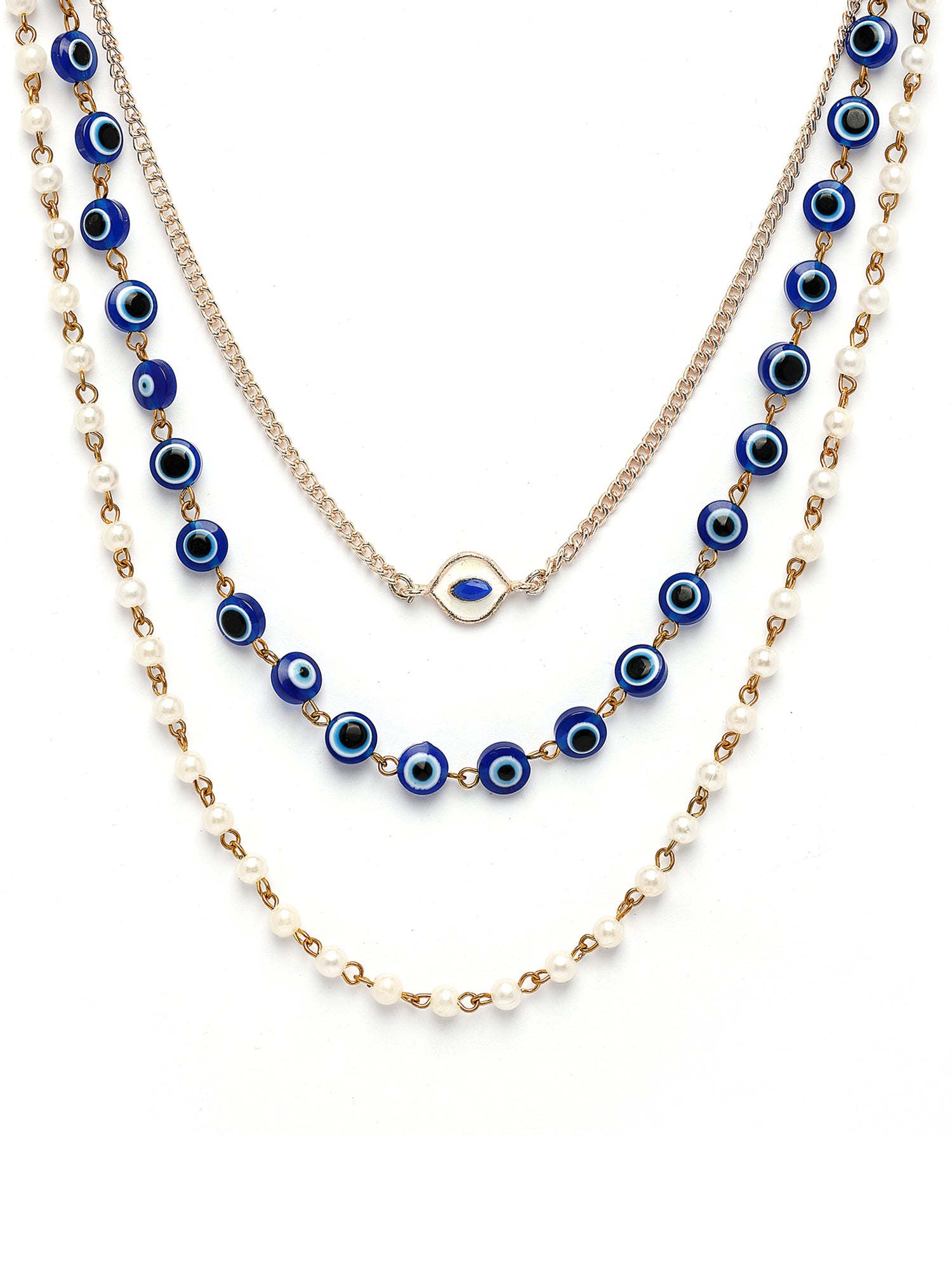 Bohey by KARATCART Handcrafted Multi-Strand Necklace with Evil Eye and Pearls for Women