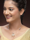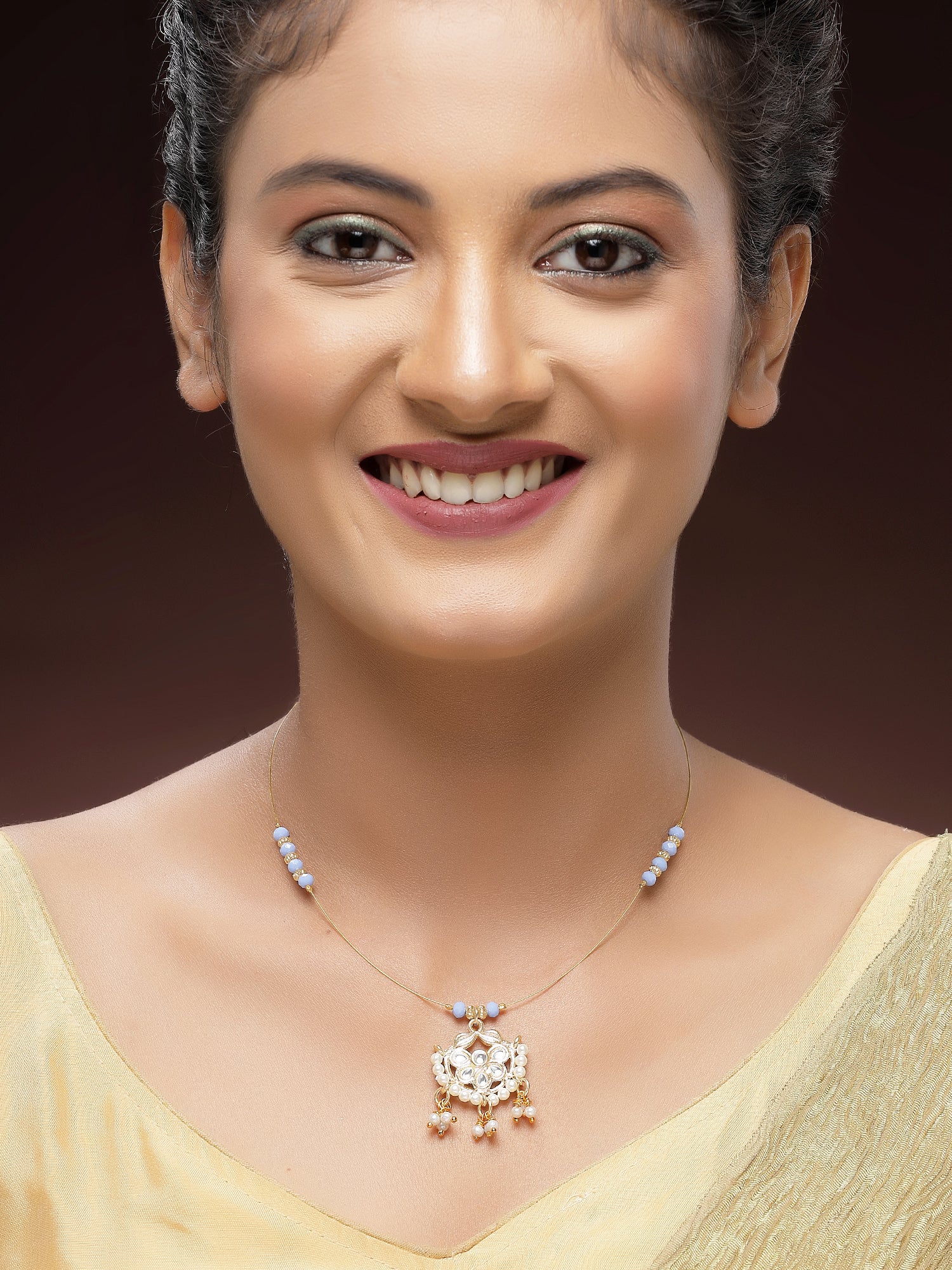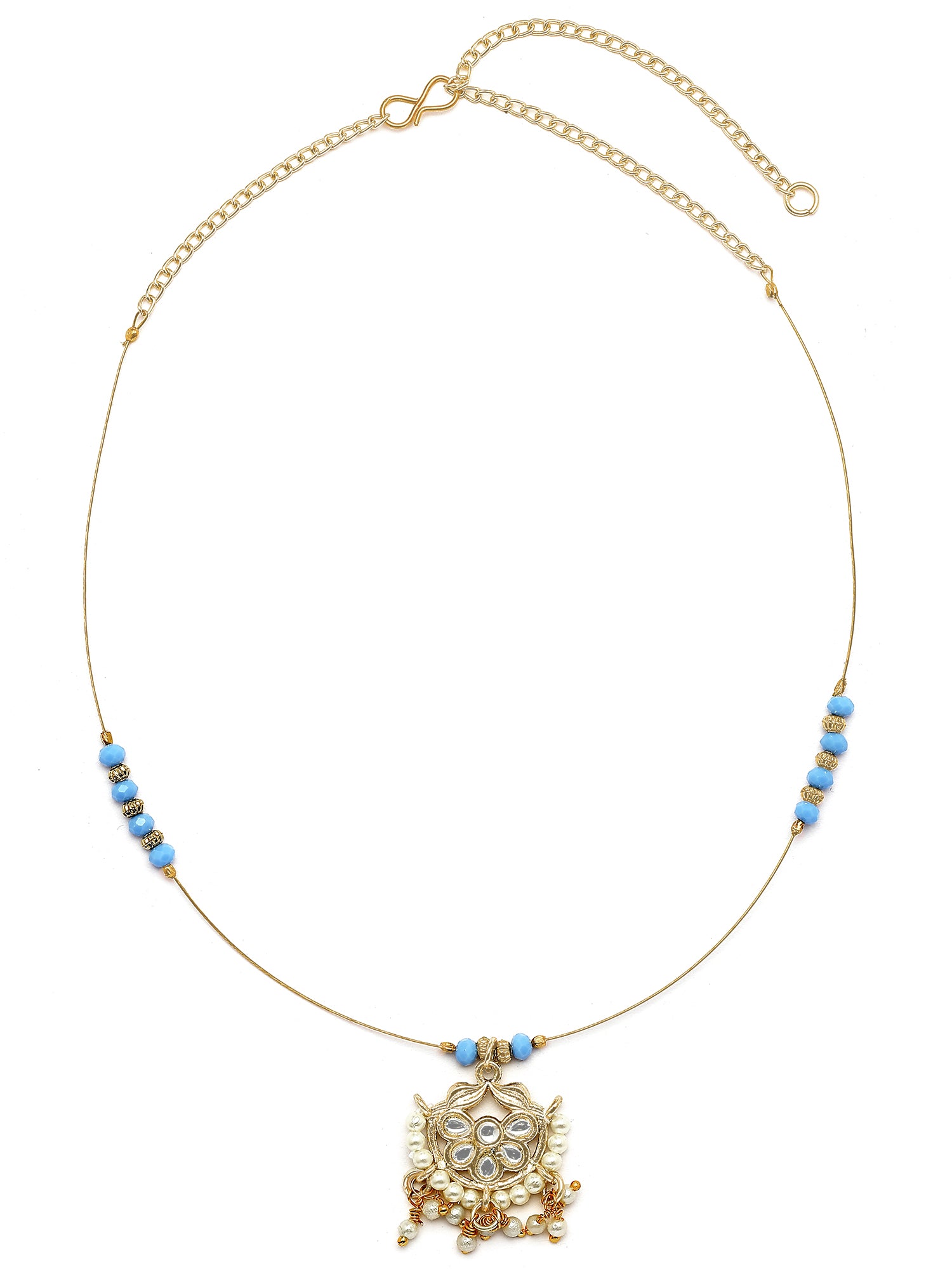 KARATCART Designer Gold-Plated Blue Crystal Floral Kundan Minimalist Necklace for Women