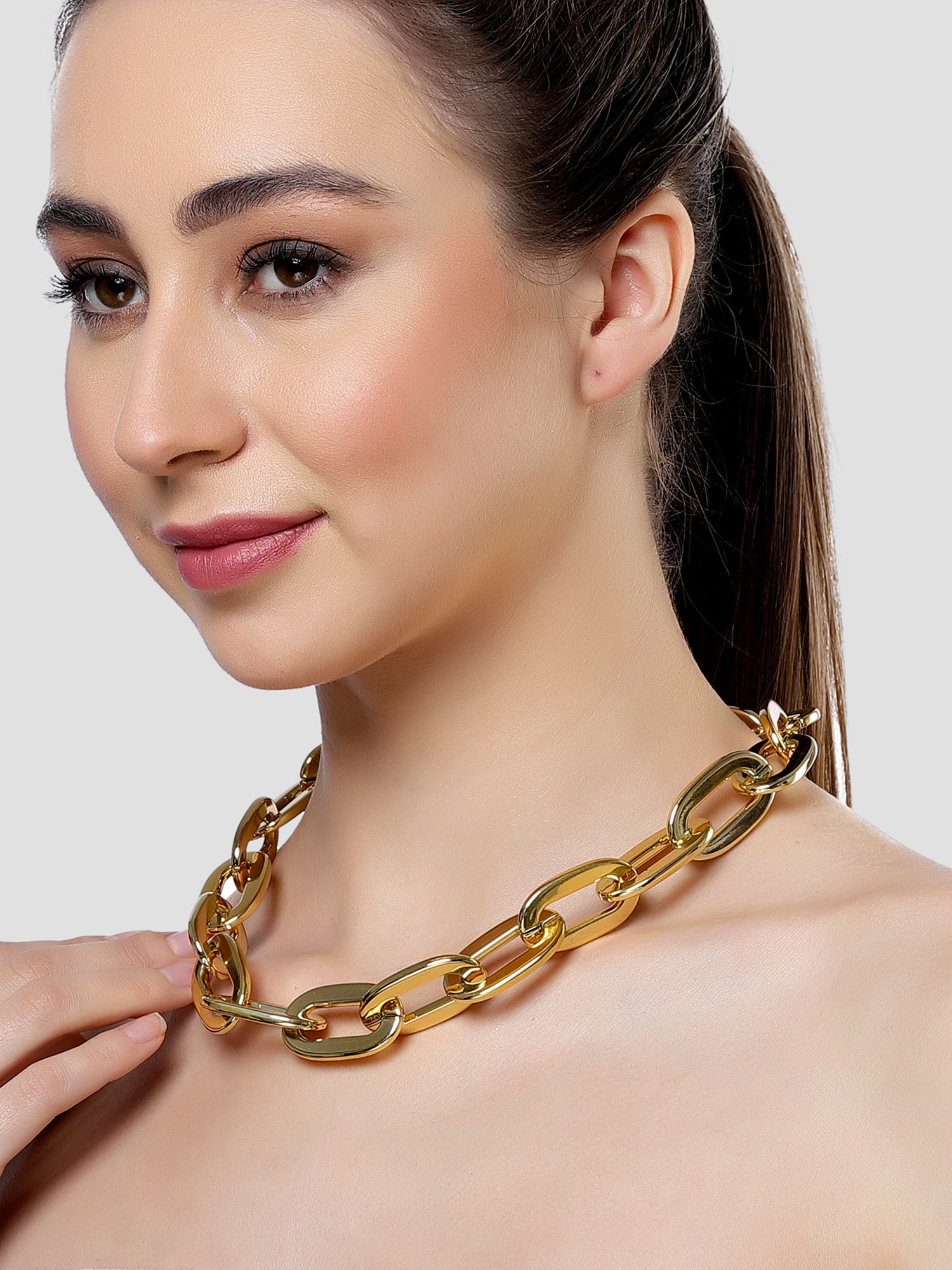 Bohey by KARATCART Big Chunky Gold Western Link Necklace for Women