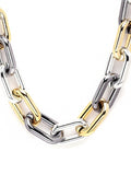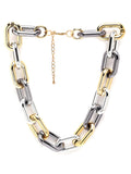 A bold and versatile accessory designed to make a statement. This stunning necklace features an intricate blend of gold, silver, and black links, creating a unique and eye-catching design that complements any outfit. Perfect for adding a touch of modern Western flair, this chunky necklace is ideal for both casual and formal occasions. The high-quality materials ensure durability and a lasting shine, making this piece a valuable addition to your jewelry collection.