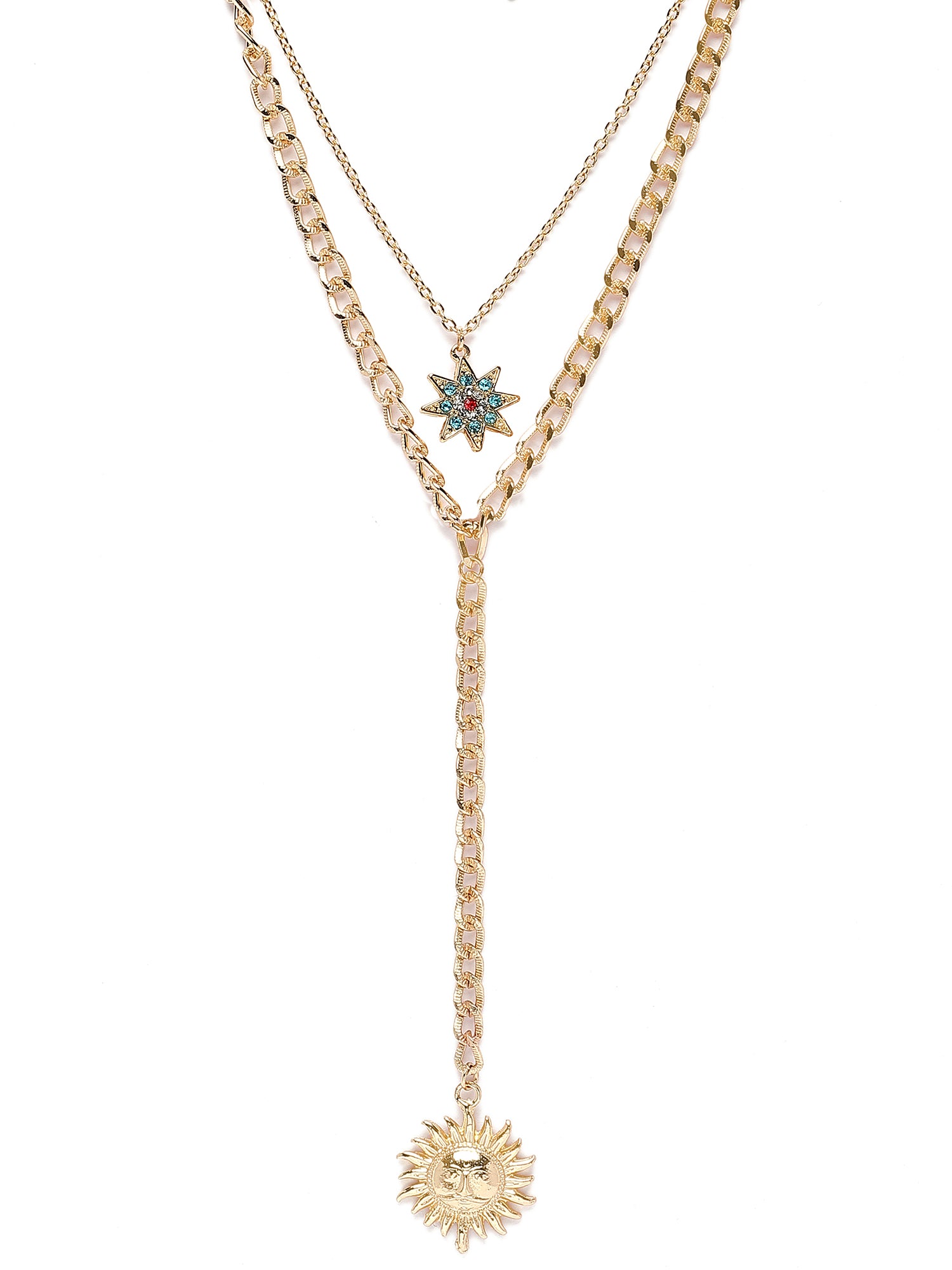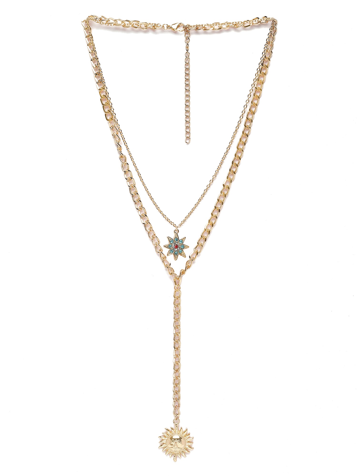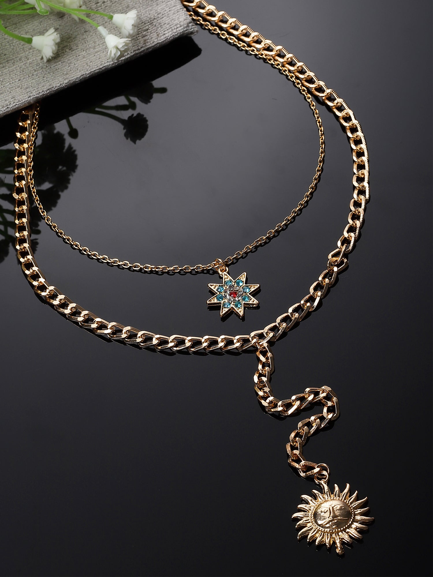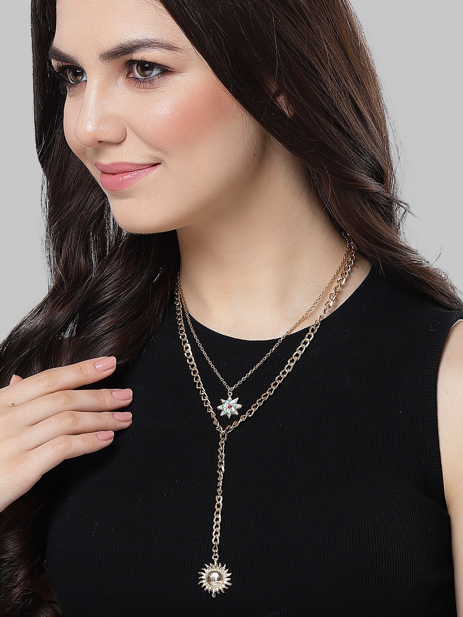 Bohey by KARATCART Gold Plated Sun and Star Multicharm Multilayered Chain Necklace for Women