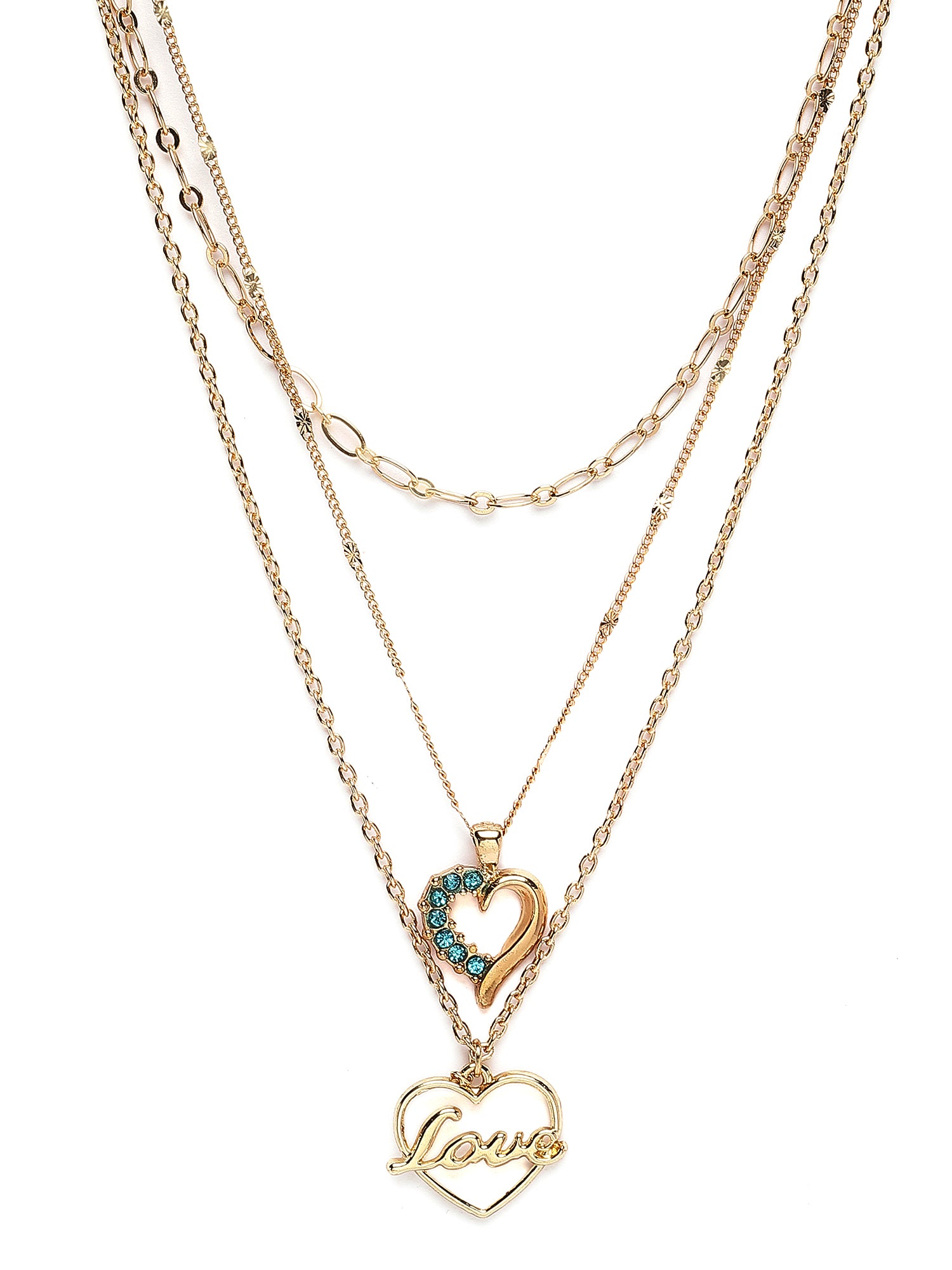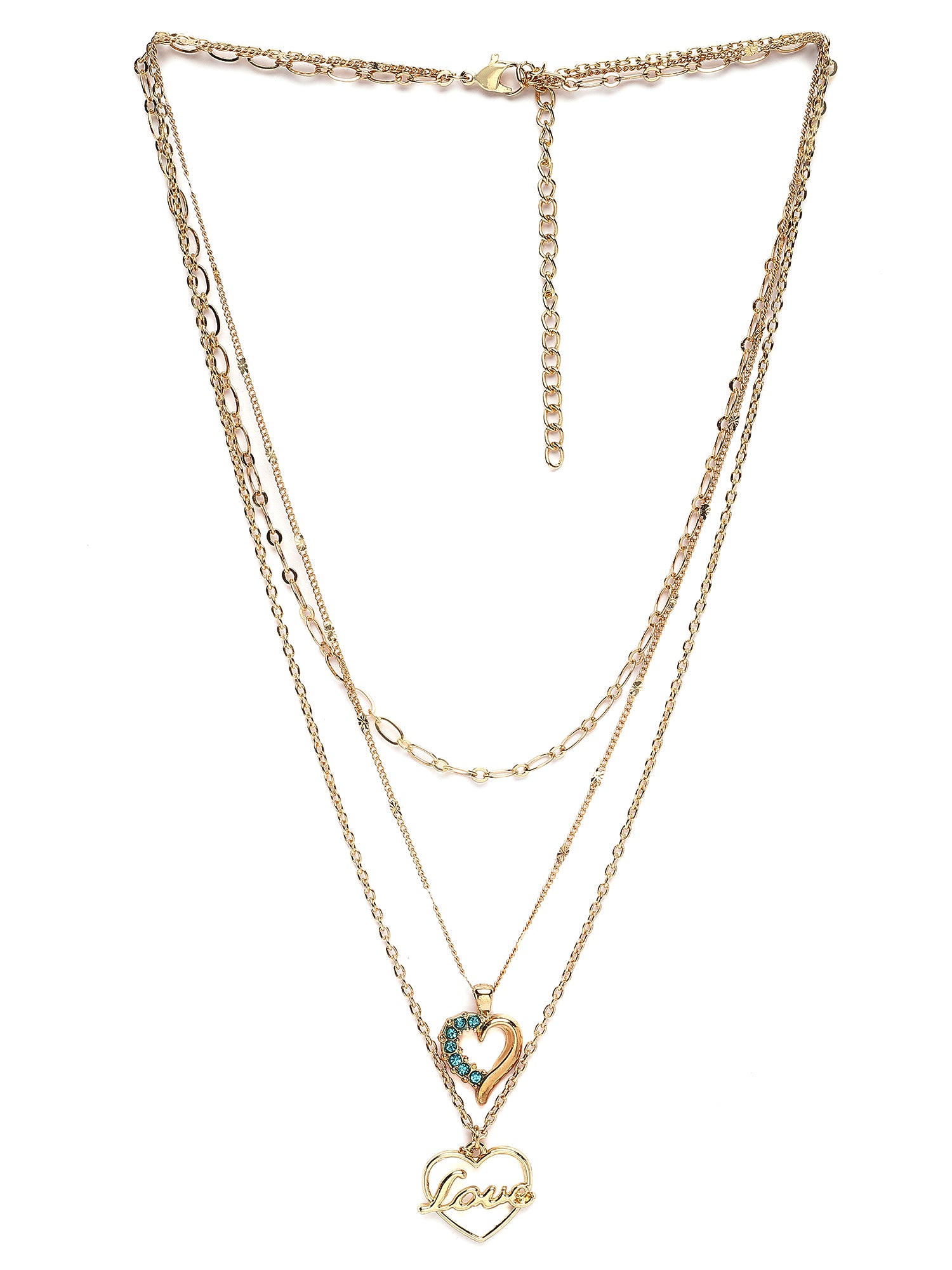 Bohey by KARATCART Gold Plated Love & Heart Shape Multicharm Multilayered Chain Necklace for Women