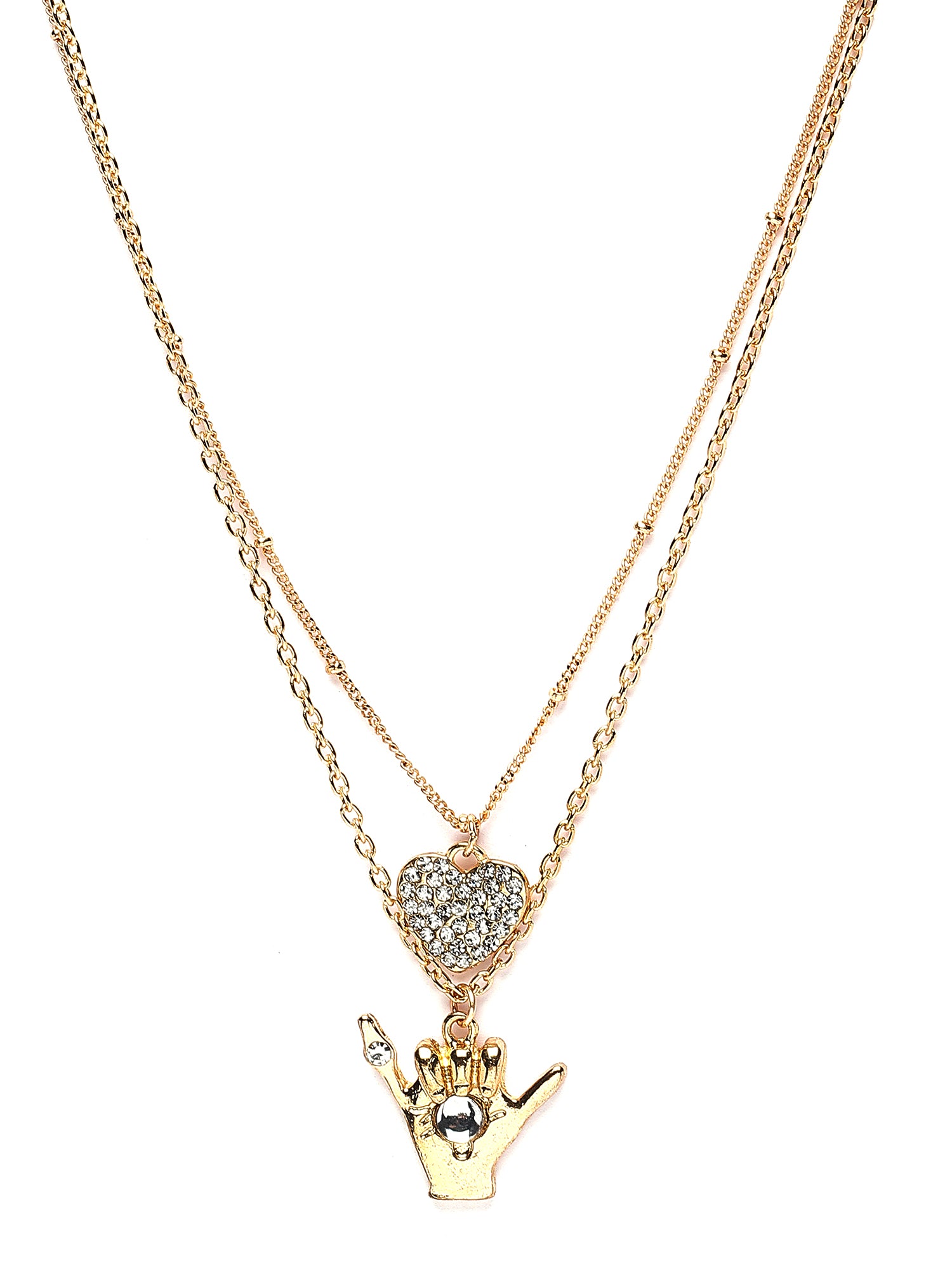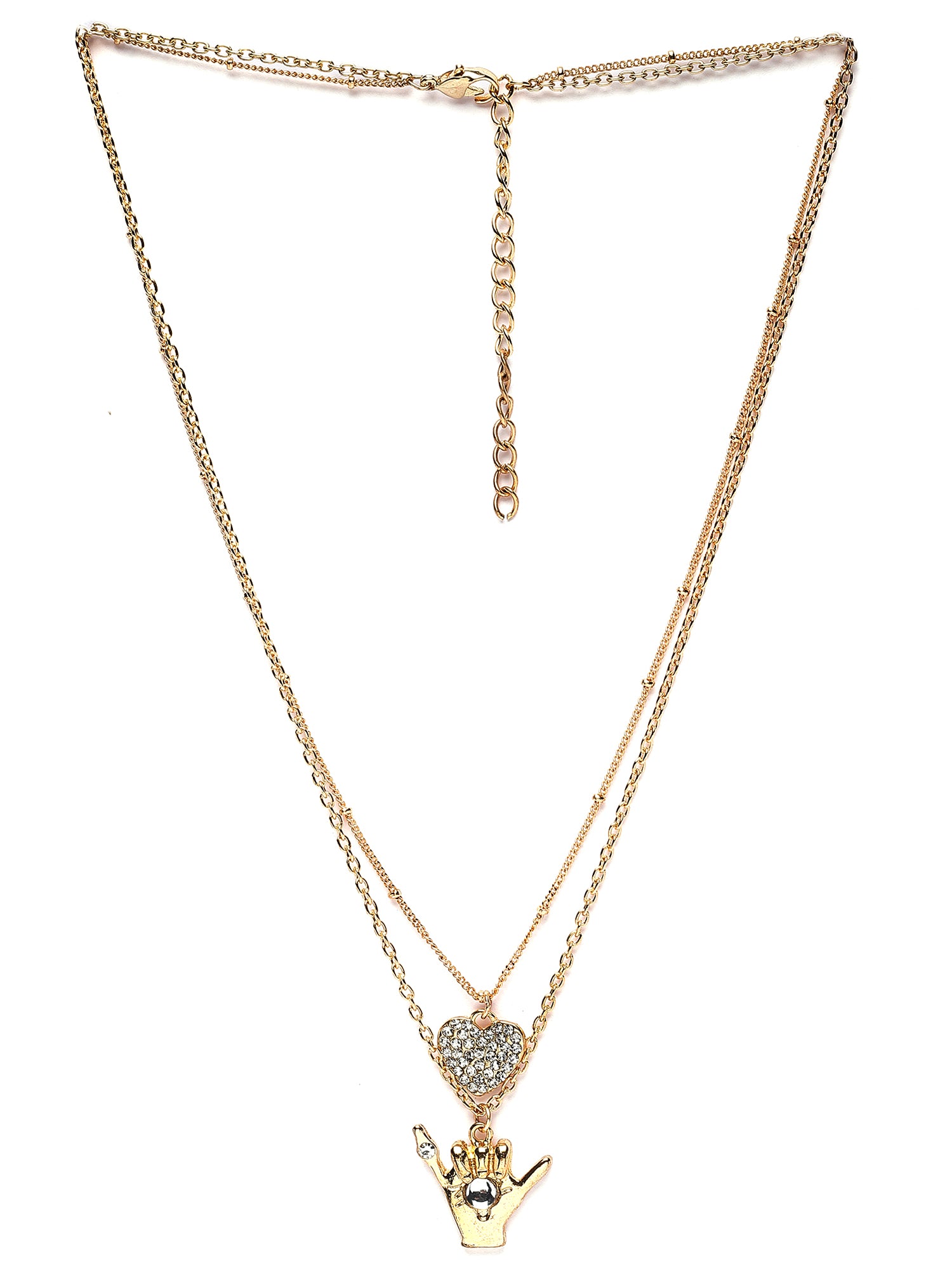 Bohey by KARATCART Gold Plated Heart and Hand Multicharm Multilayered Chain Necklace for Women