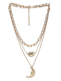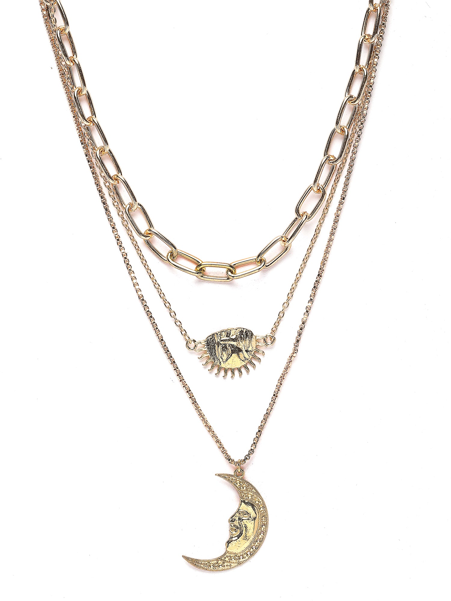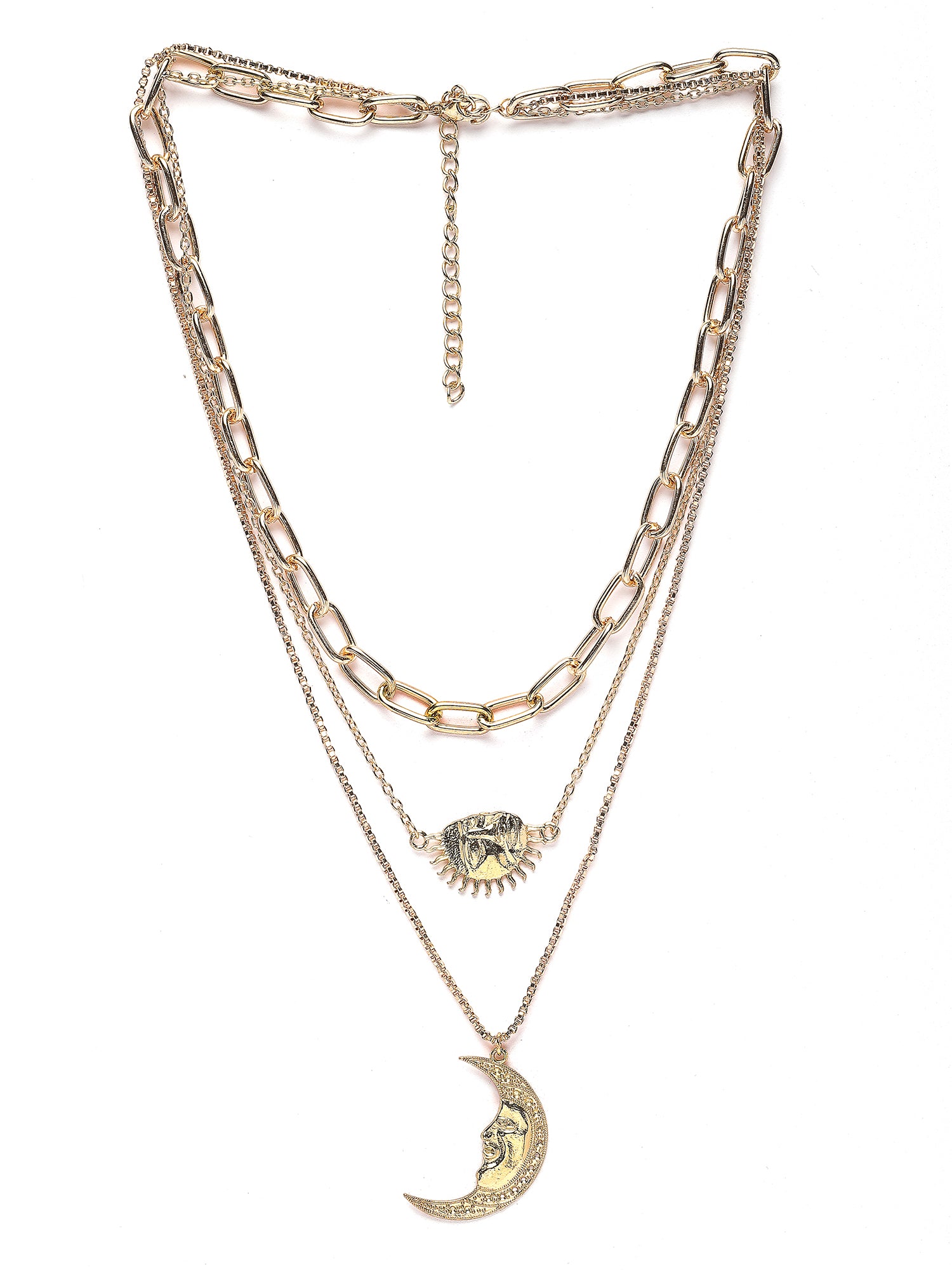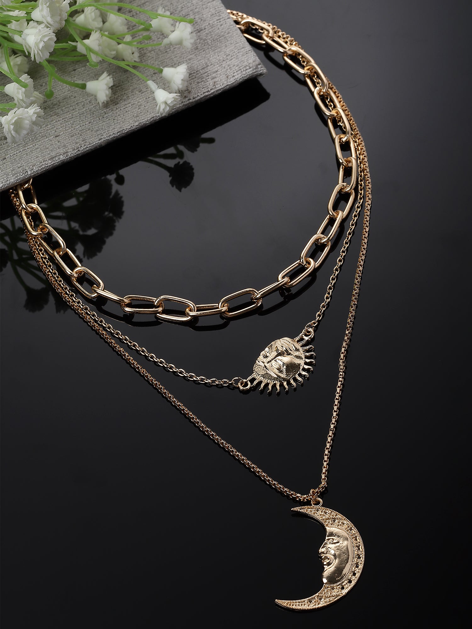 Bohey by KARATCART Gold Plated Half Sun and Moon Multicharm Multilayered Chain Necklace for Women