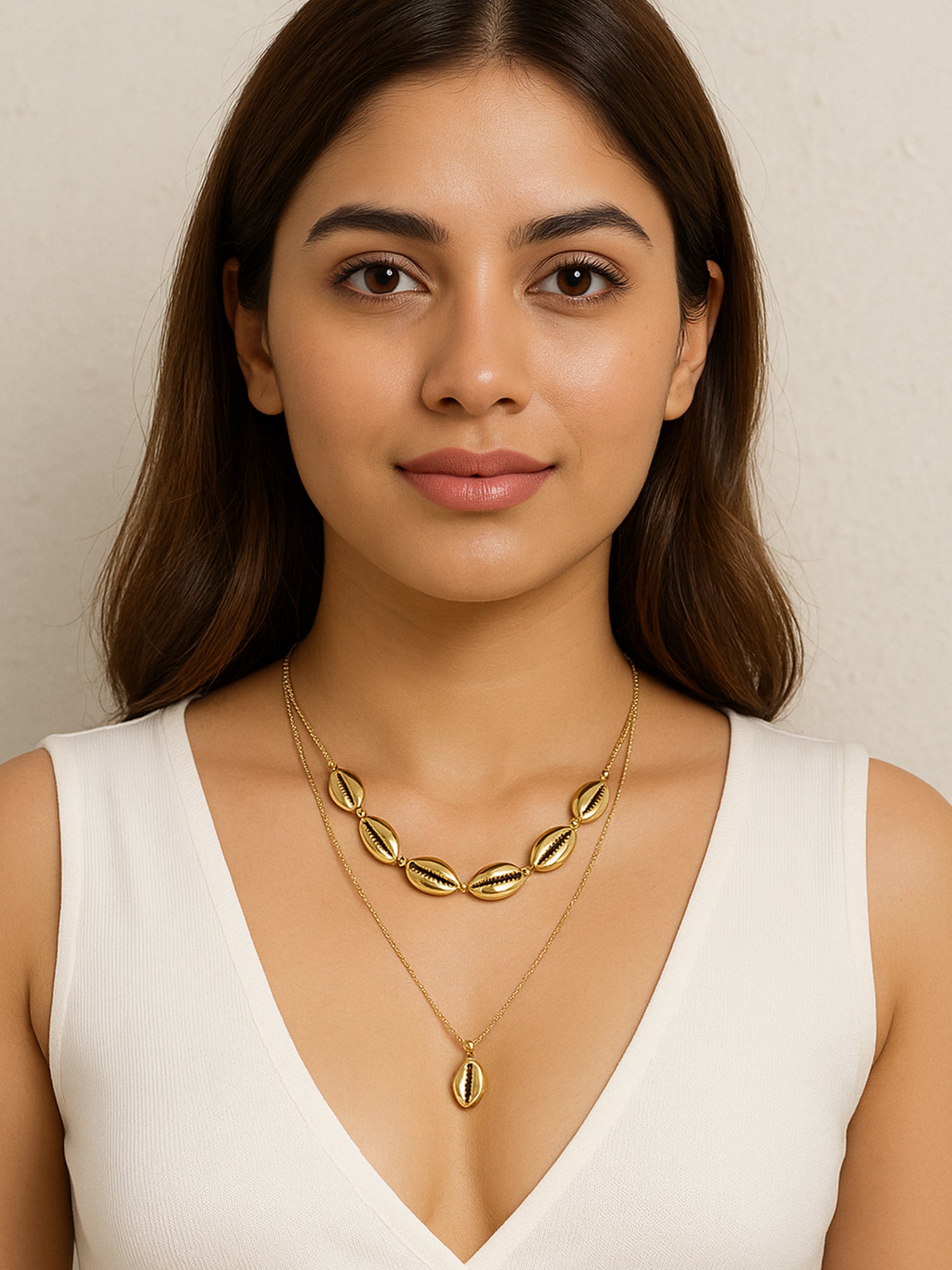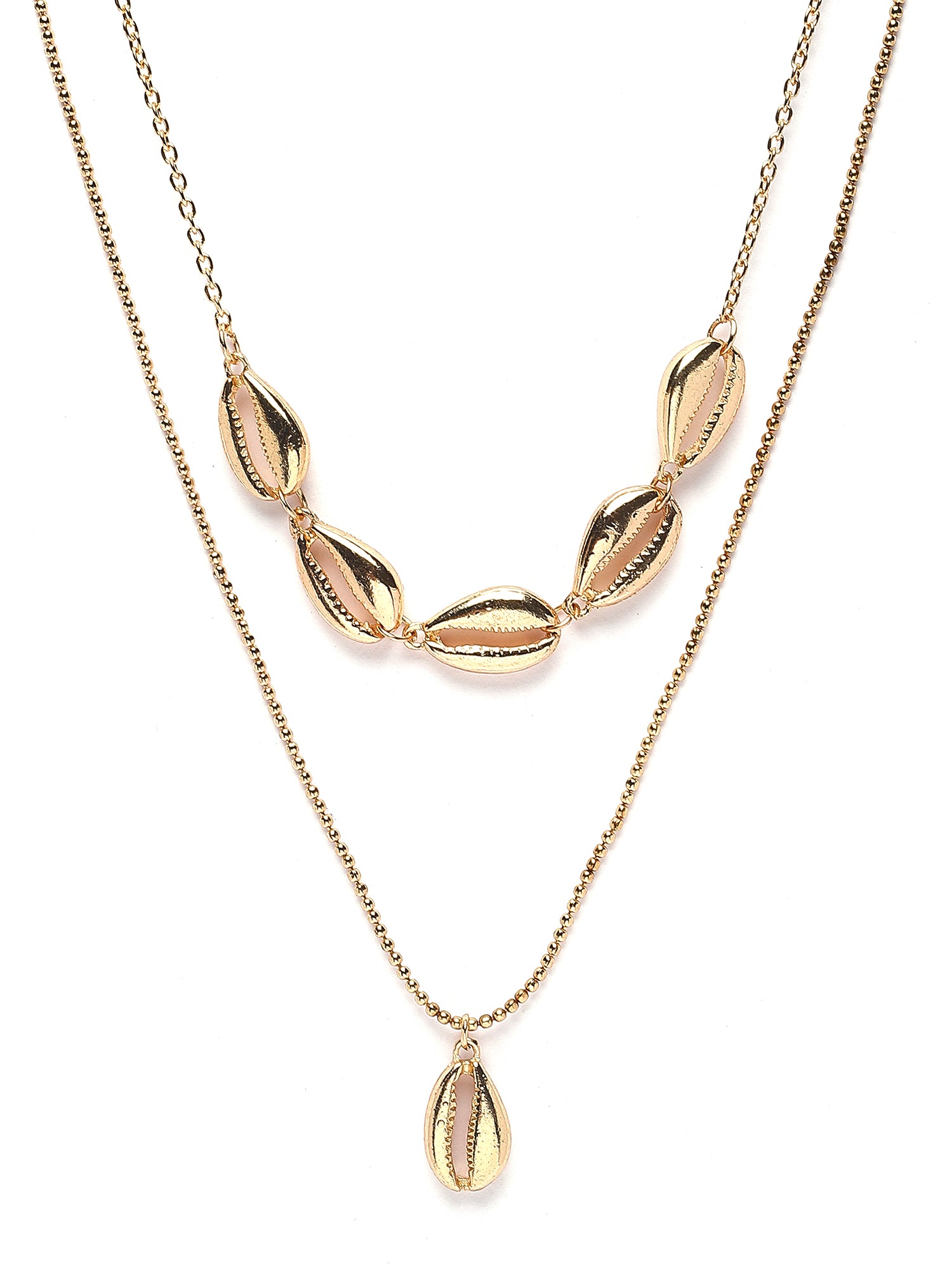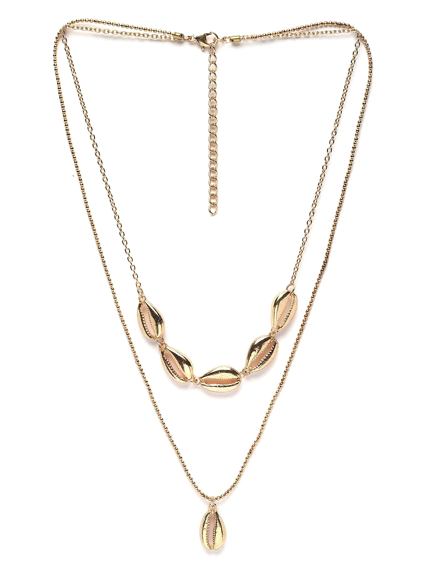 Bohey by KARATCART Gold Plated Cowrie Shell Multicharm Multilayered Chain Necklace for Women