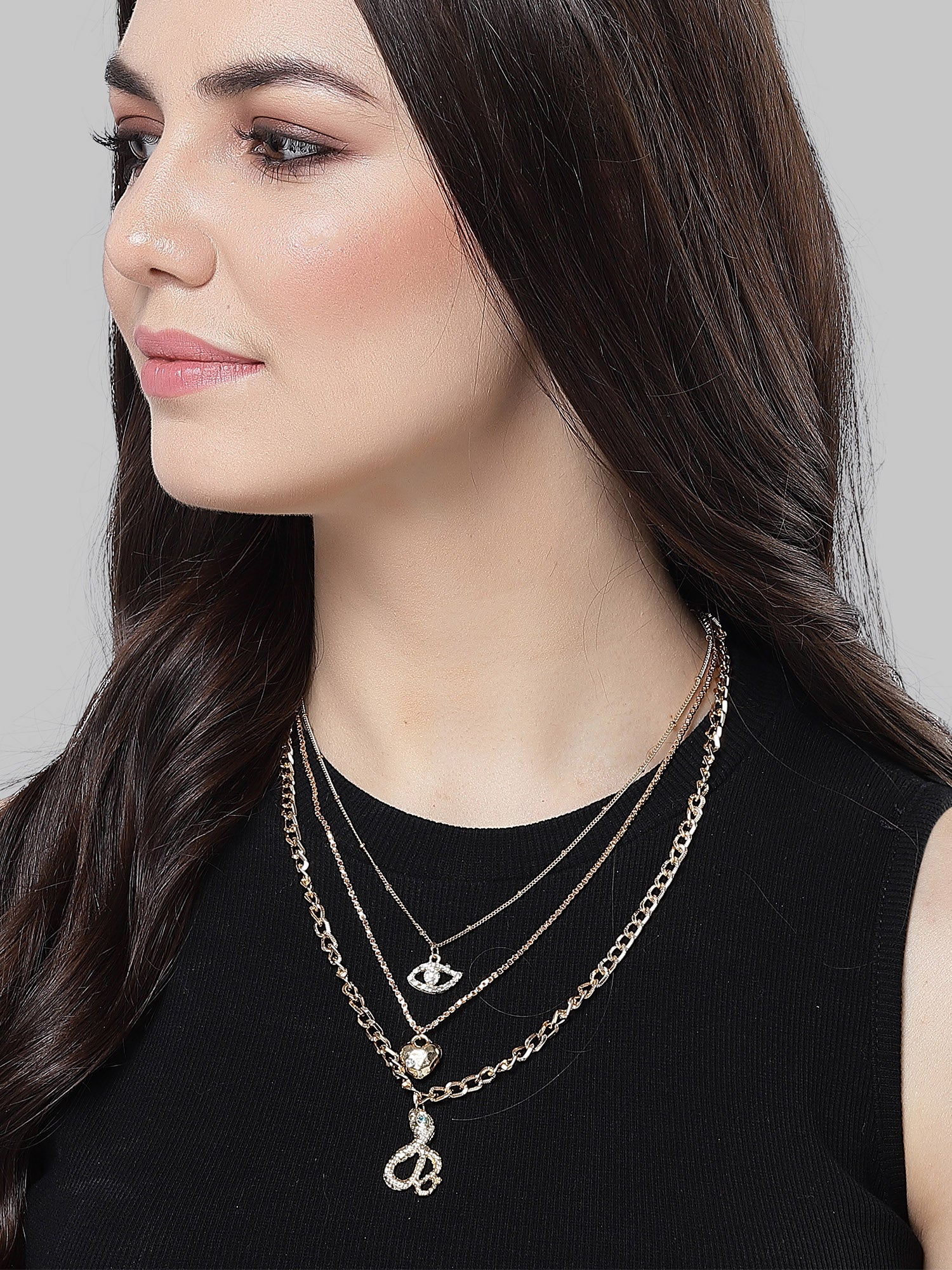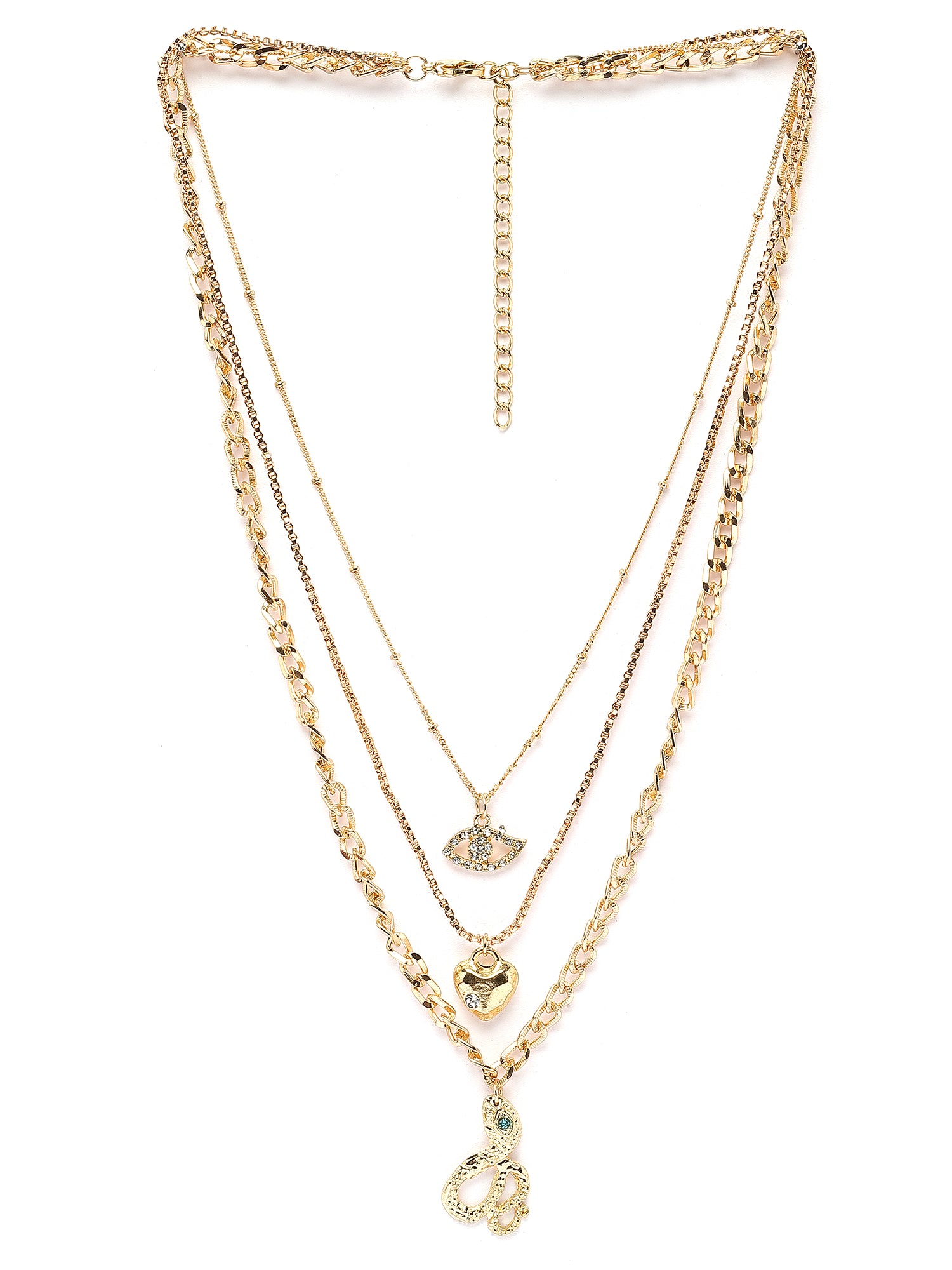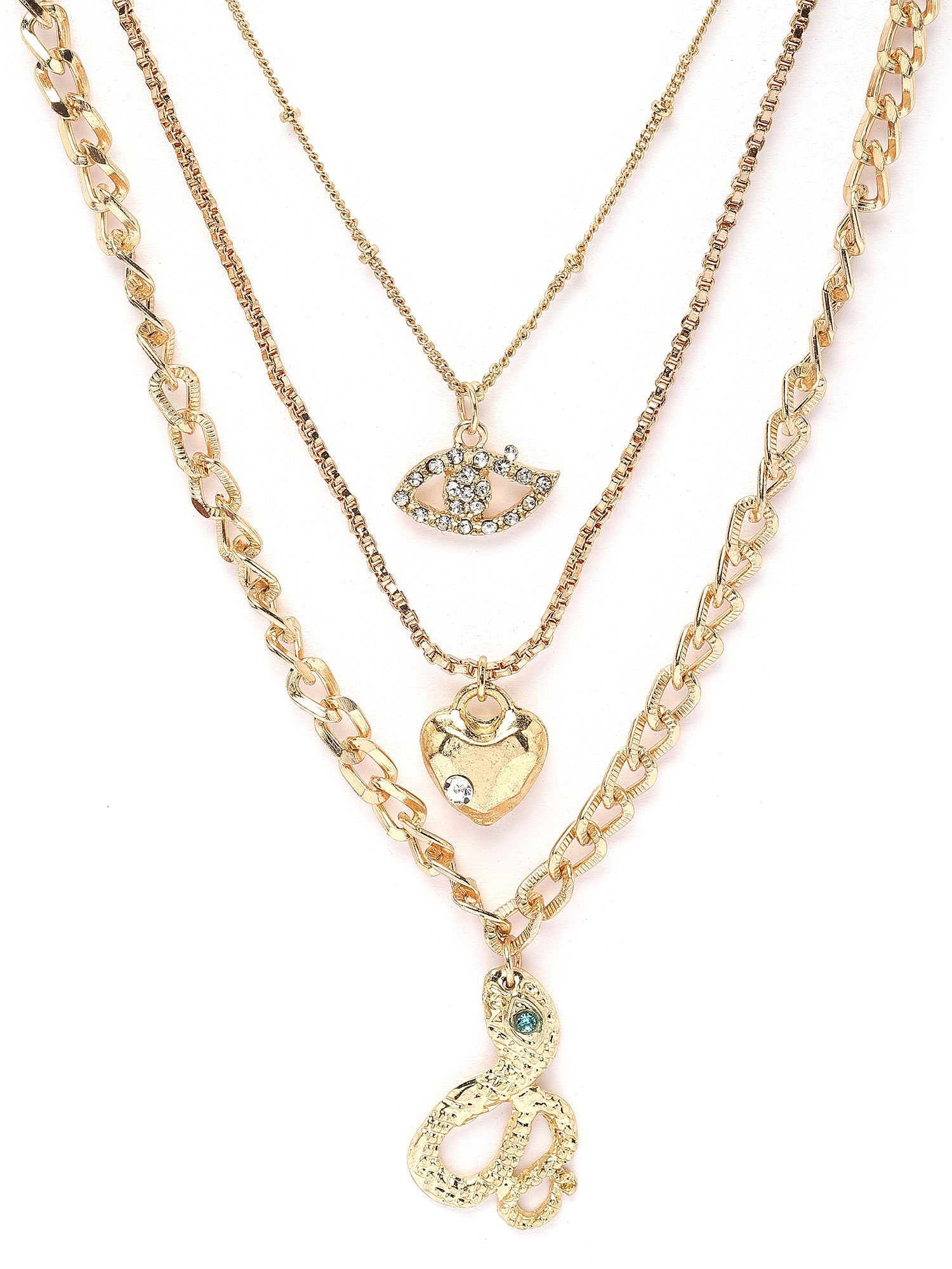 Bohey by KARATCART Gold Plated Snake and Heart Multicharm Multilayered Chain Necklace for Women