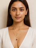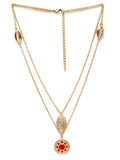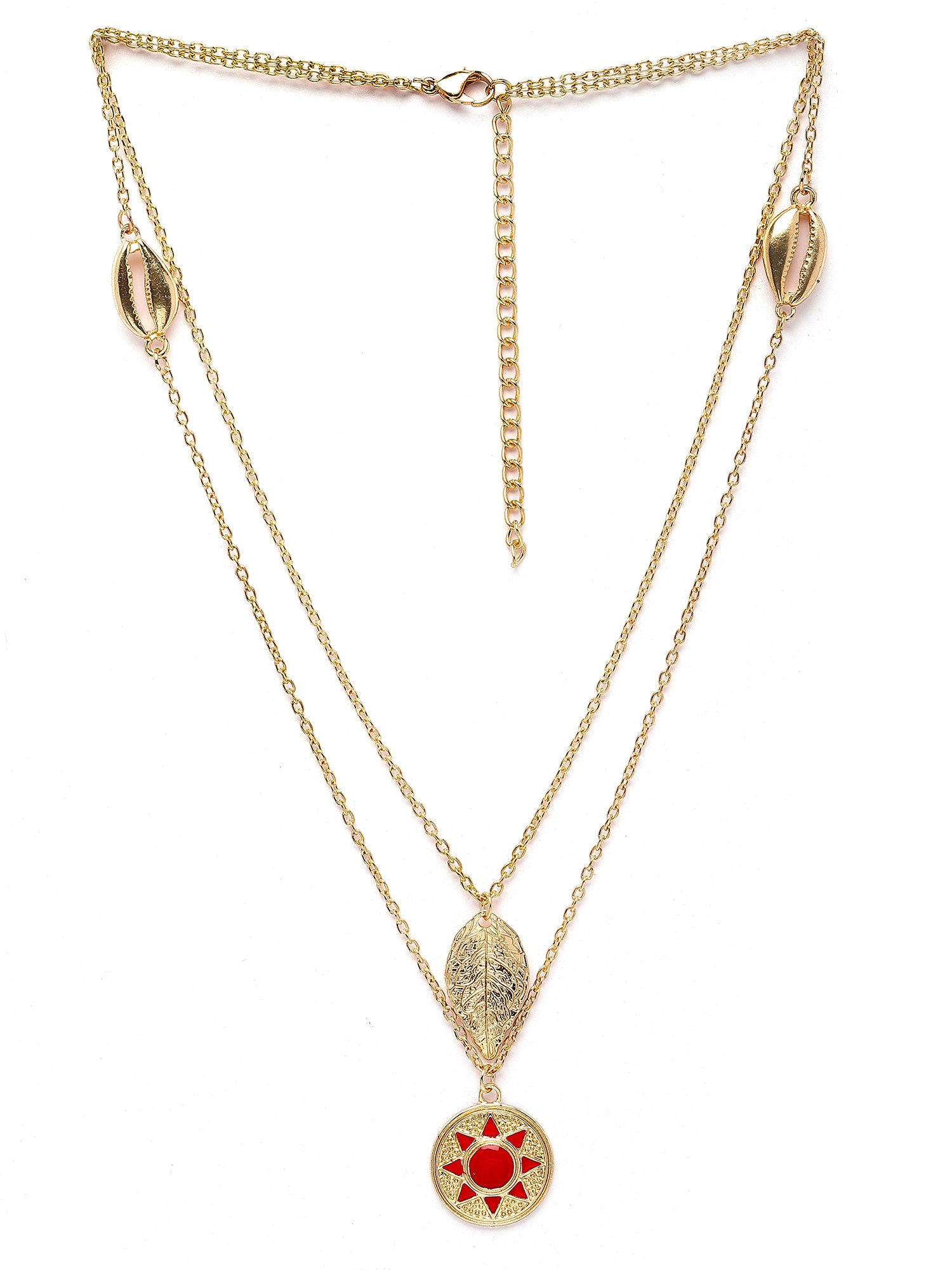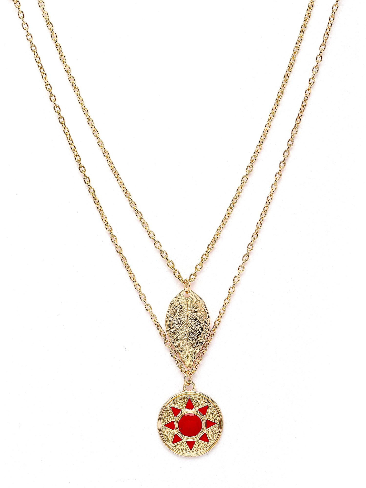 Bohey by KARATCART Gold Plated Red Meena Sun and Leaf Multicharm Multilayered Chain Necklace for Women