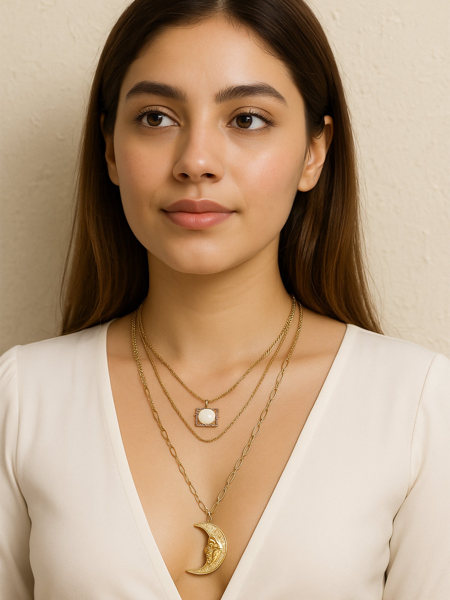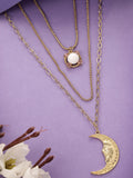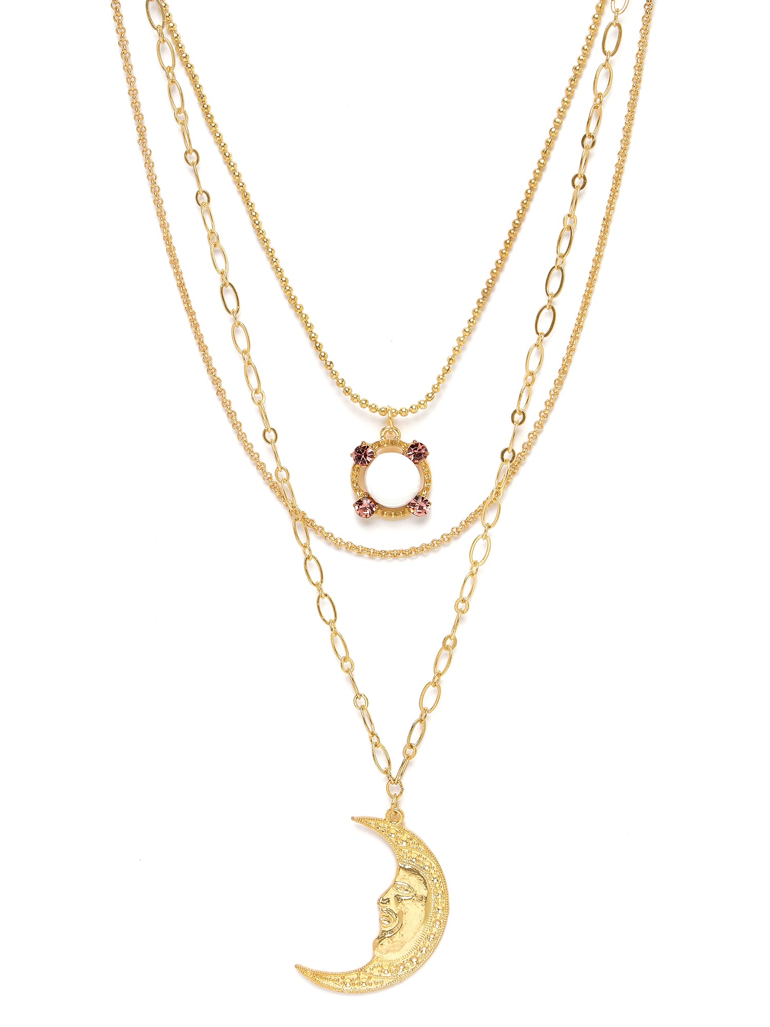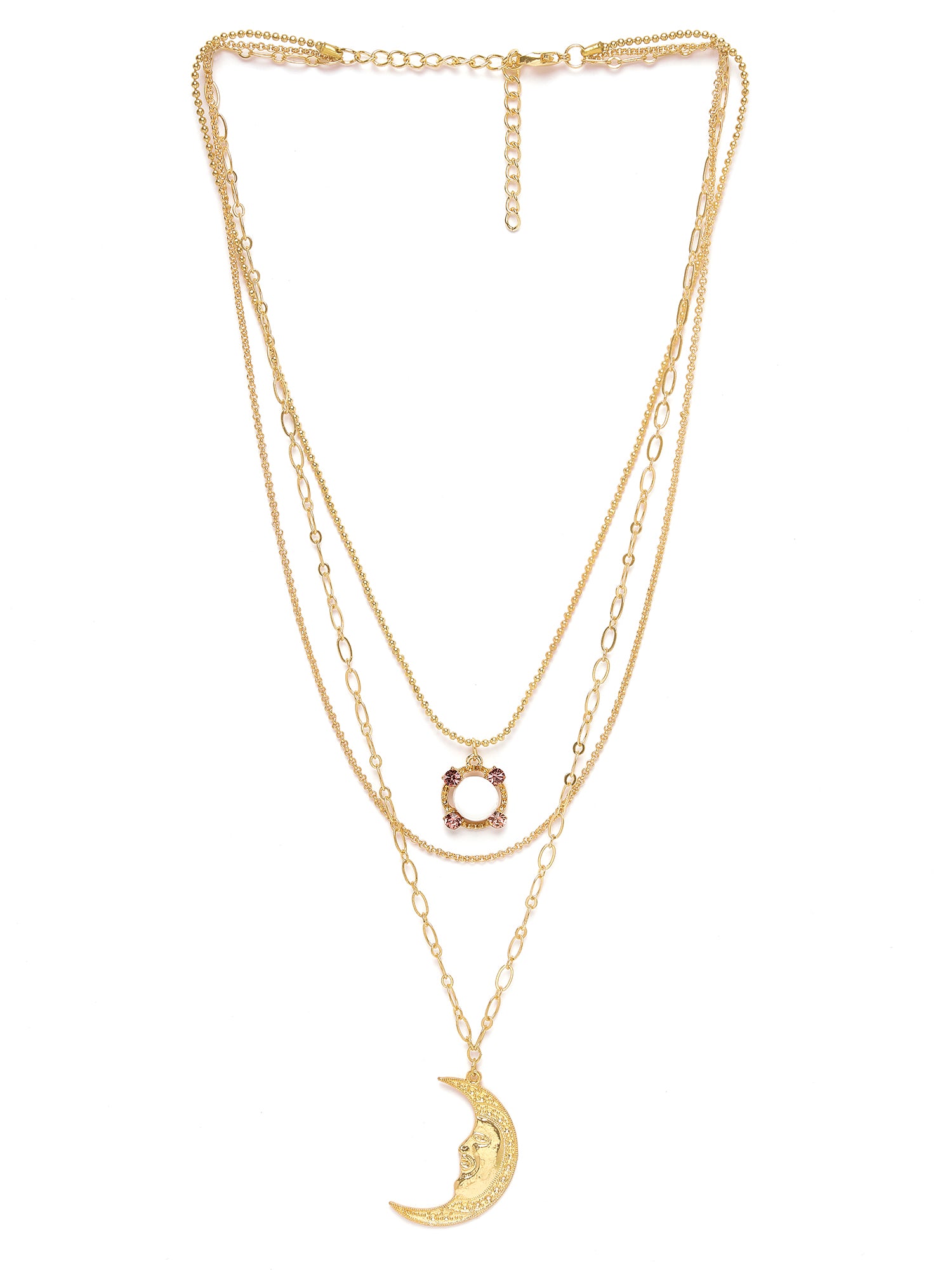 Bohey by KARATCART Gold Plated Half-Moon Multicharm Multilayered Chain Necklace for Women