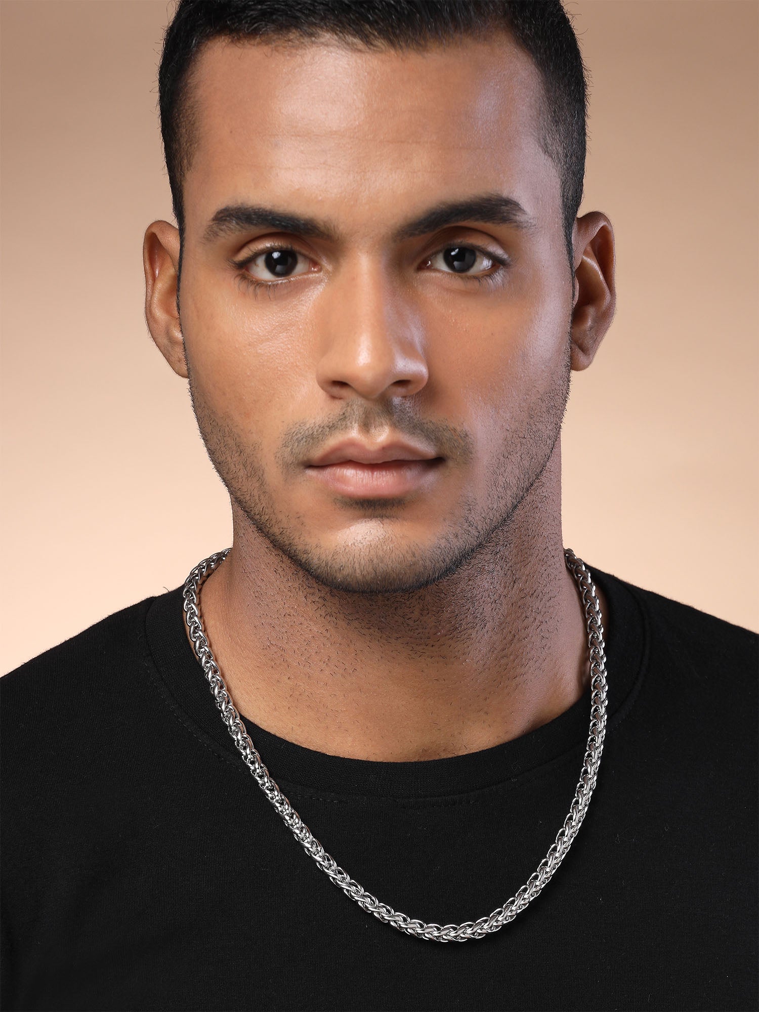 This Silver Plated Metal Chain Necklace is not just an accessory; it's a statement. Its bold design captures attention, making it an excellent choice for men who like to make a strong impression. The chunky links are not only trendy but also durable, promising longevity and sustained shine. This necklace is ideal for both everyday wear and party wear. Its long length and minimalist yet detailed construction make it a standout piece whether you're dressing up for a special occasion or adding a touch of sophistication to your daily ensemble.