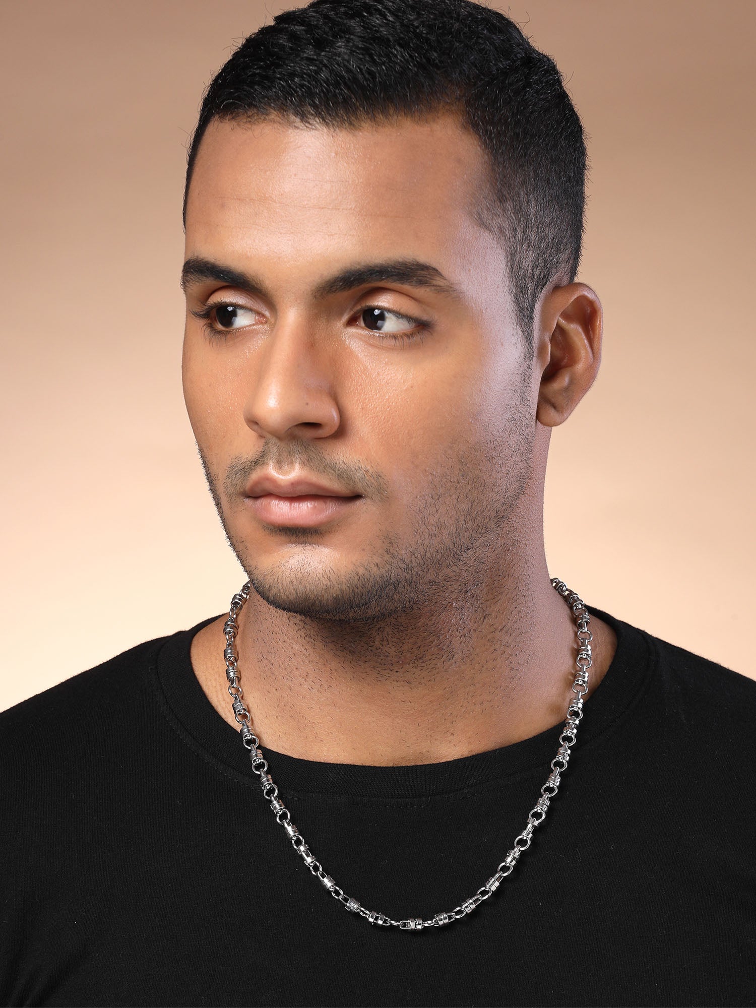 This Silver Plated Metal Chain Necklace is not just an accessory; it's a statement. Its bold design captures attention, making it an excellent choice for men who like to make a strong impression. The chunky links are not only trendy but also durable, promising longevity and sustained shine. This necklace is ideal for both everyday wear and party wear. Its long length and minimalist yet detailed construction make it a standout piece whether you're dressing up for a special occasion or adding a touch of sophistication to your daily ensemble.