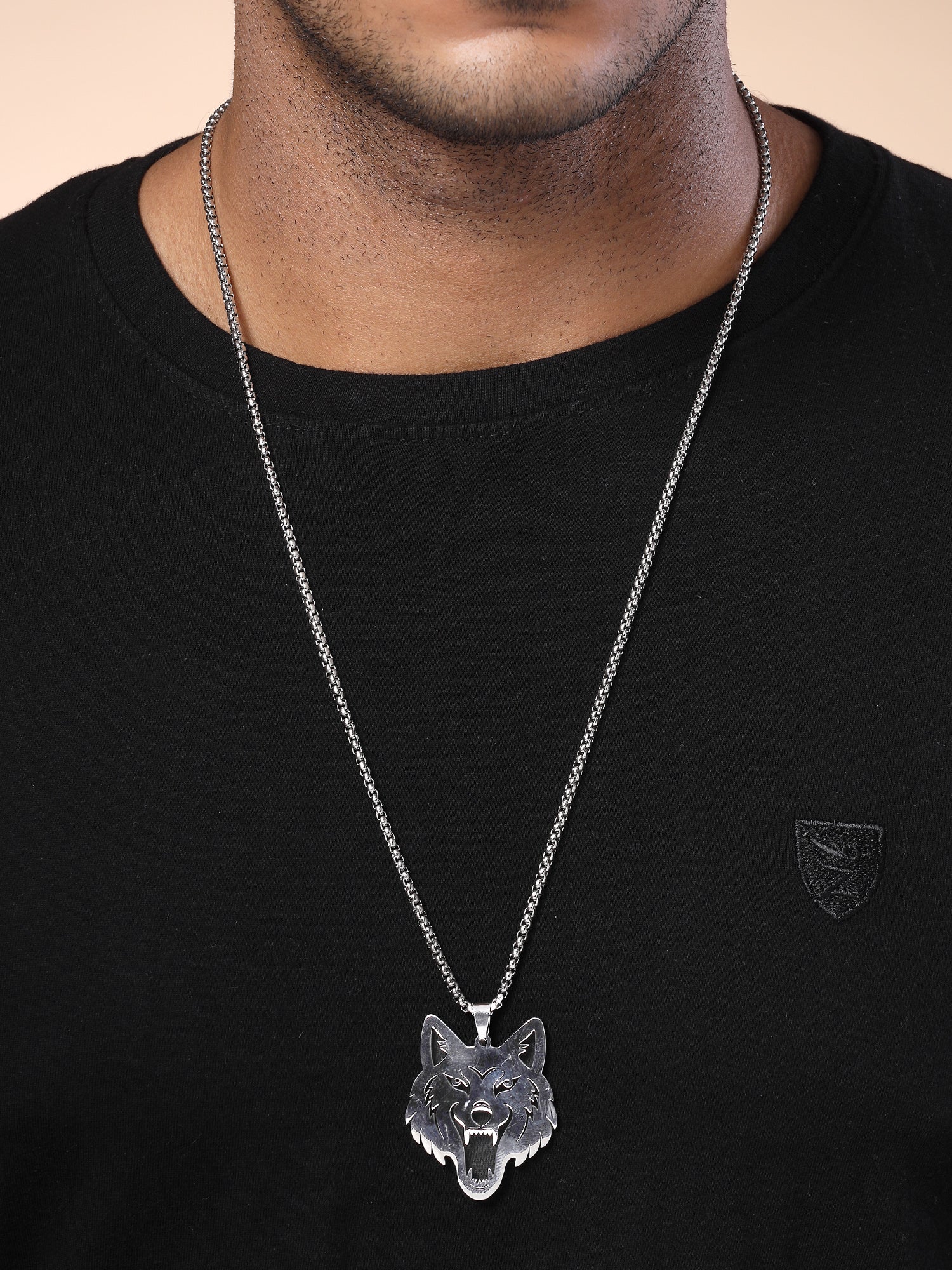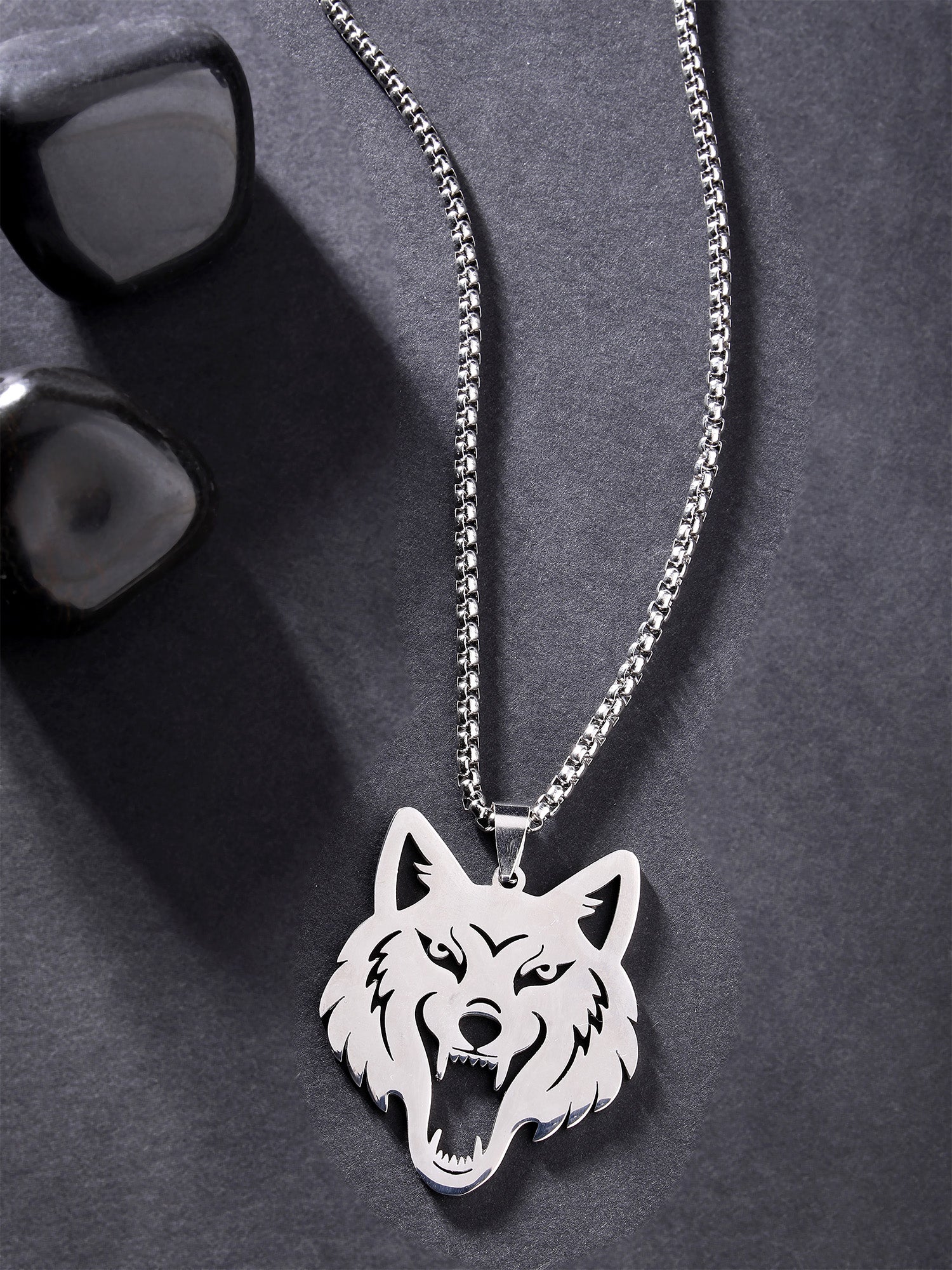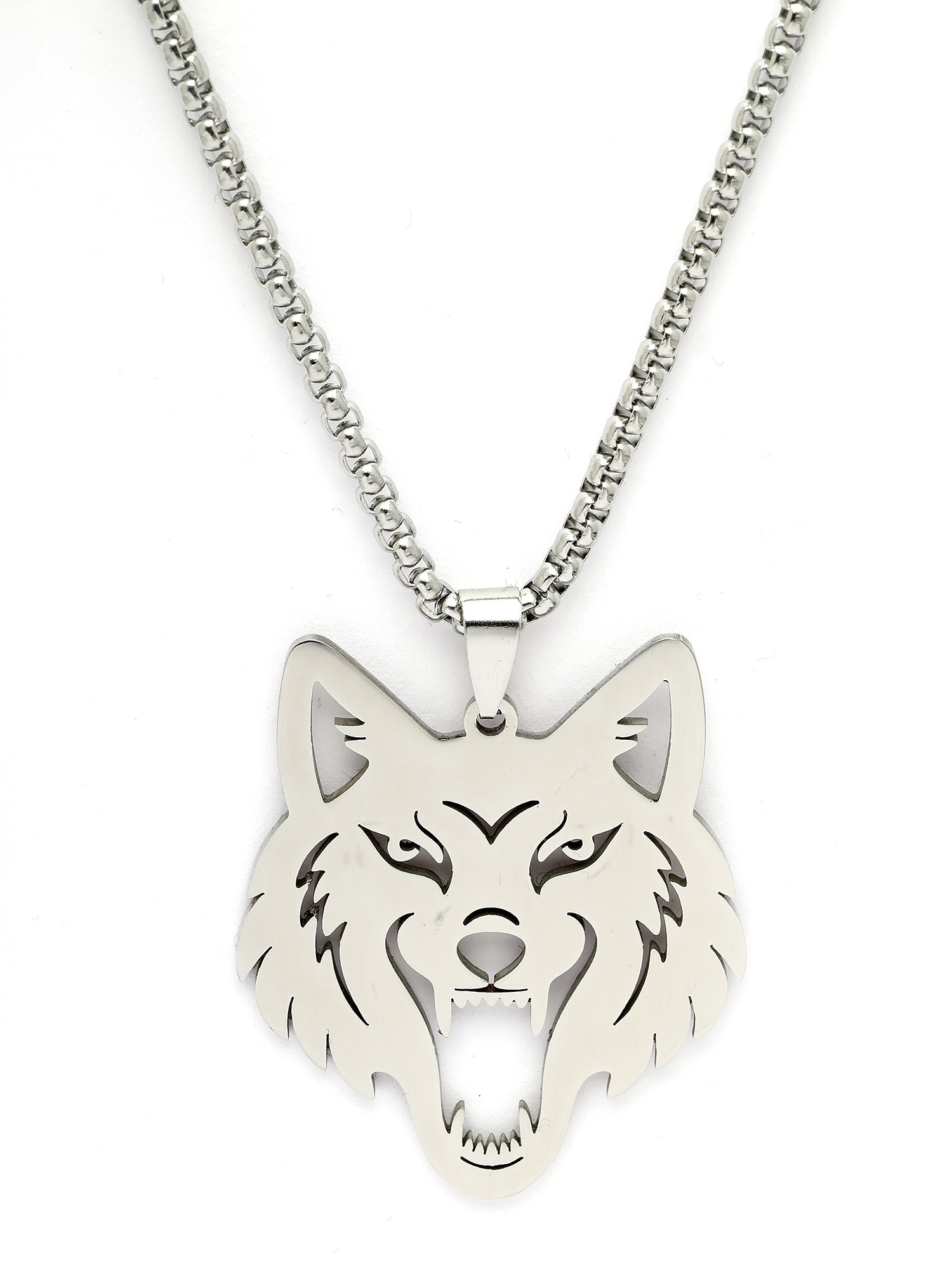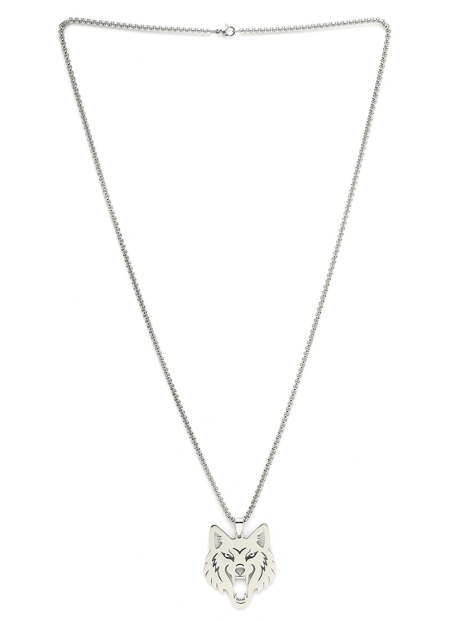Bohey by KARATCART Silver Plated Wolf Metal Chain Pendant for Men