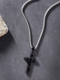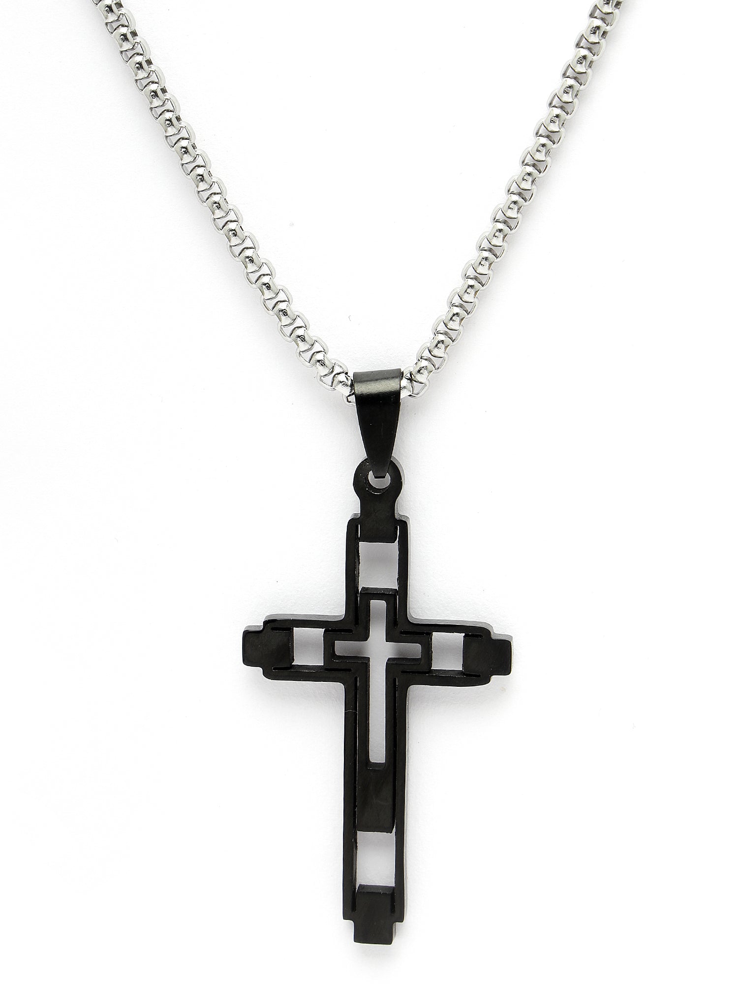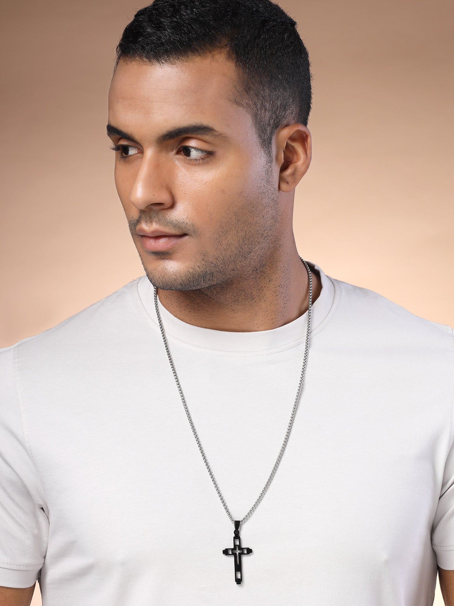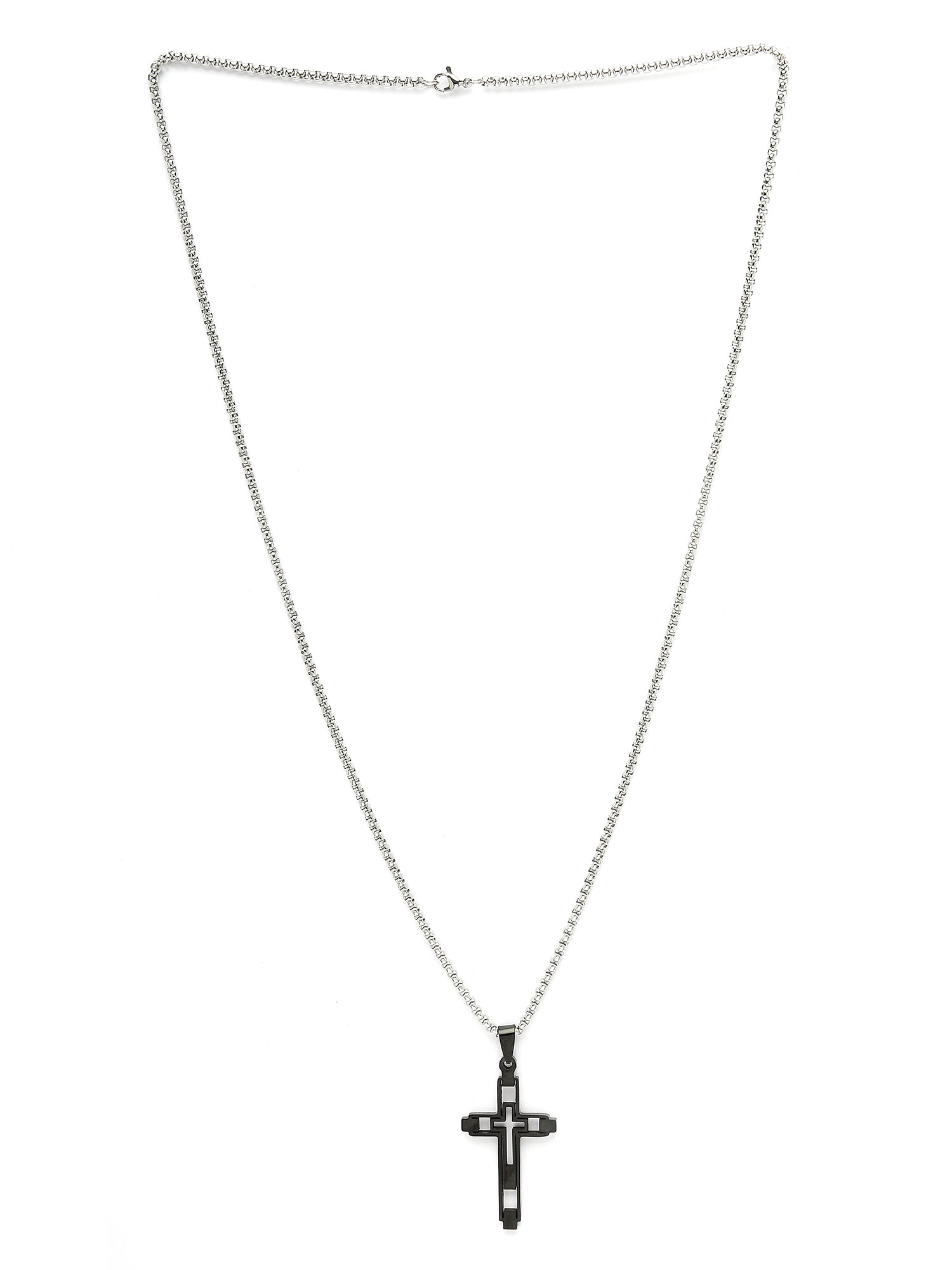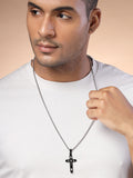 Bohey by KARATCART Silver Plated Black Holy Cross Metal Chain Pendant for Men