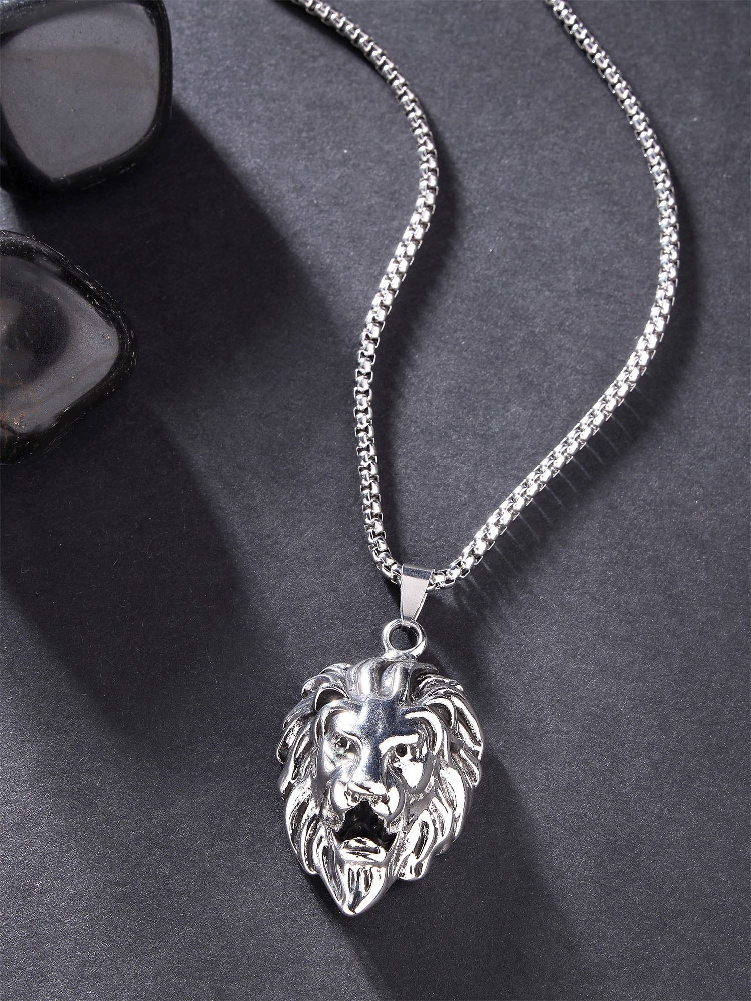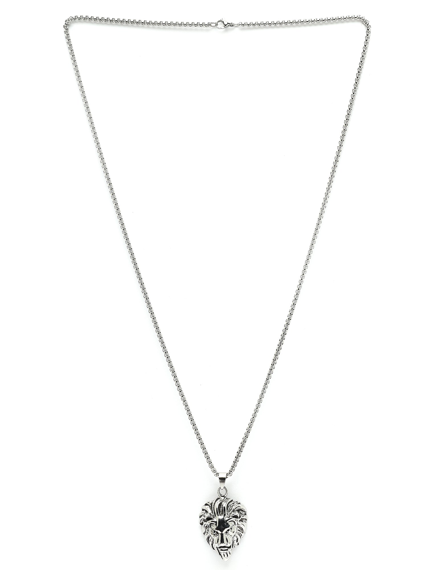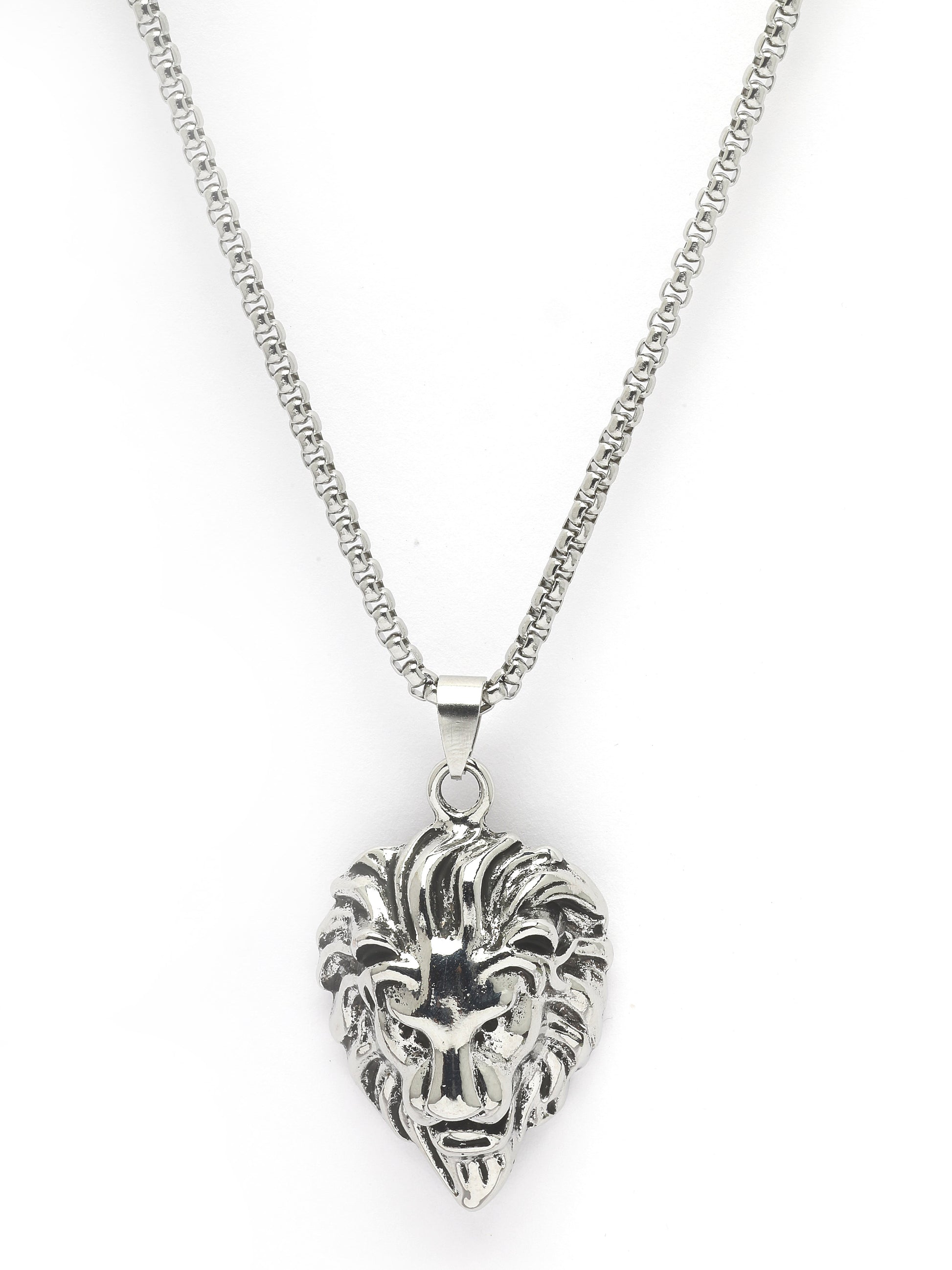 Bohey by KARATCART Silver Plated Lion Metal Chain Pendant for Men