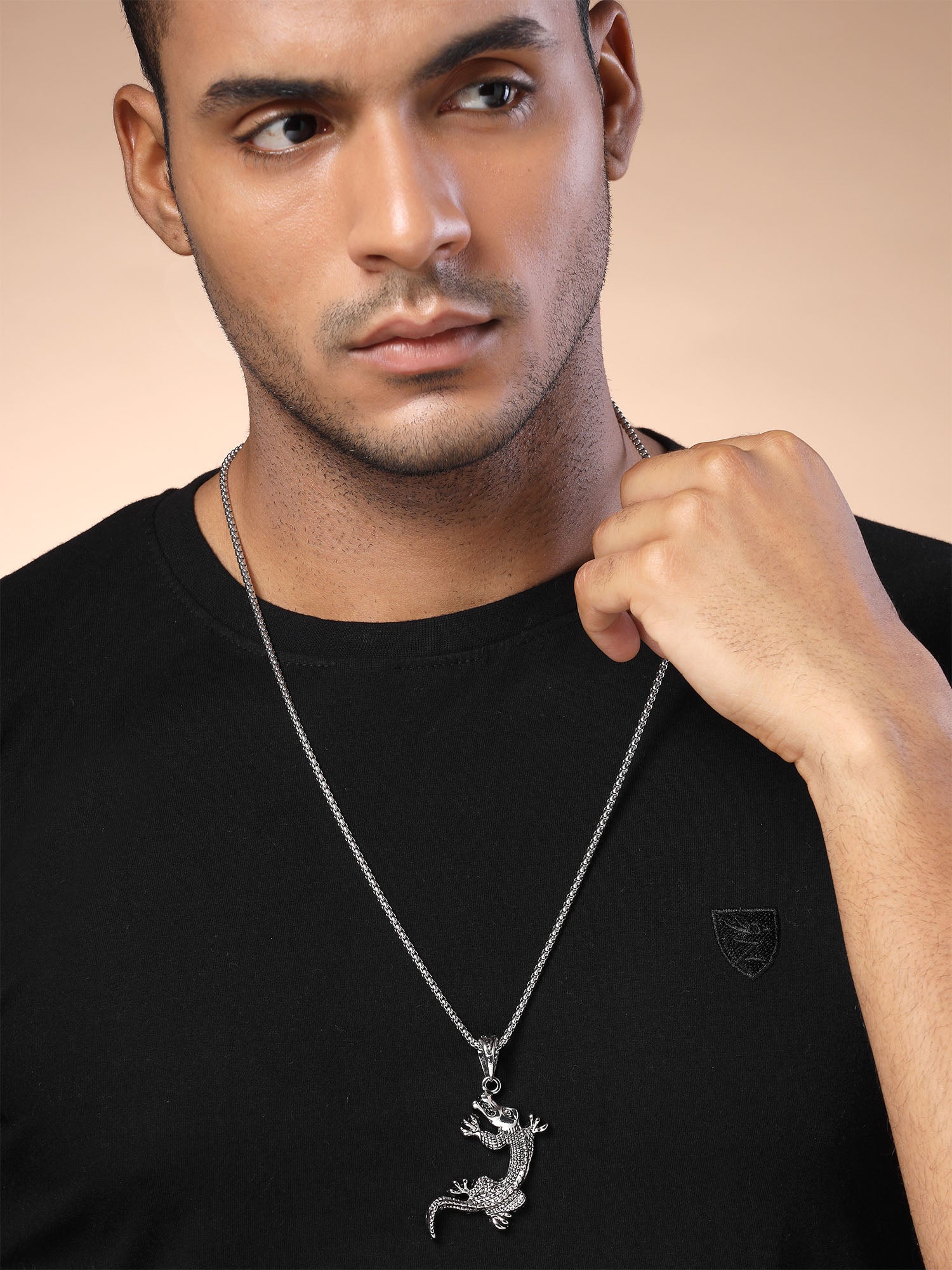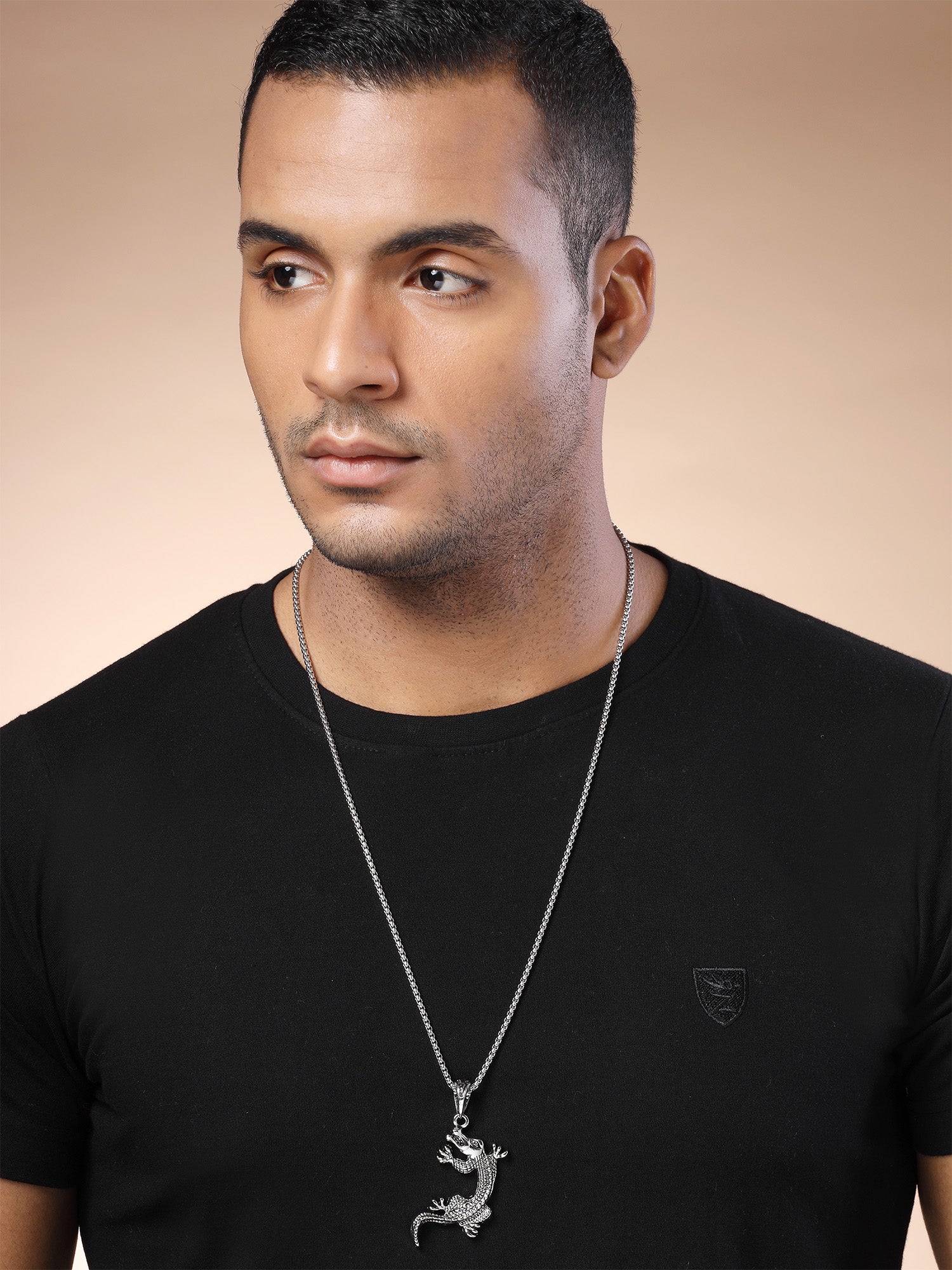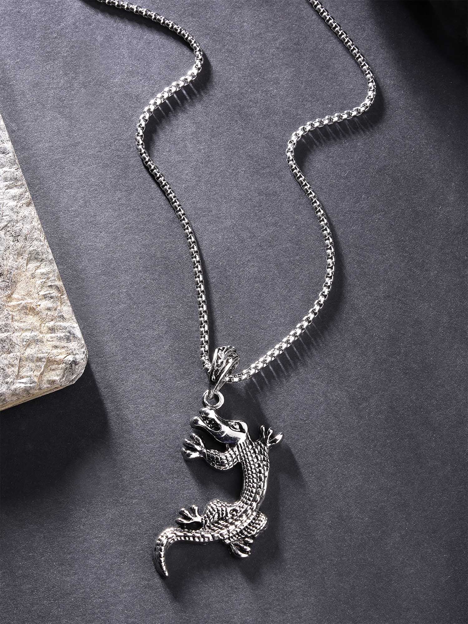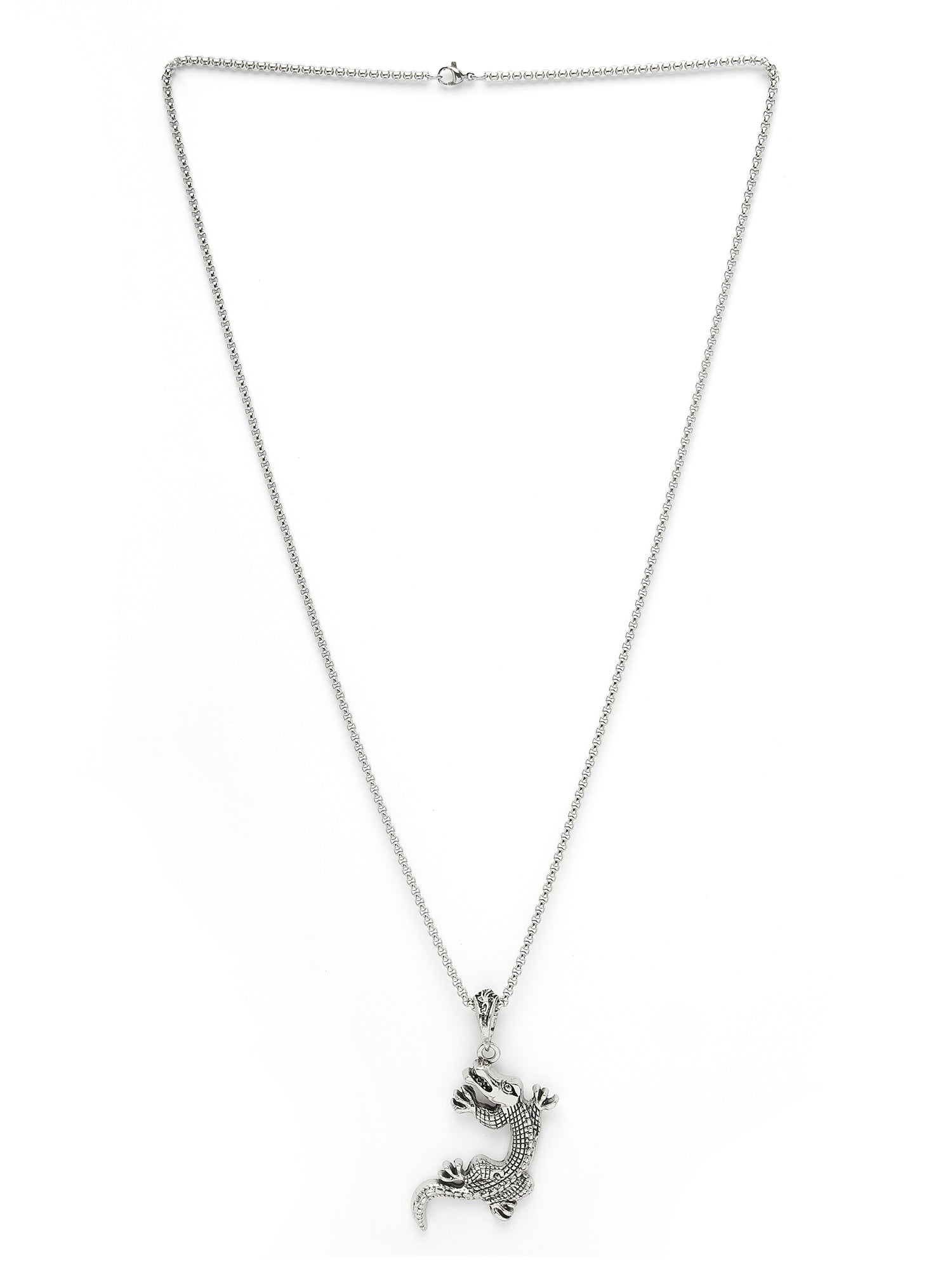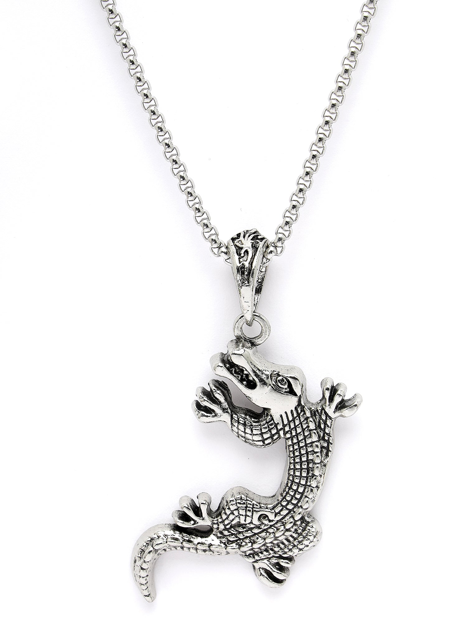 Bohey by KARATCART Silver Plated Alligator Metal Chain Pendant for Men