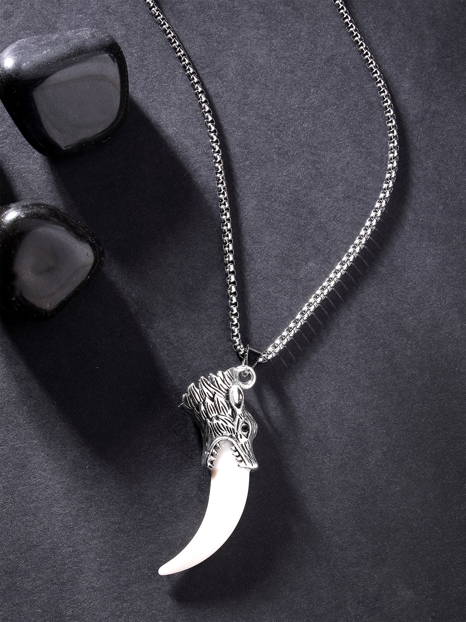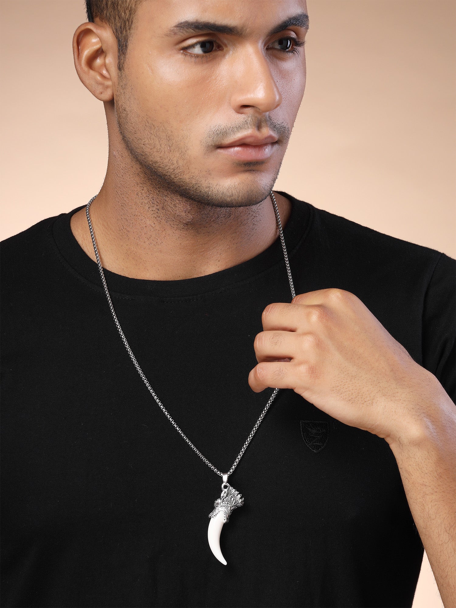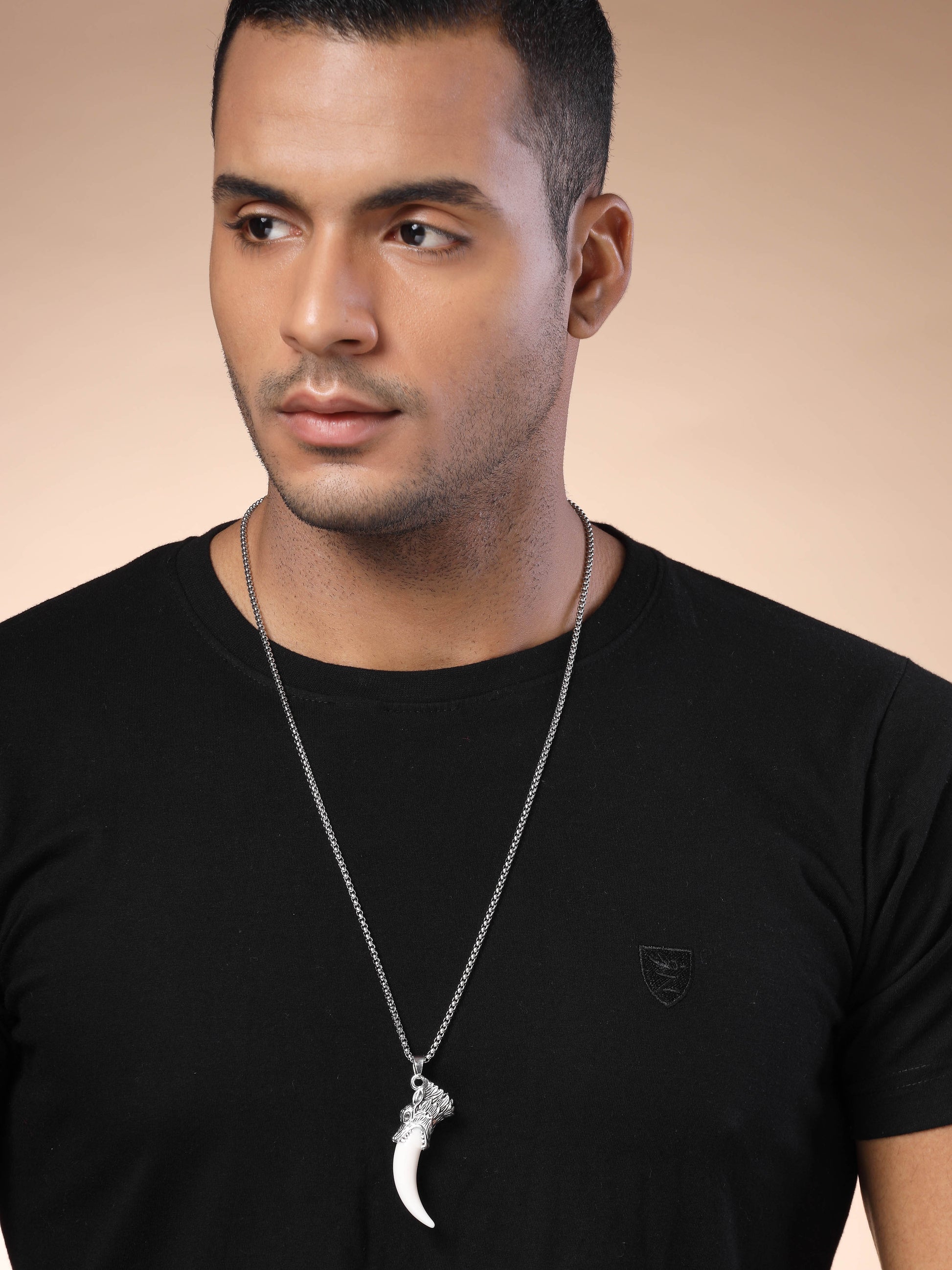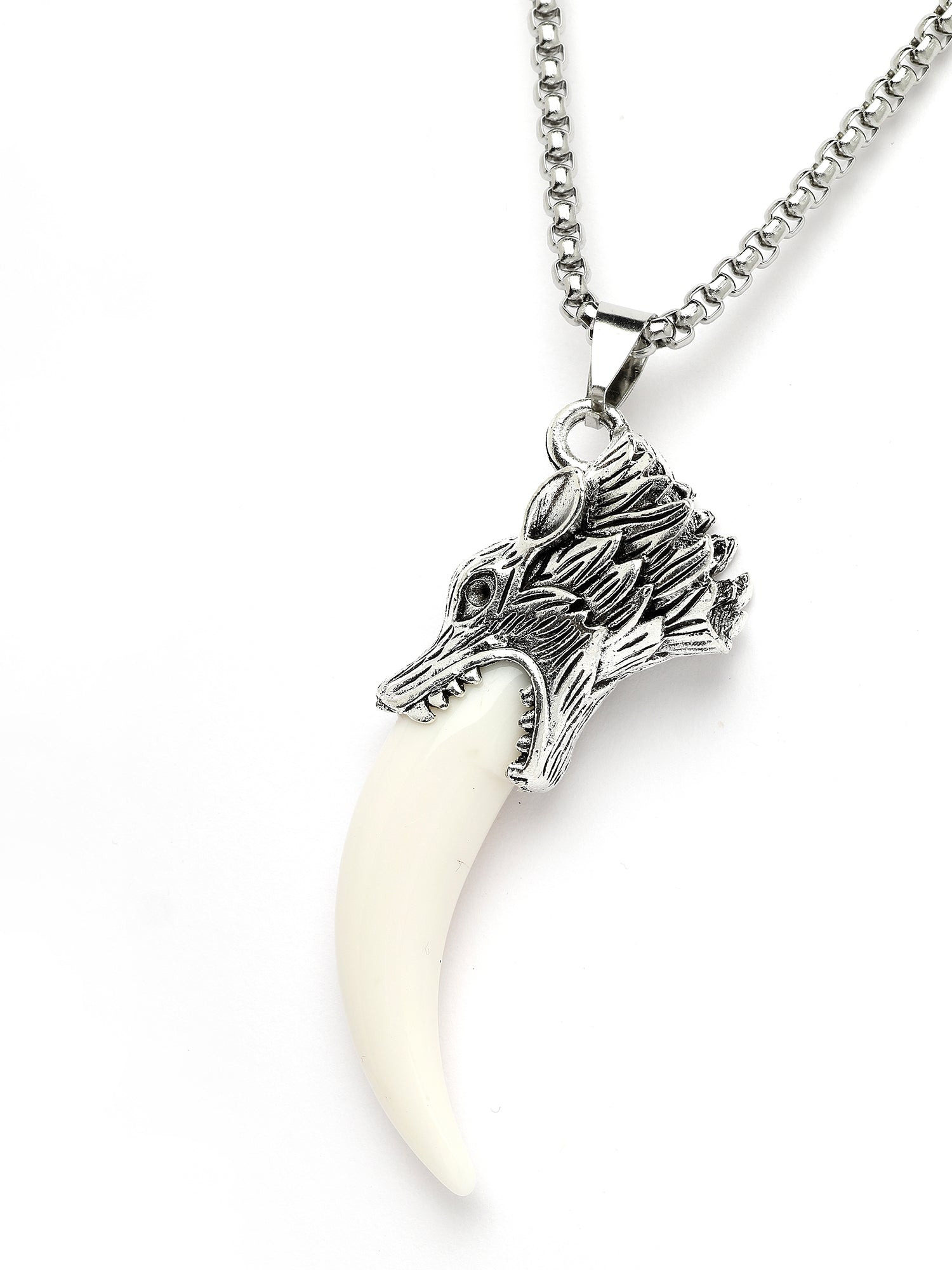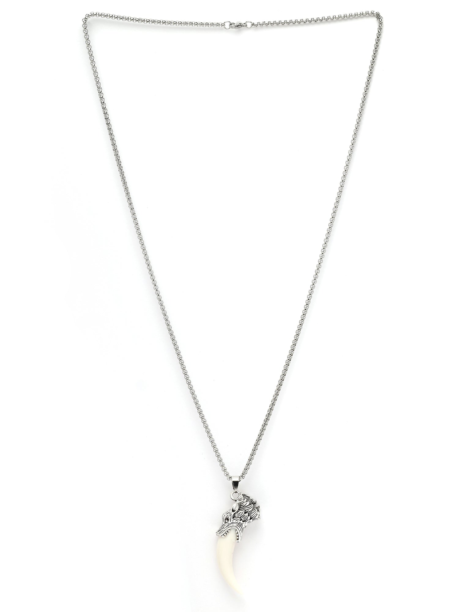 Bohey by KARATCART Silver Plated Wolf Tooth Metal Chain Pendant for Men