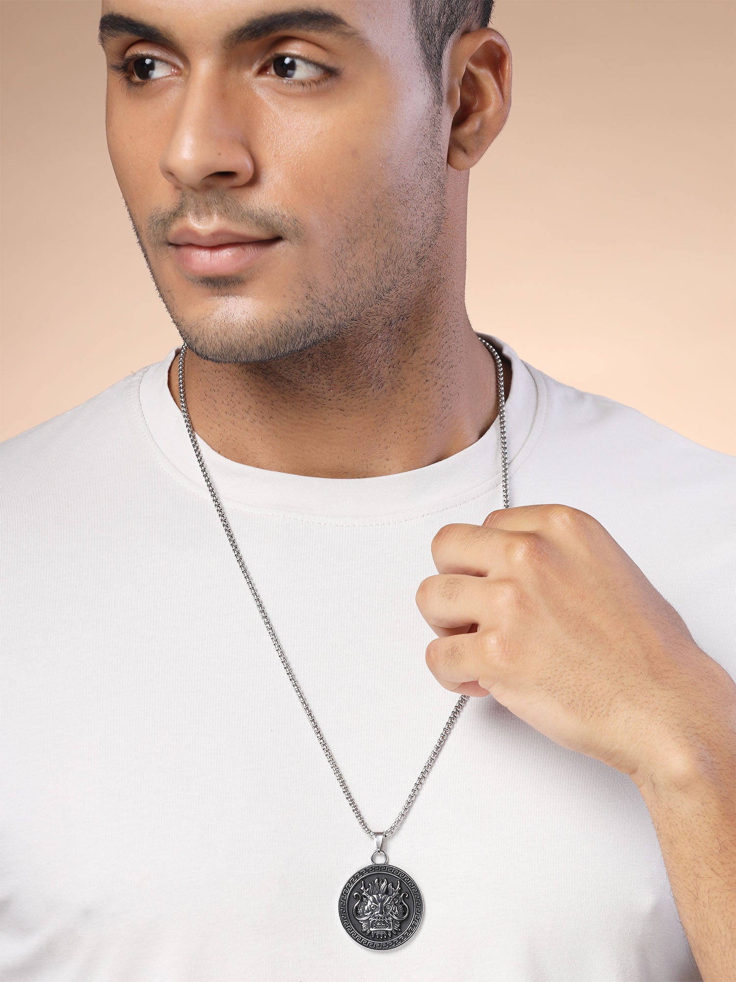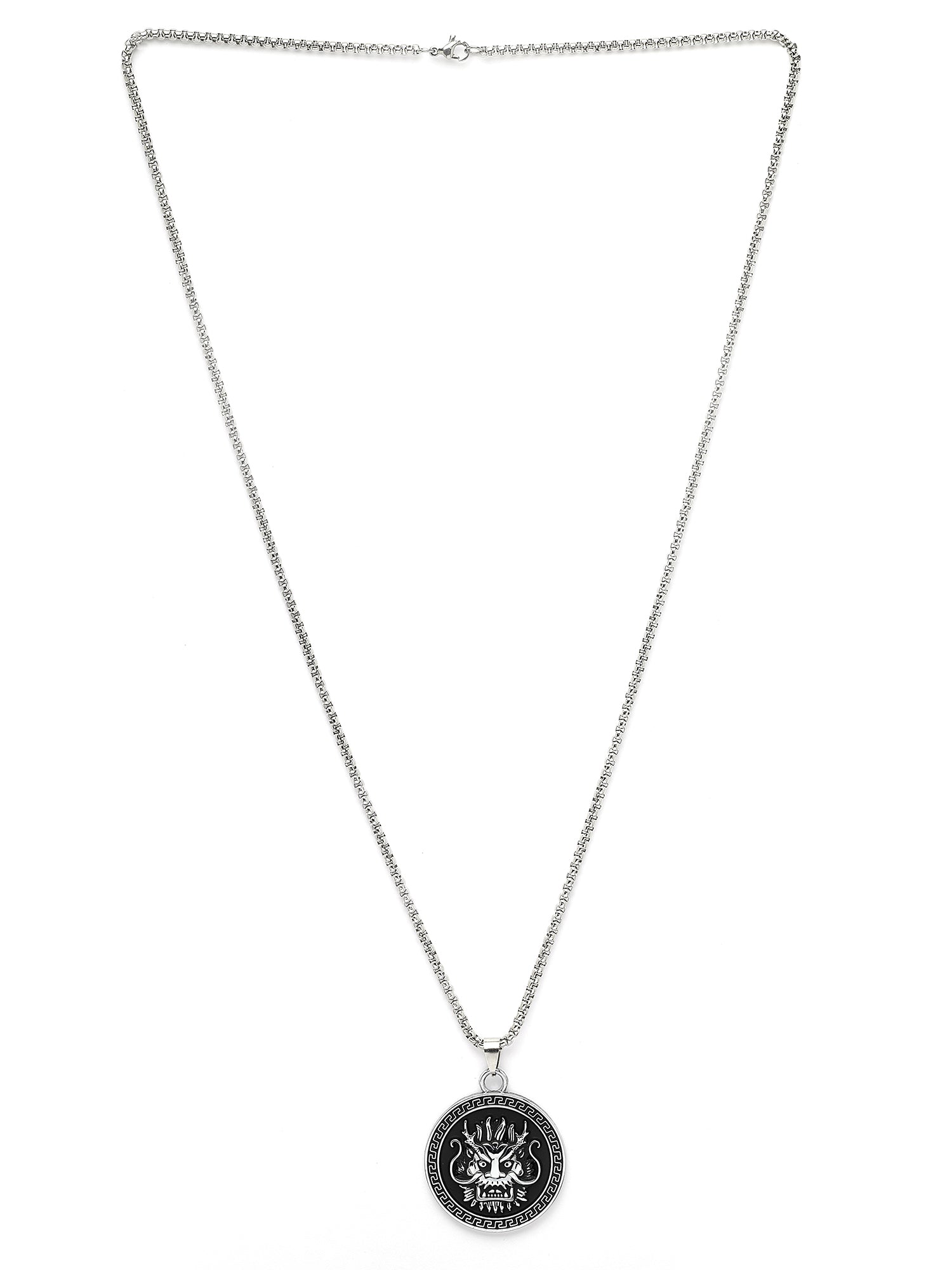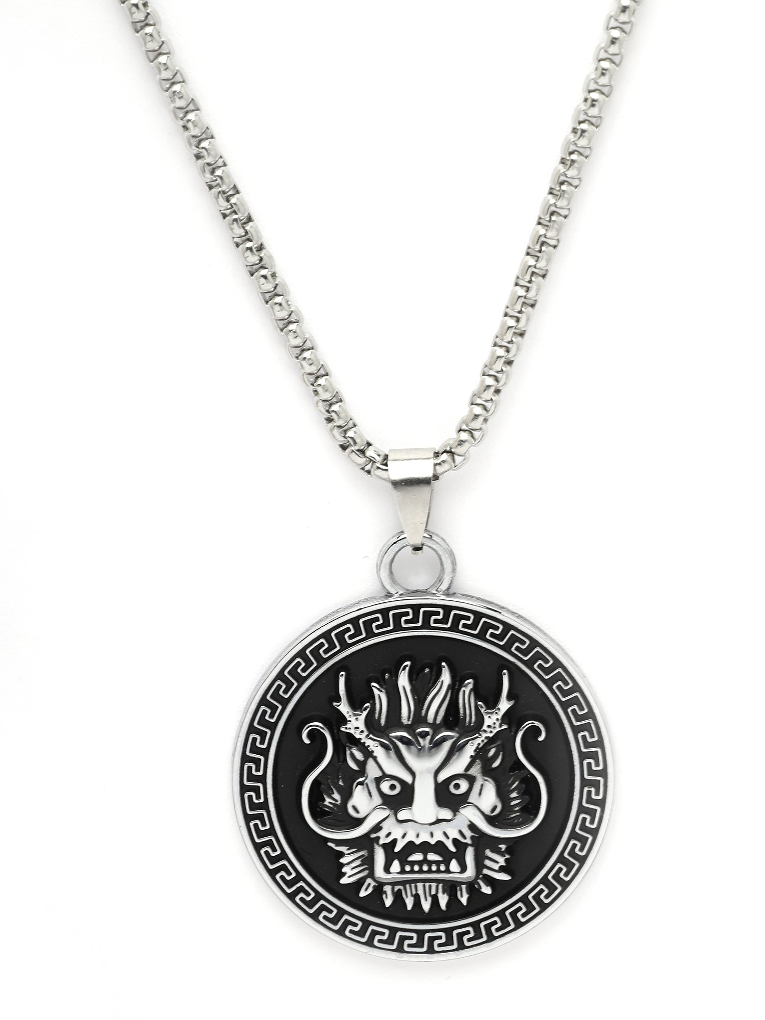 Bohey by KARATCART Silver Plated Black Dragon Carved Round Chain Pendant for Men