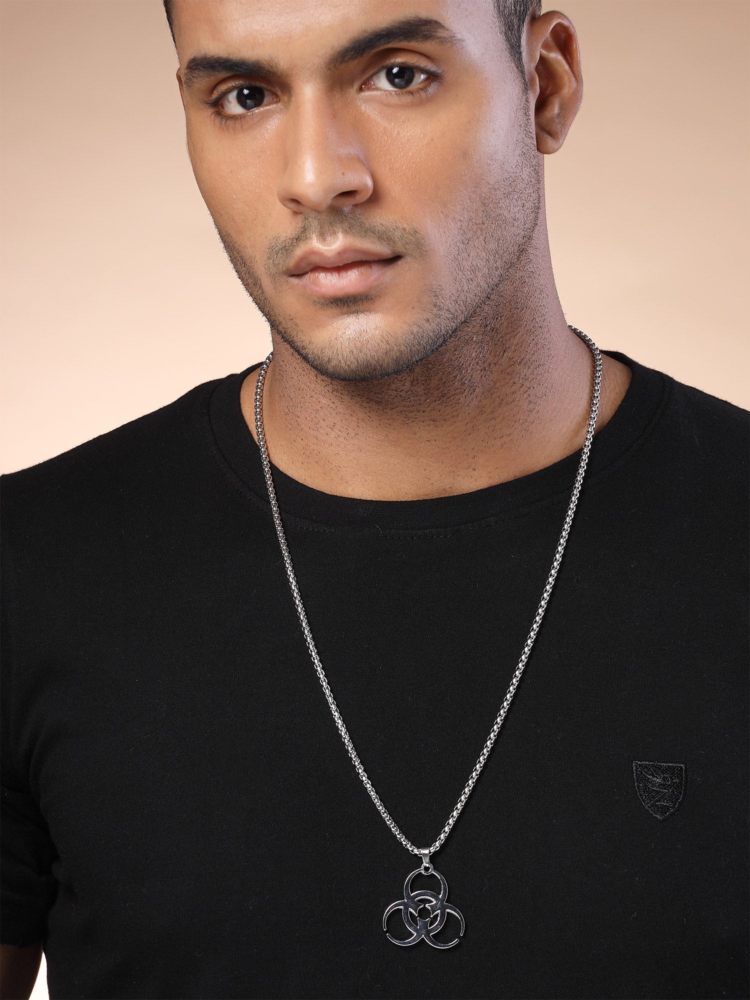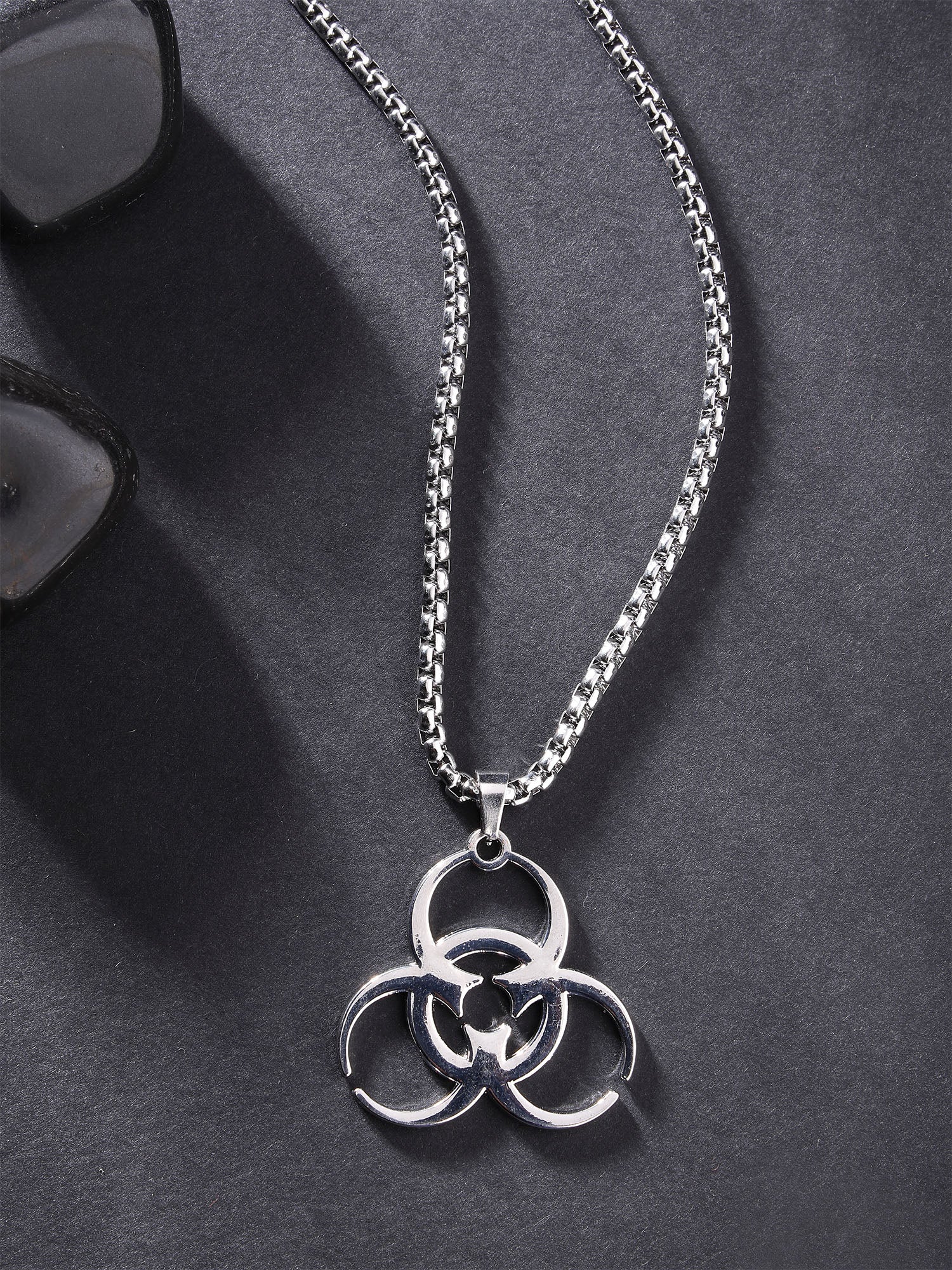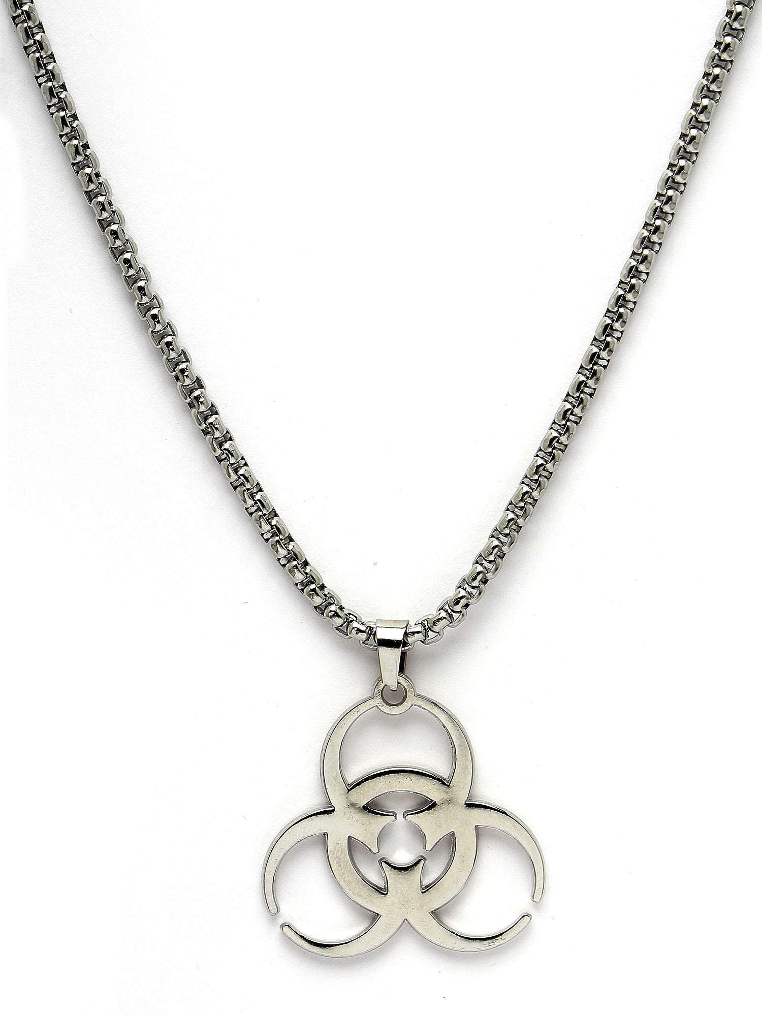 Bohey by KARATCART Silver Plated Biohazard Symbol Chain Pendant for Men
