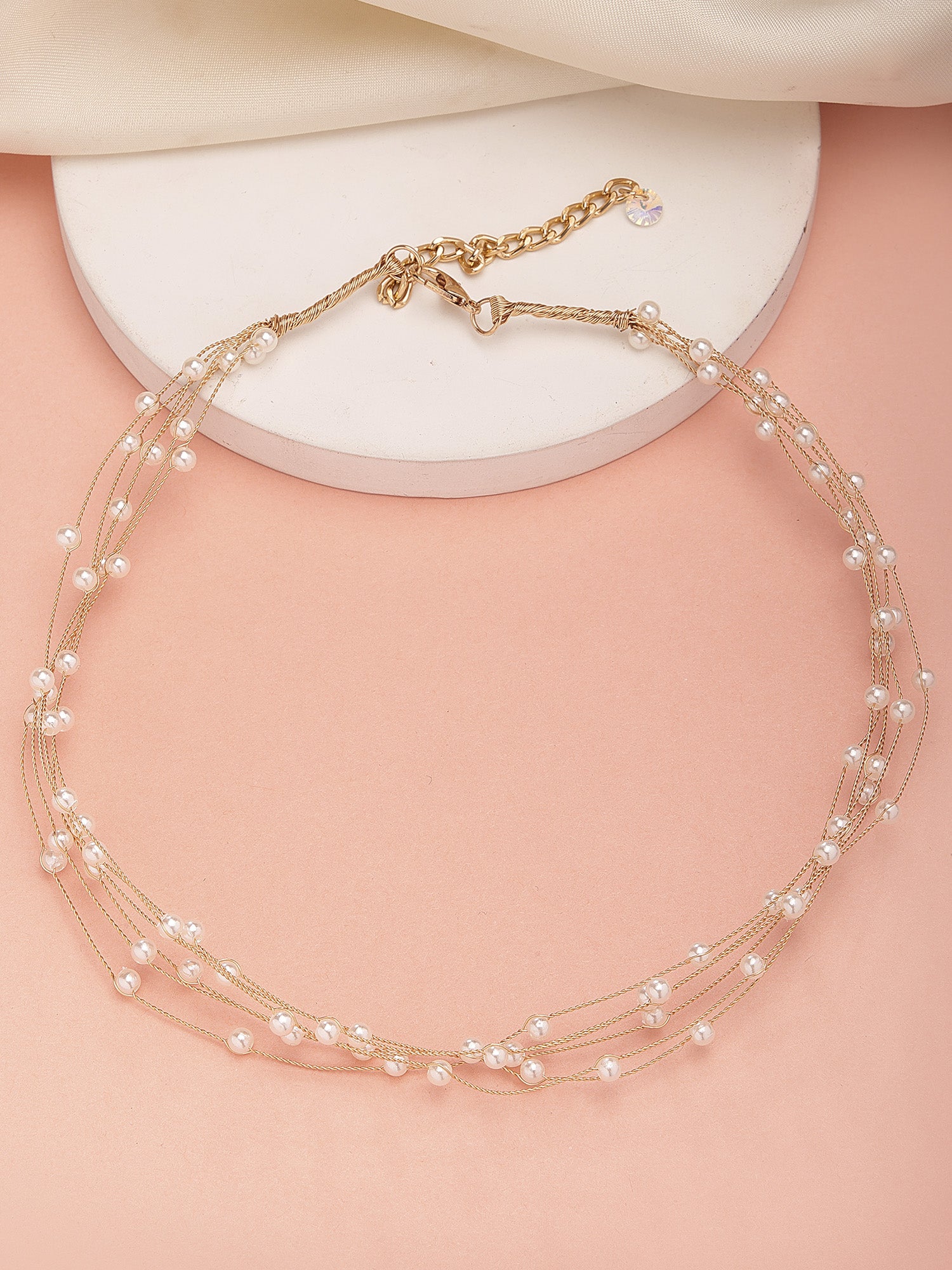 Bohey by KARATCART Gold Plated Multilayer Round Pearl Chain Necklace for Women