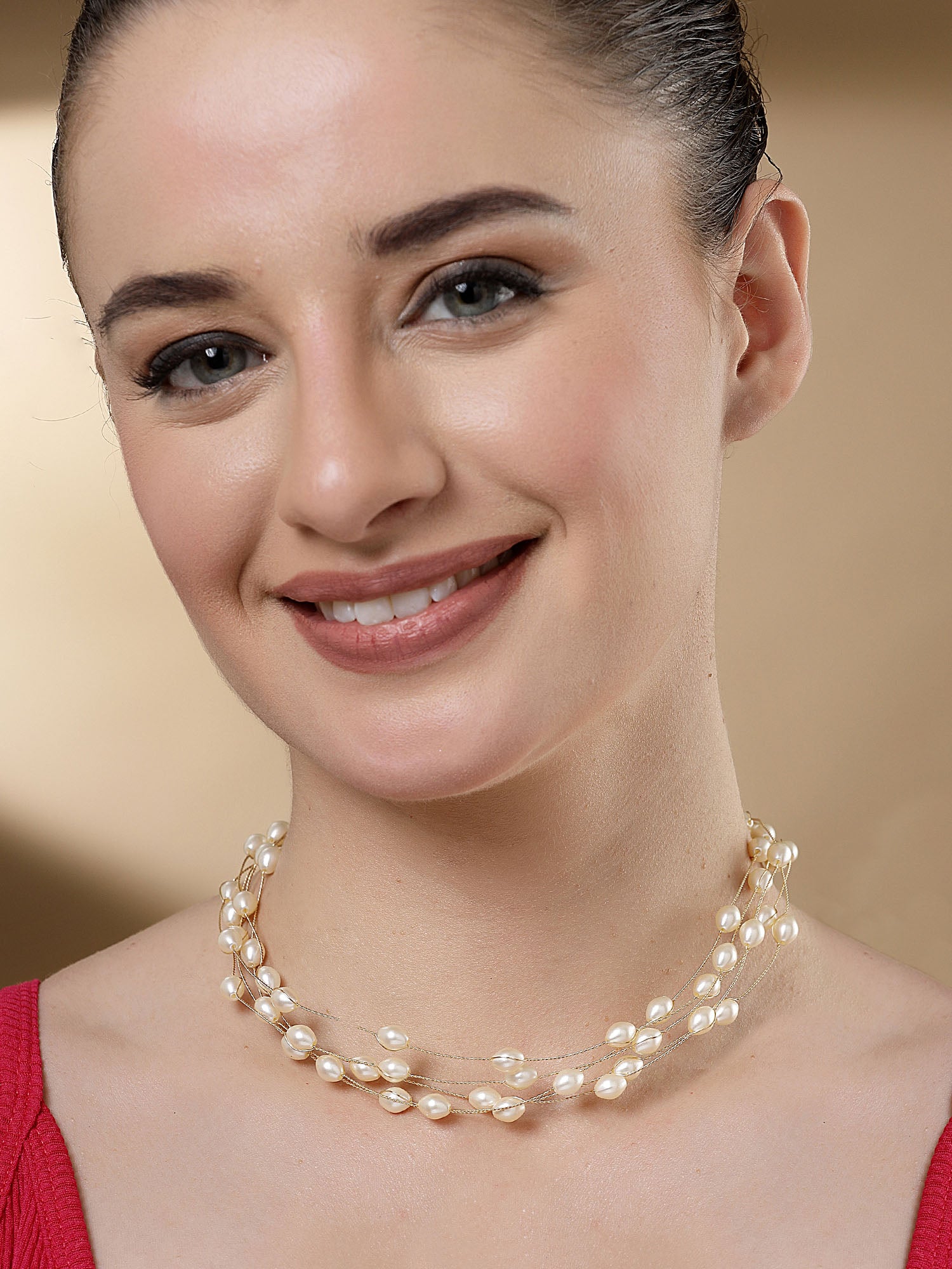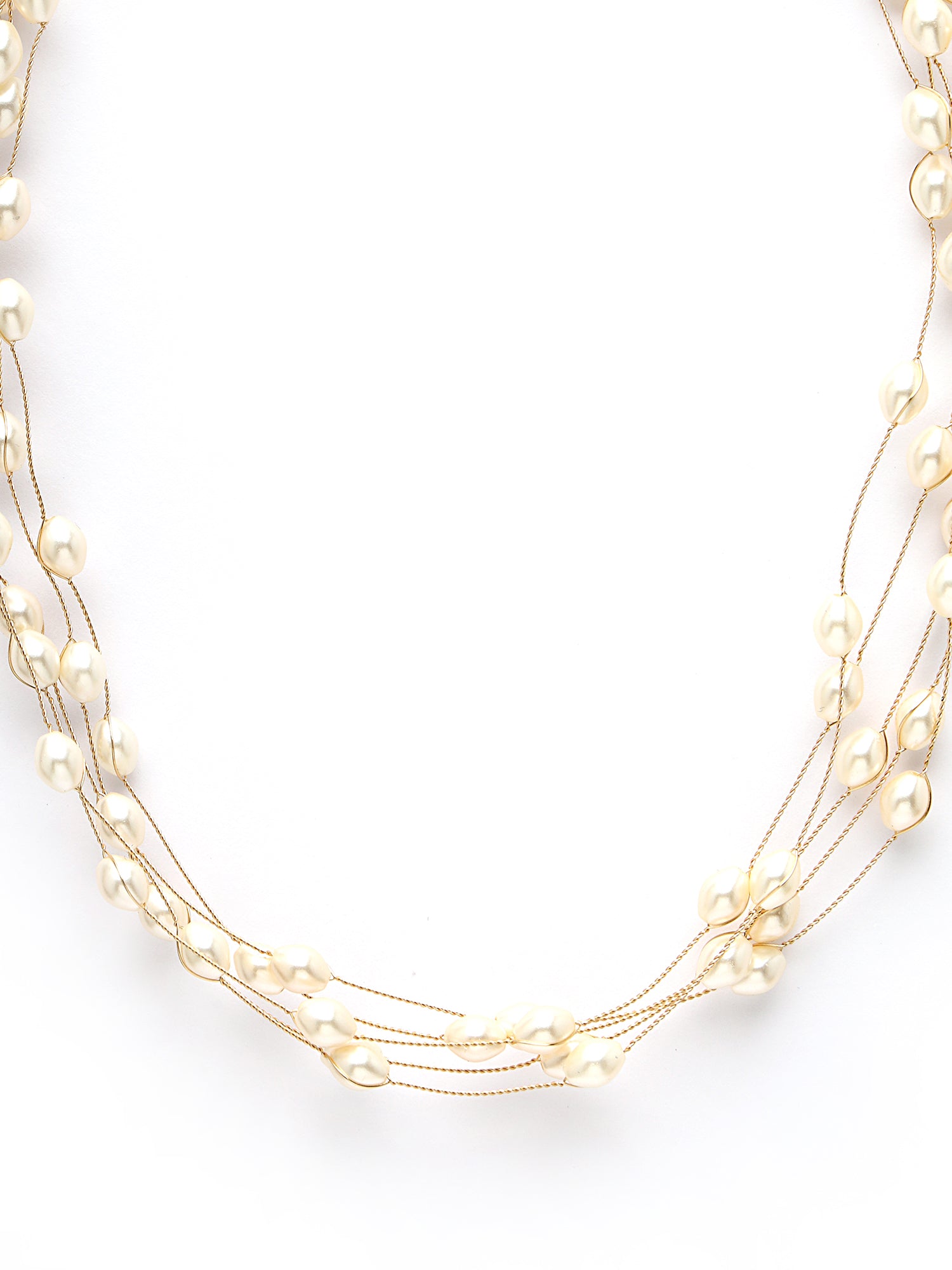 Bohey by KARATCART Gold Plated Multilayer Round Pearl Chain Necklace for Women