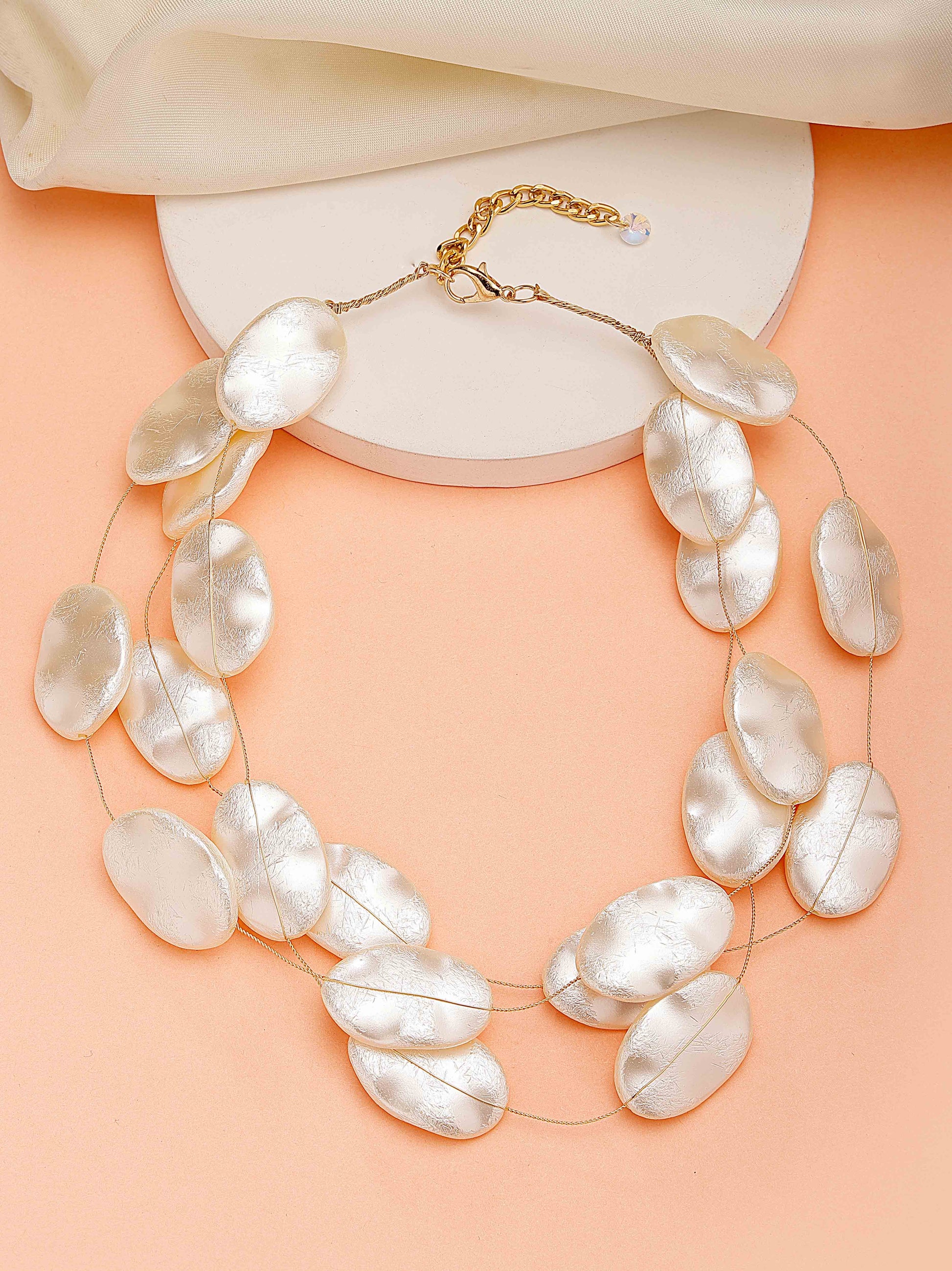 Bohey by KARATCART Gold Plated Multilayer Flat Baroque Pearl Chain Necklace for Women