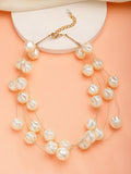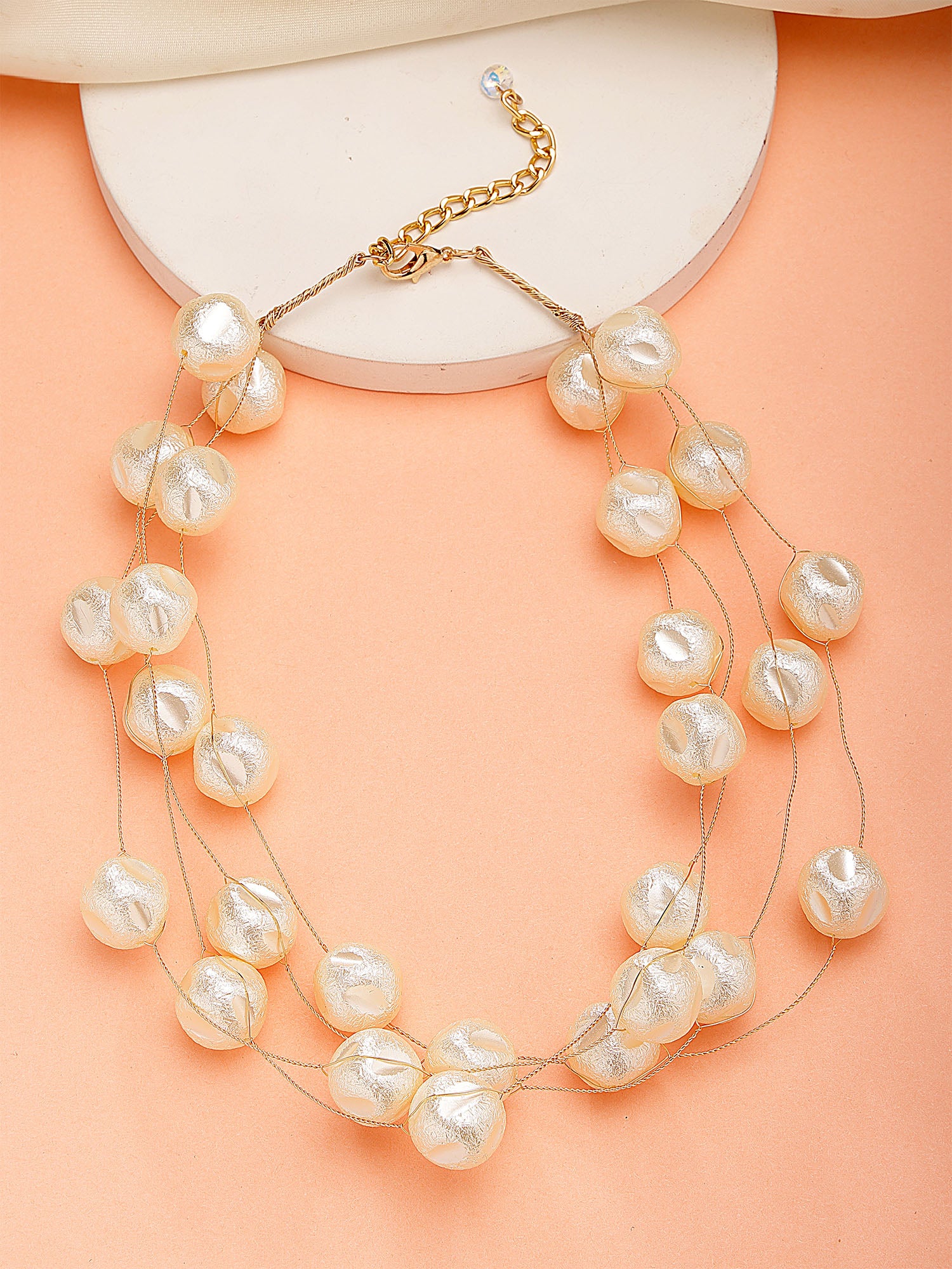 Bohey by KARATCART Gold Plated Multilayer Round Baroque Pearl Chain Necklace for Women