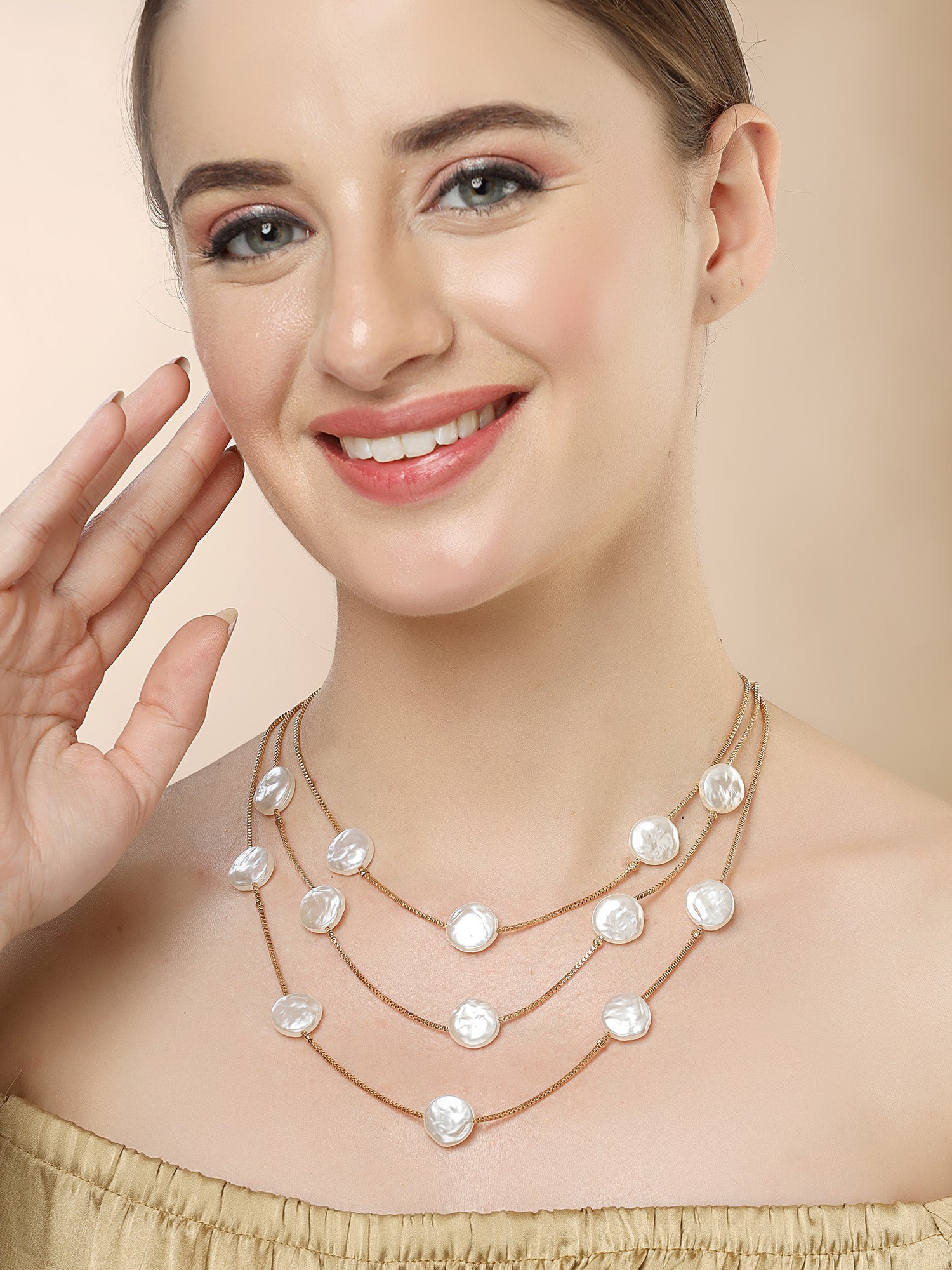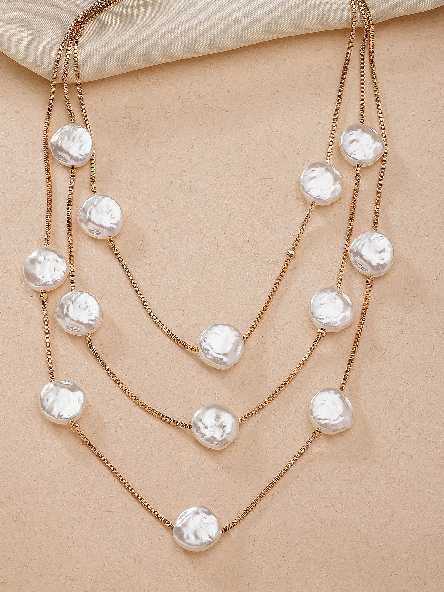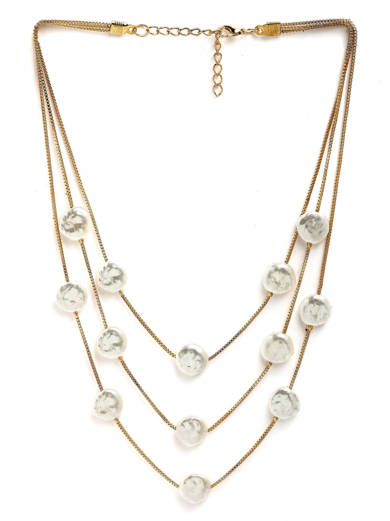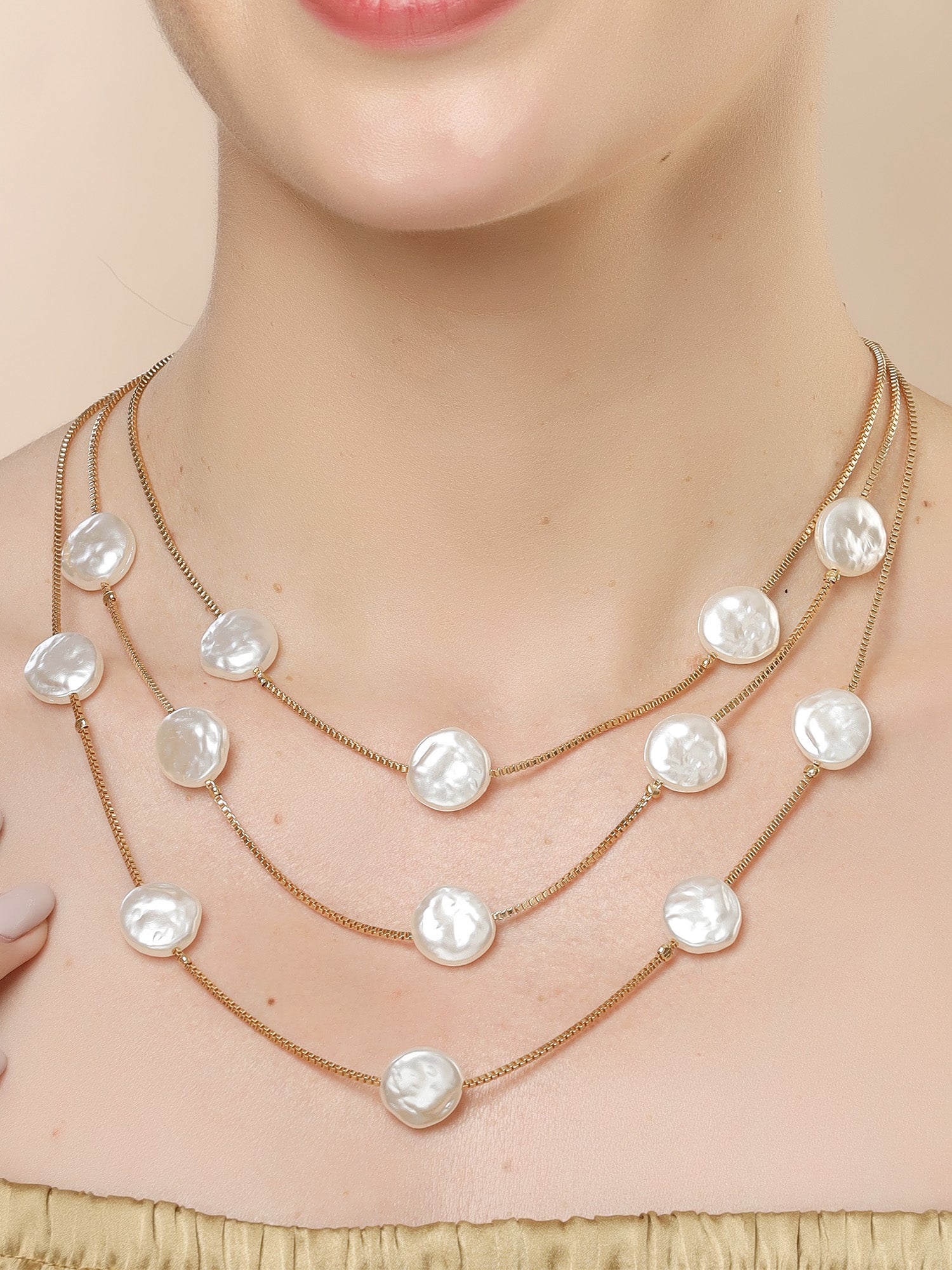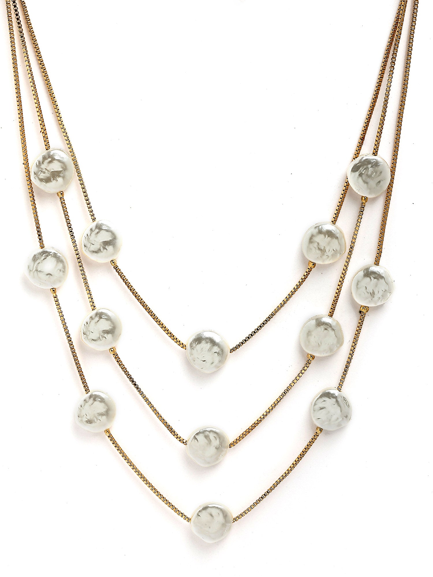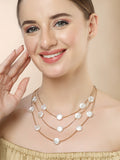 Bohey by KARATCART Gold-Plated Flat Pearl Multilayer Chain Necklace for Women