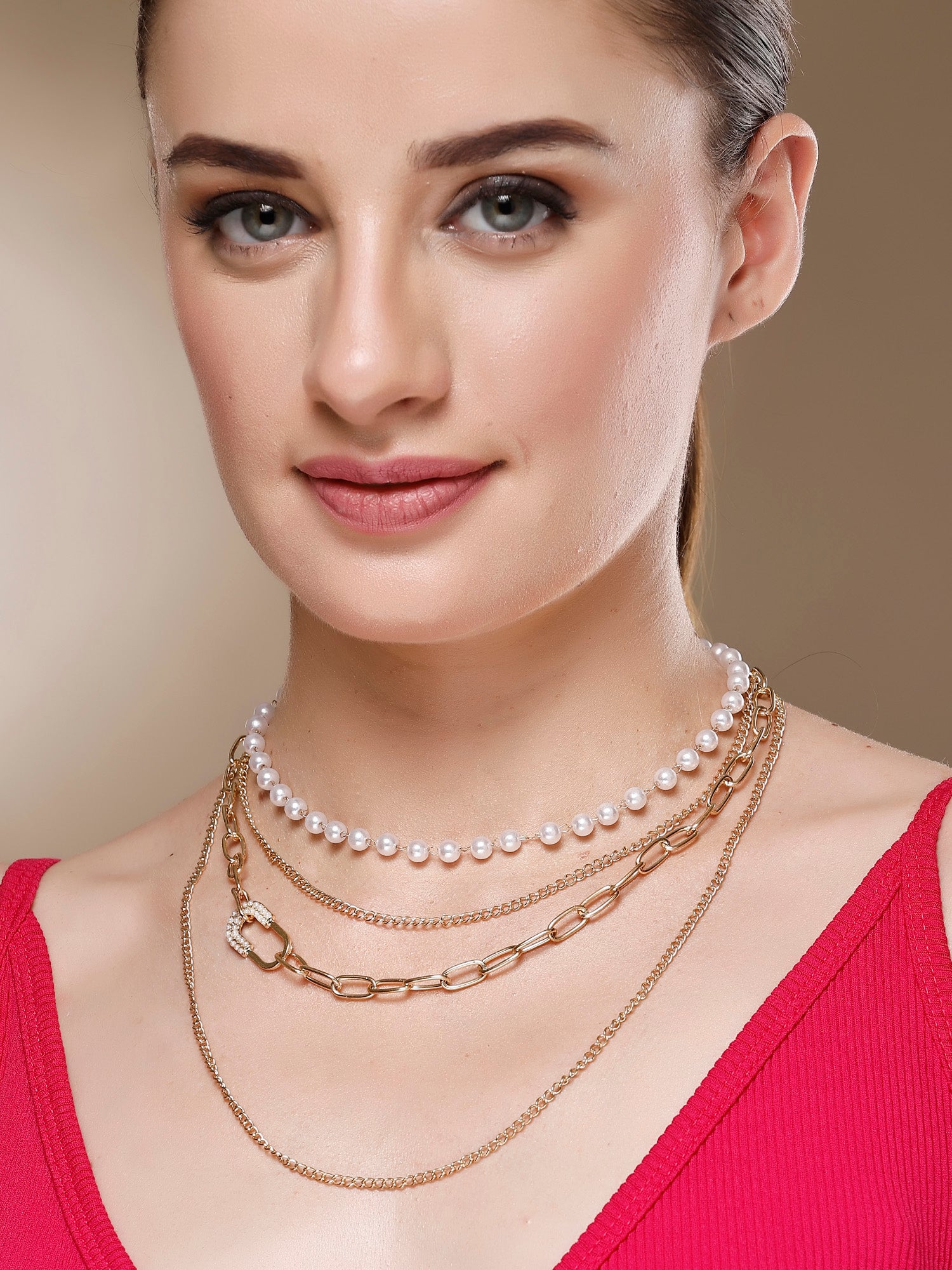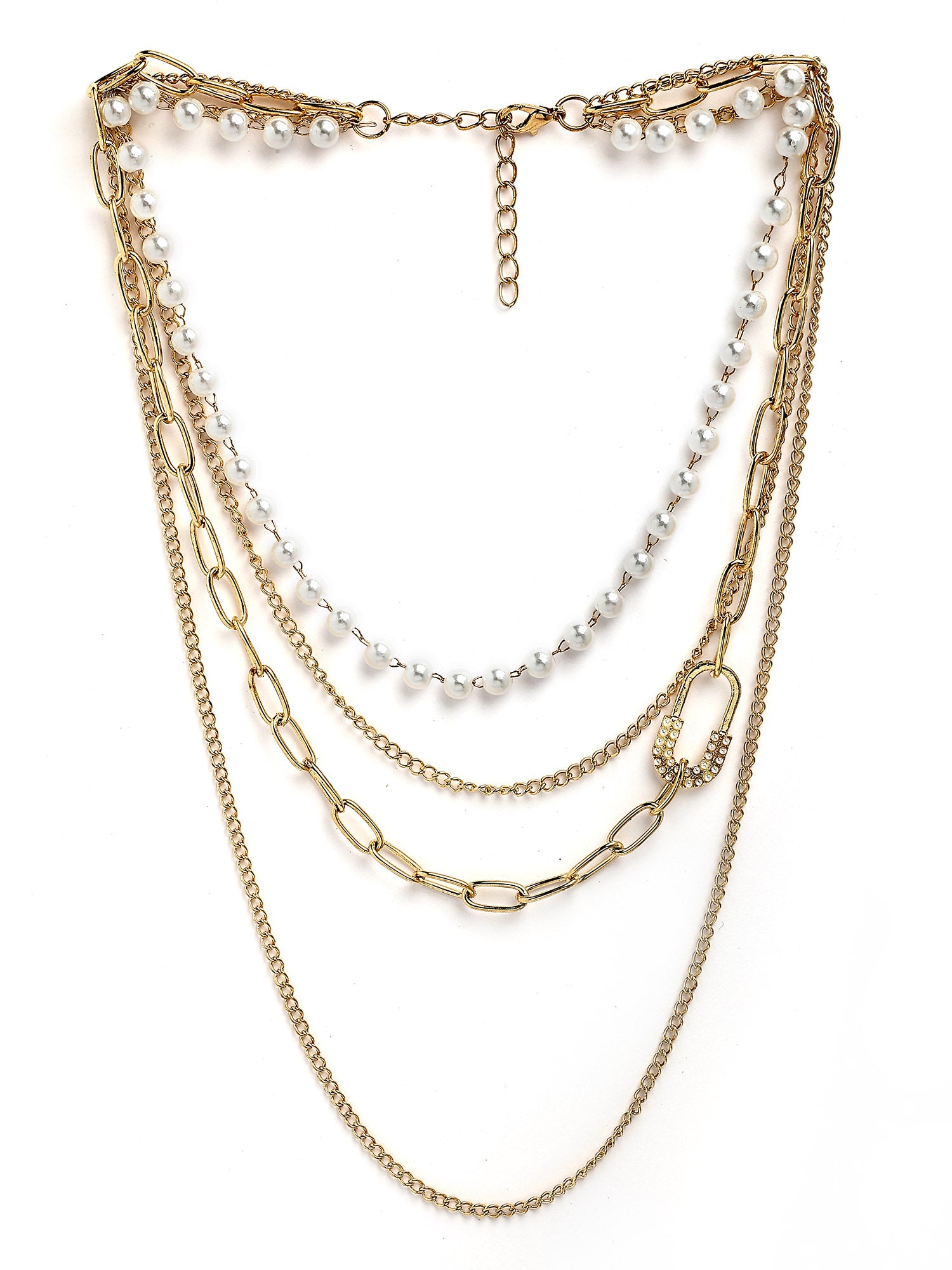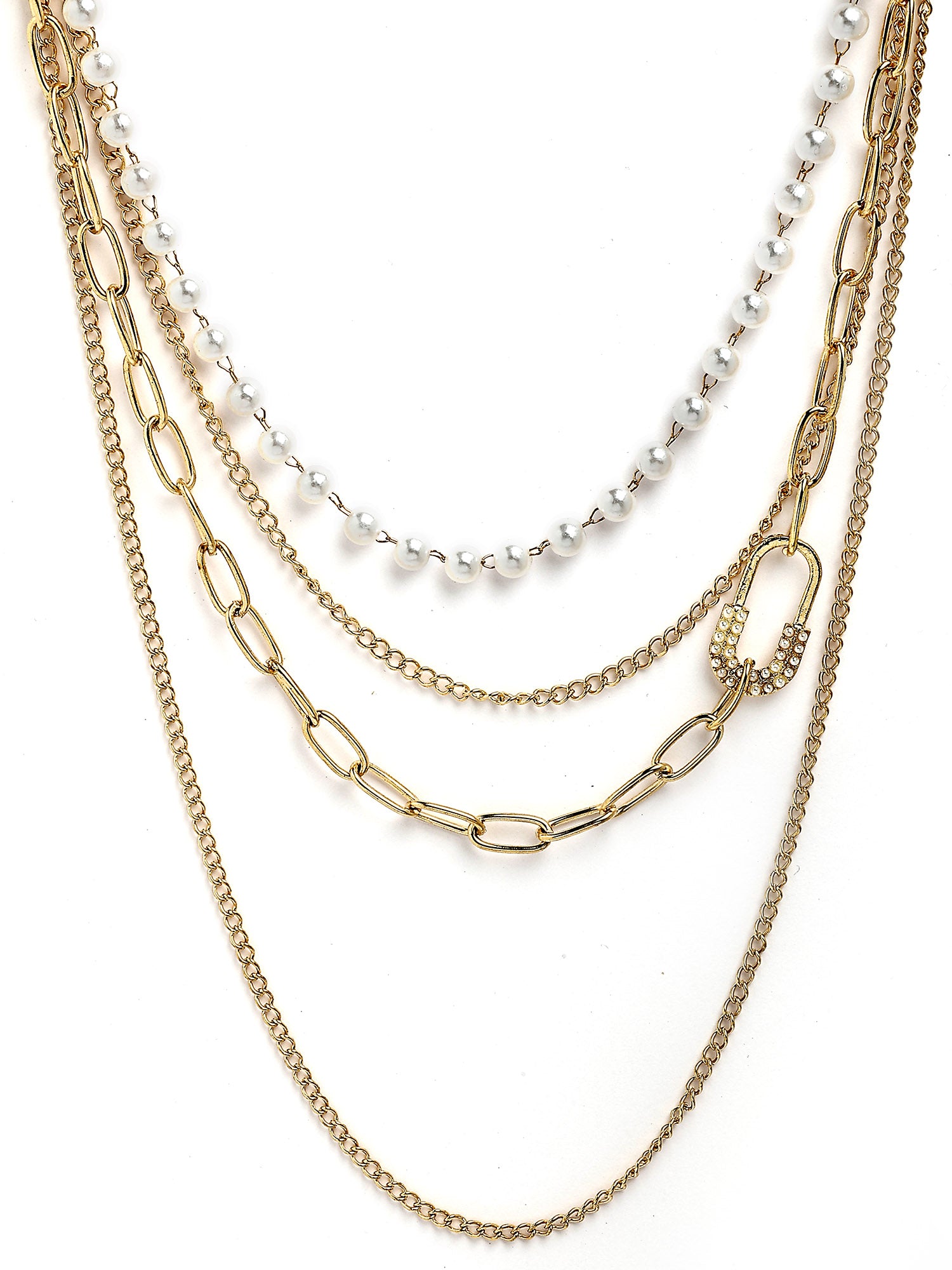 Bohey by KARATCART Gold-Plated Pearl Multilayer Chain Necklace for Women