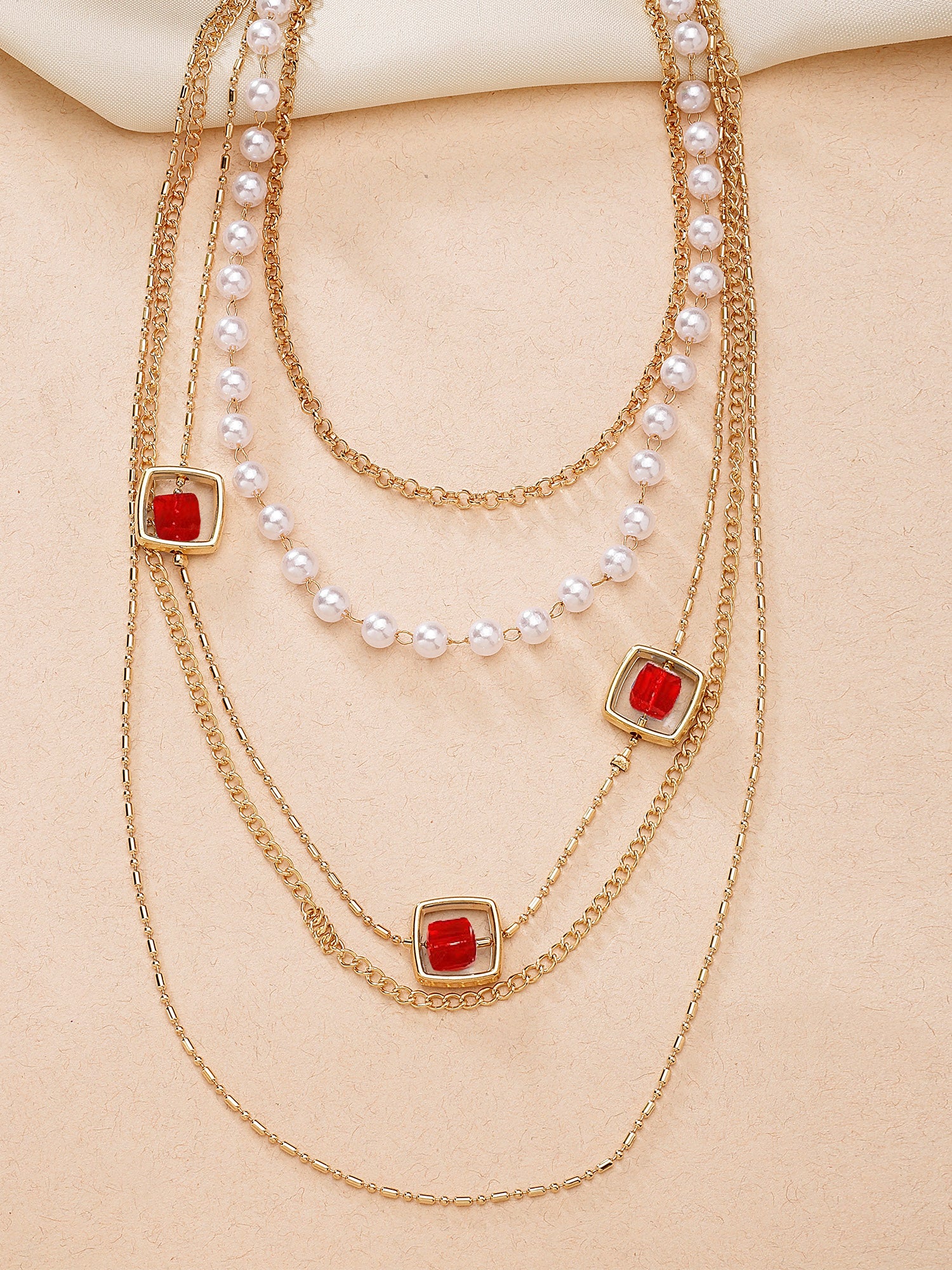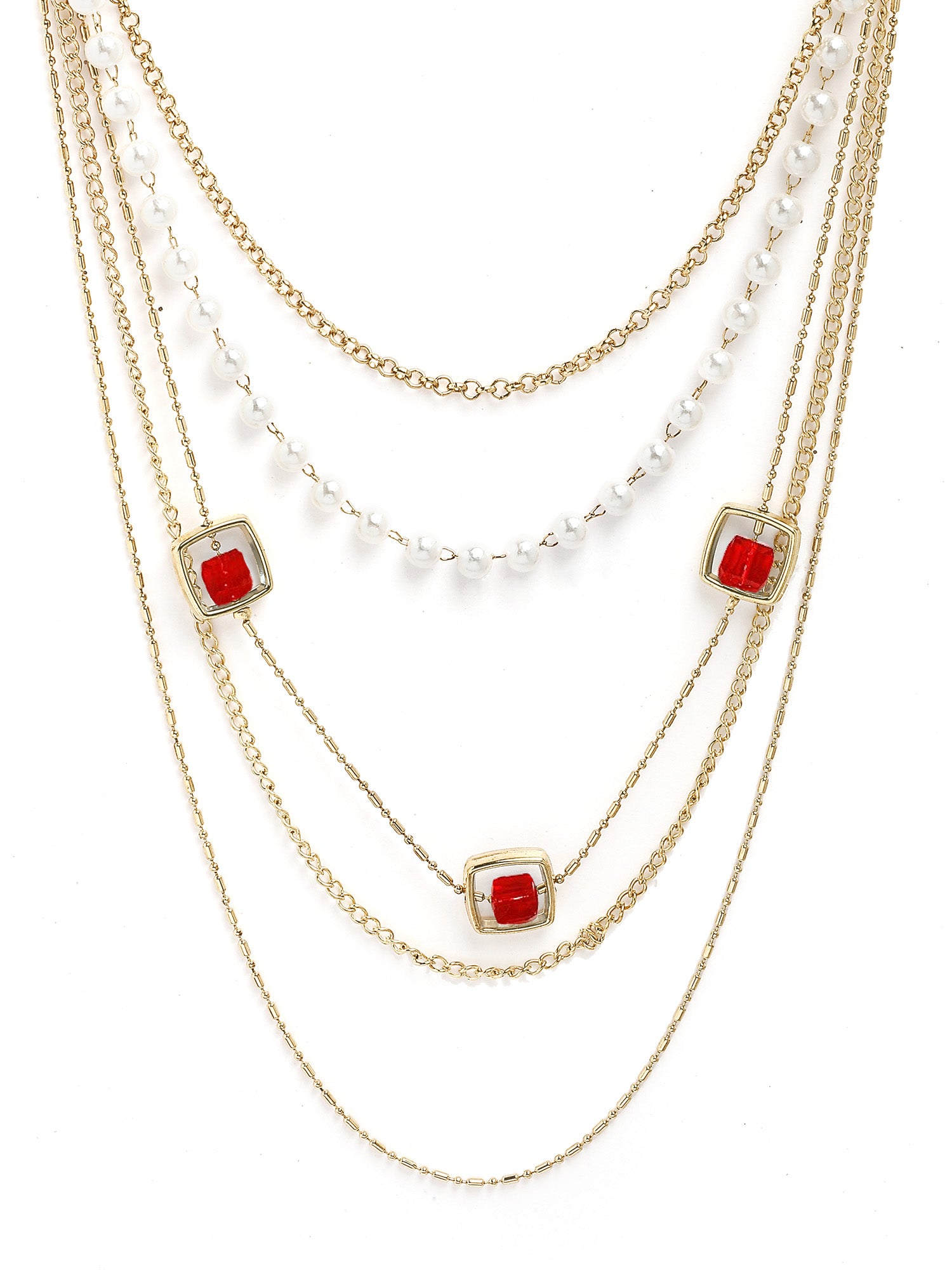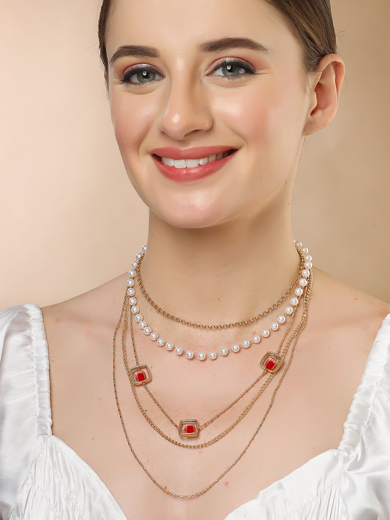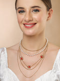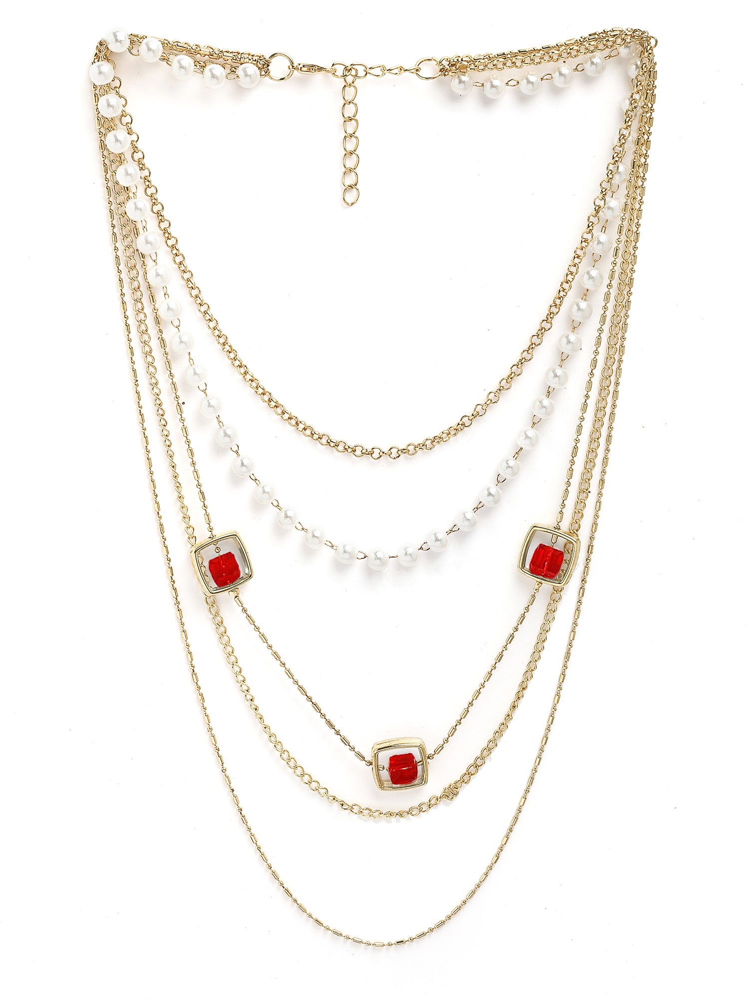 Bohey by KARATCART Gold-Plated Red Stone Multilayer Chain Necklace for Women
