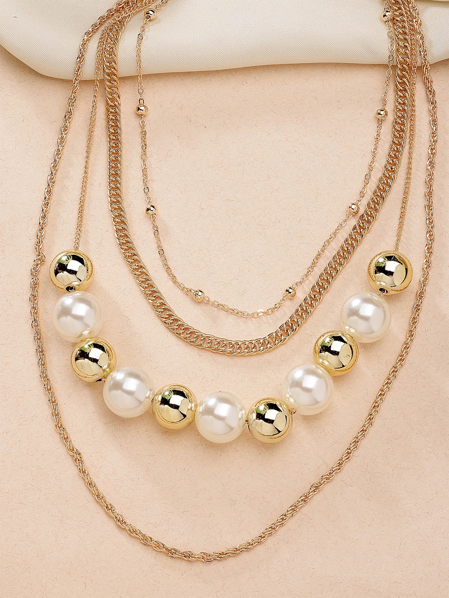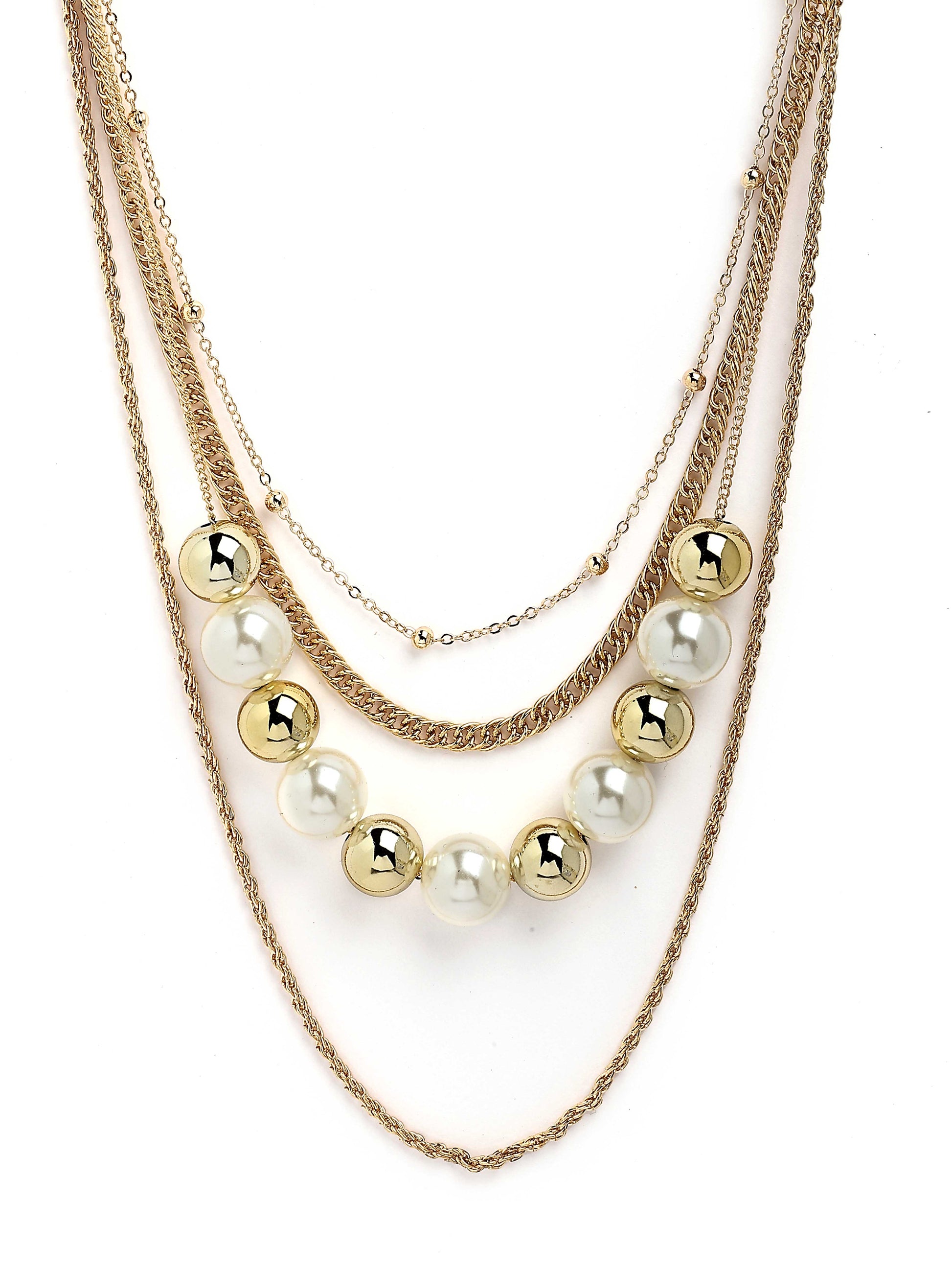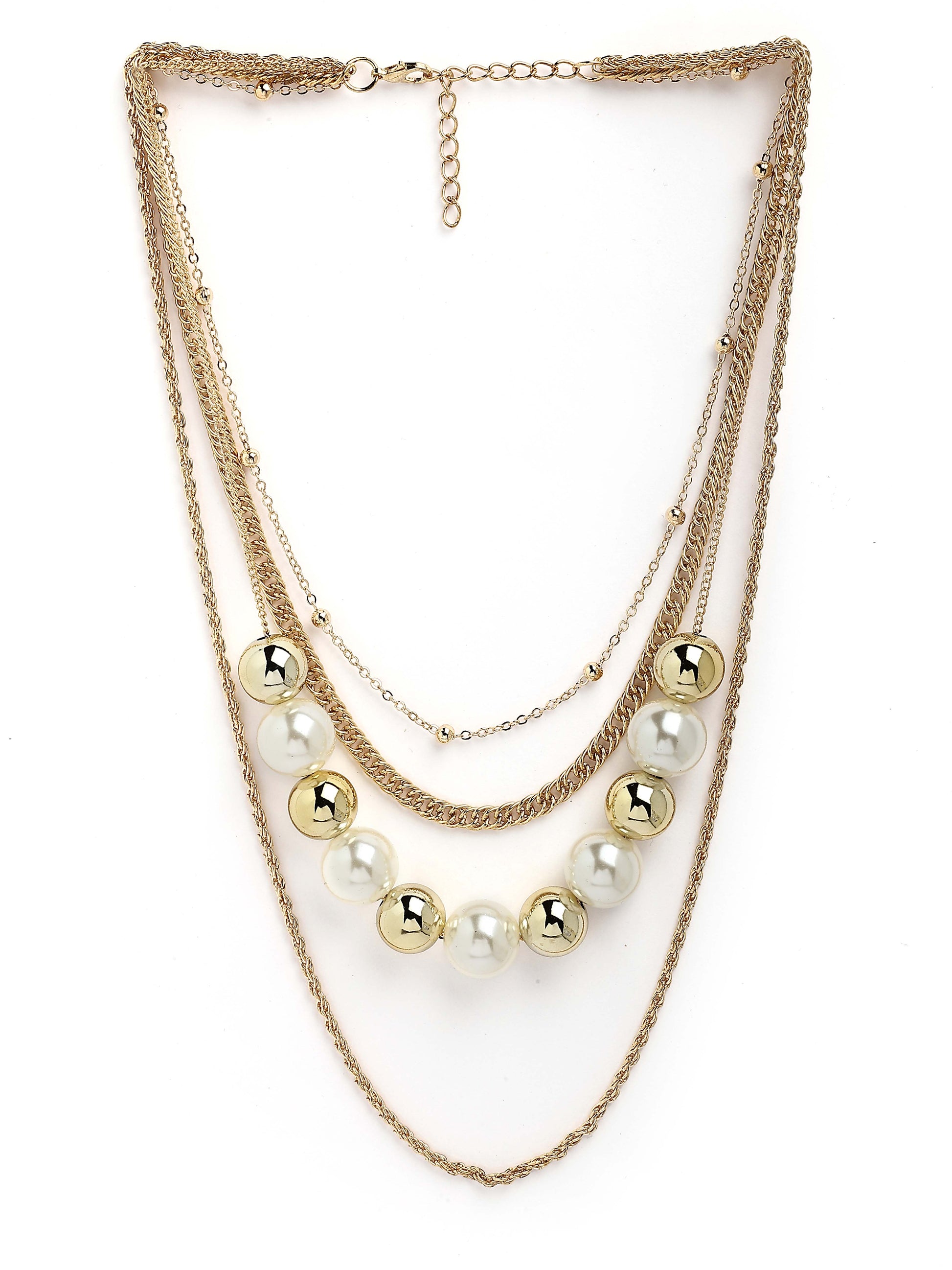 Bohey by KARATCART Gold-Plated Pearl Multilayer Chain Necklace for Women