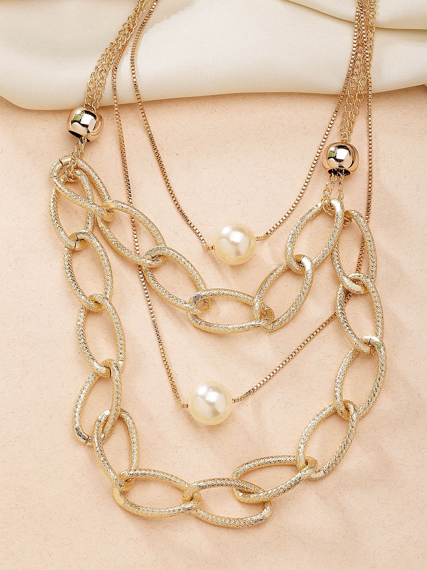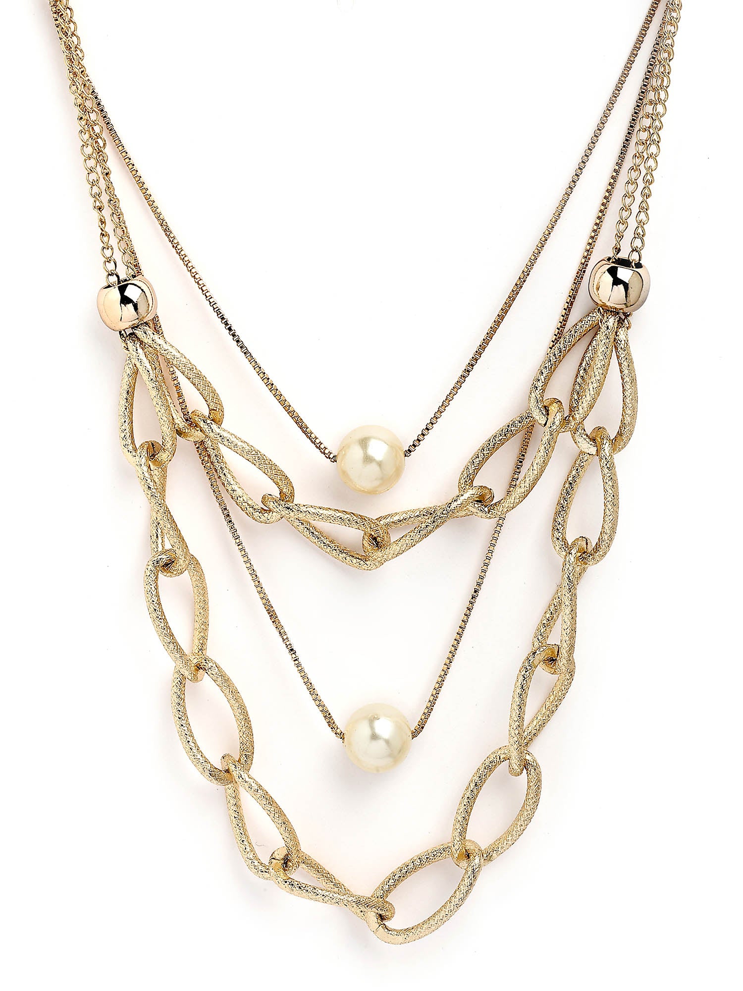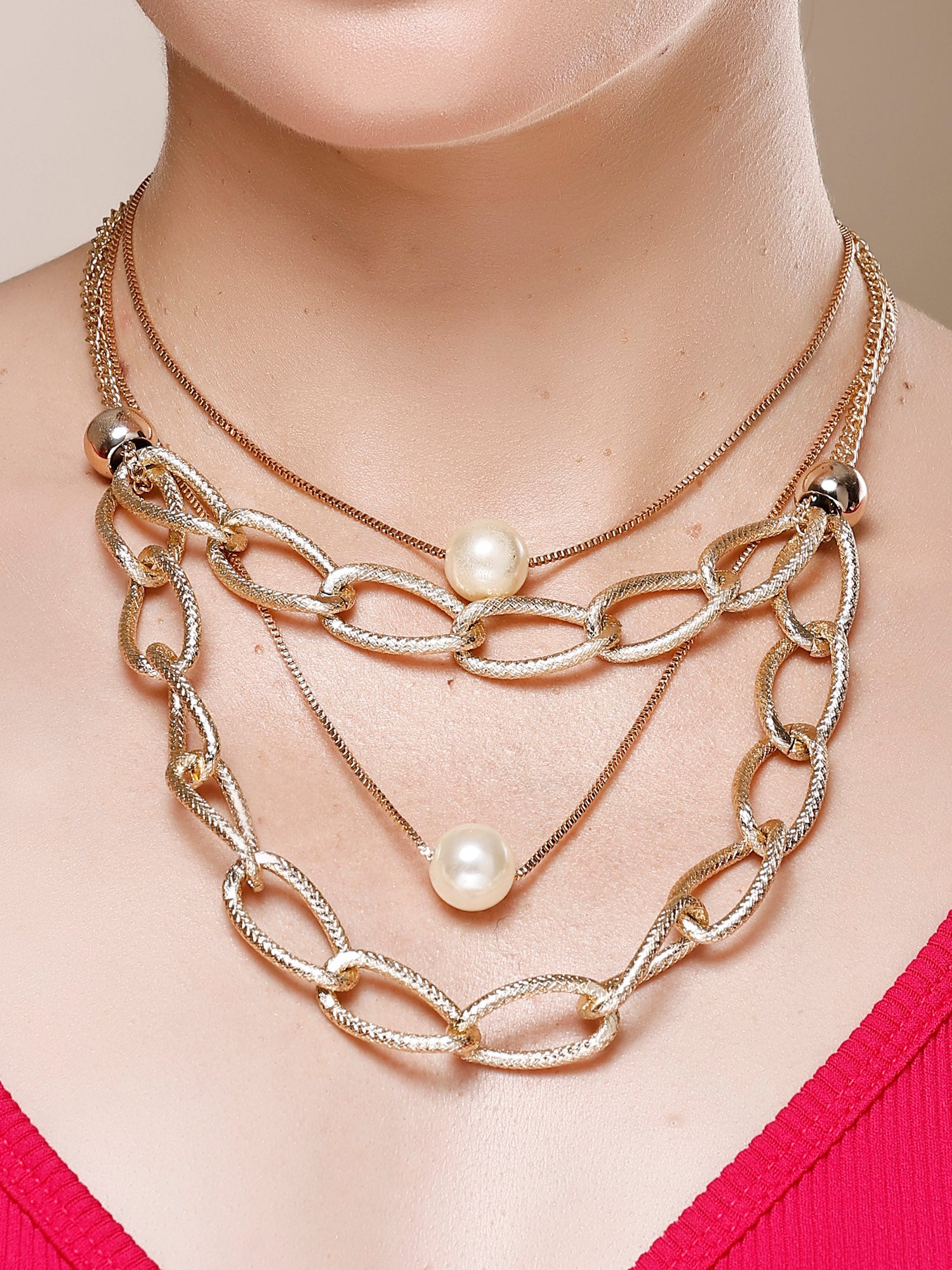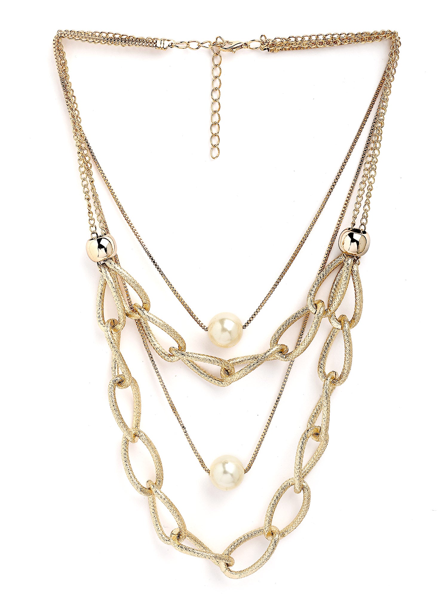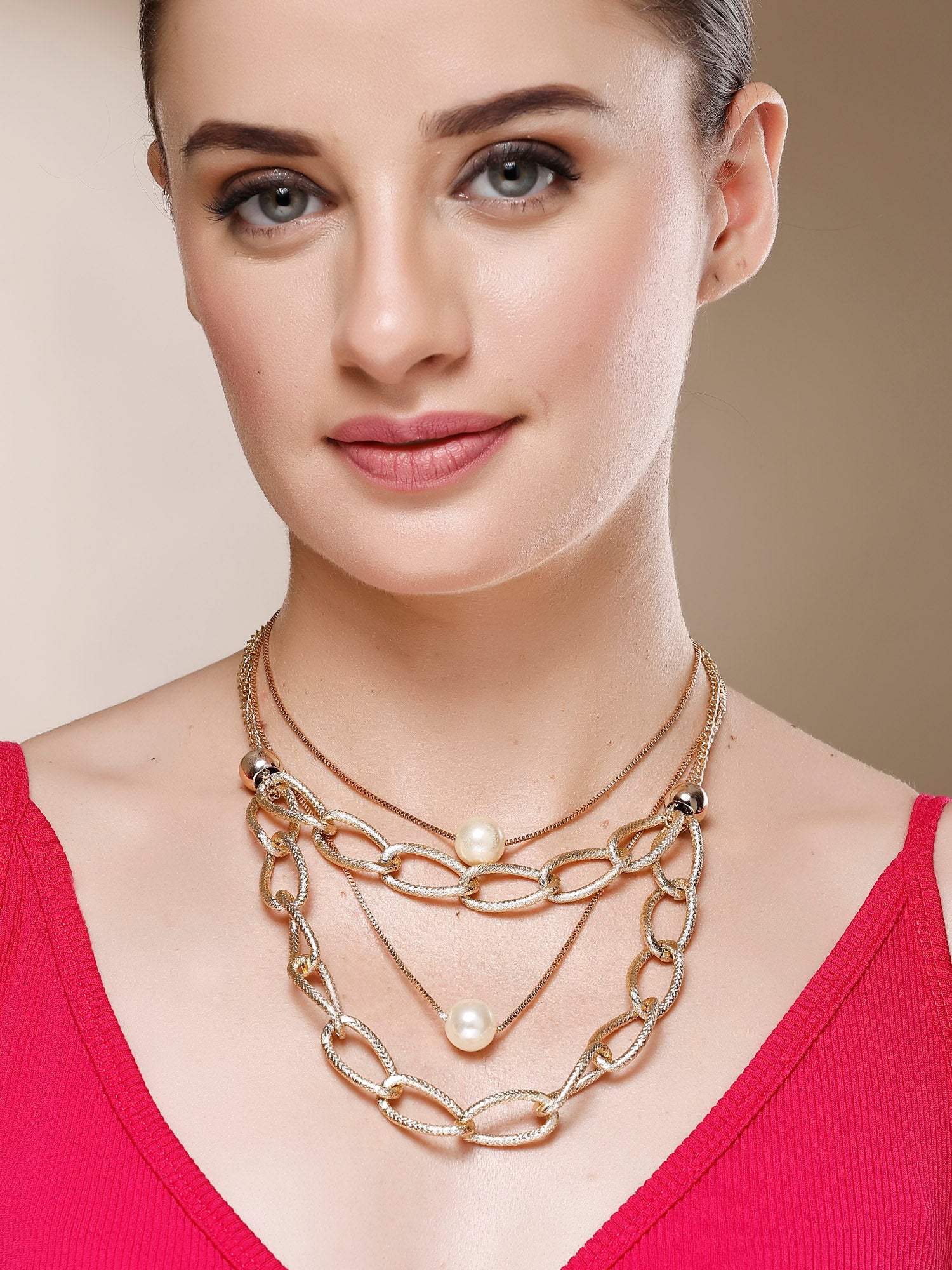 Bohey by KARATCART Gold-Plated Pearl Multilayer Chain Necklace for Women