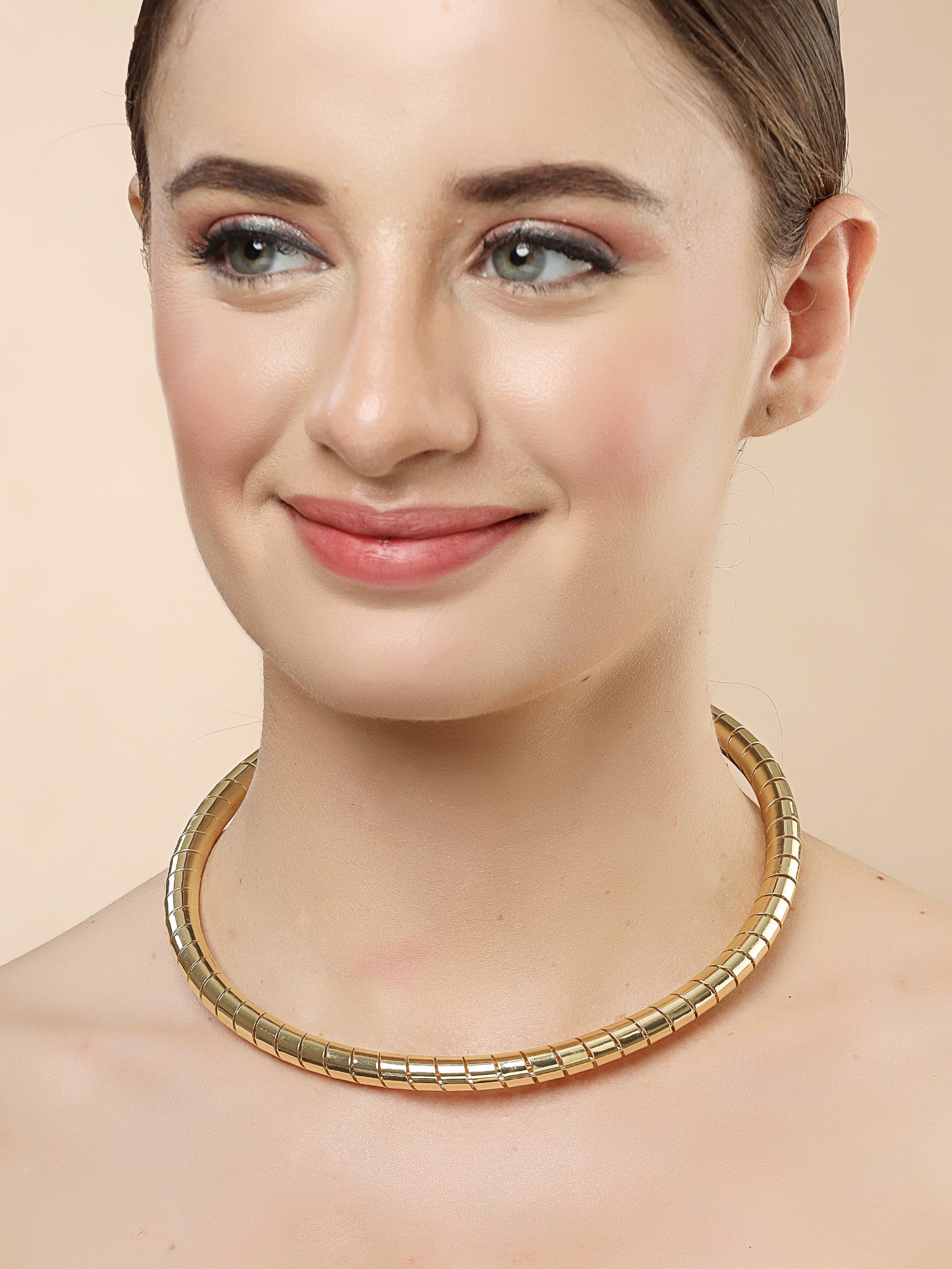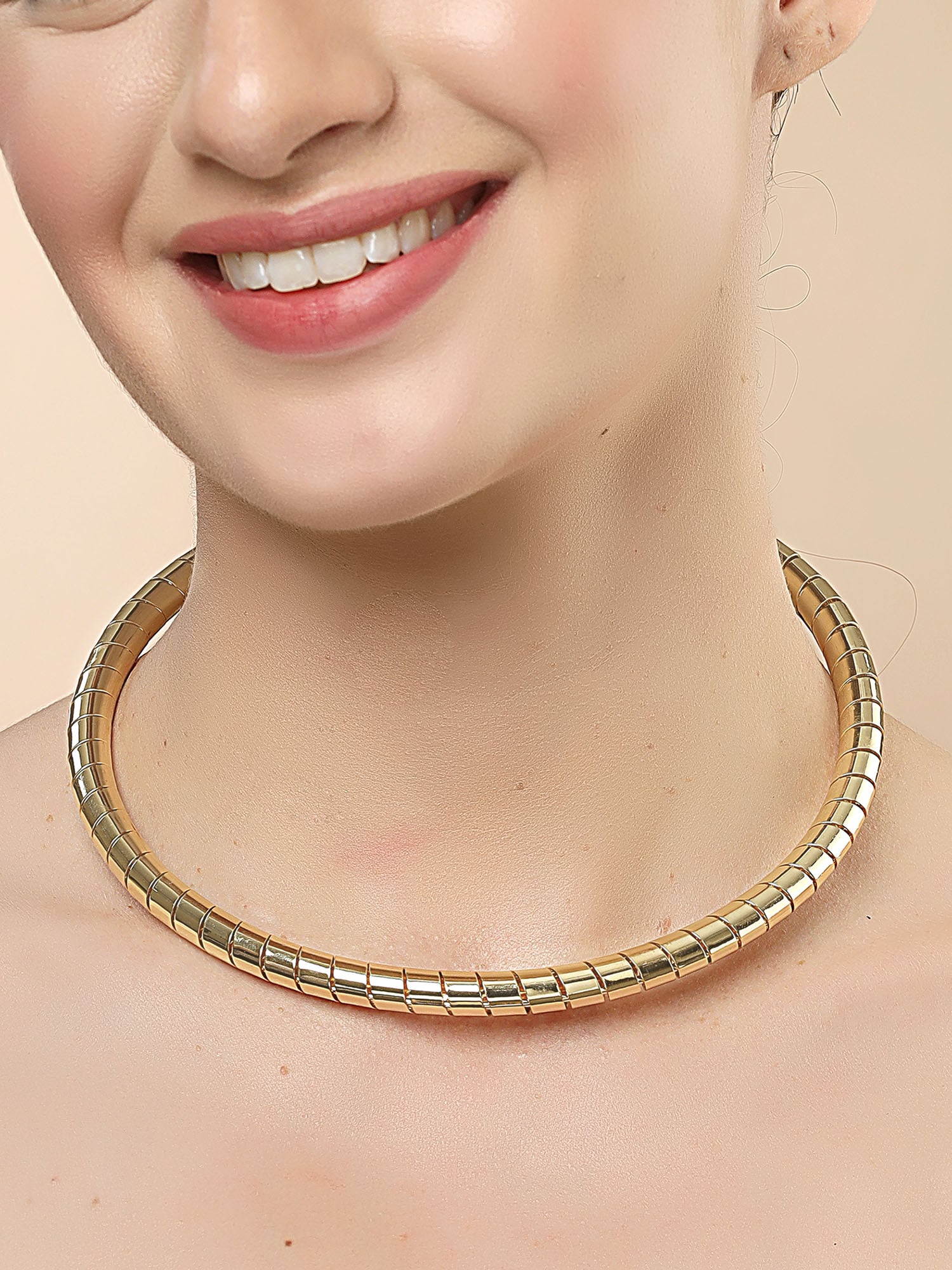 Bohey by KARATCART Gold-Plated Spiral Choker Chain Necklace for Women