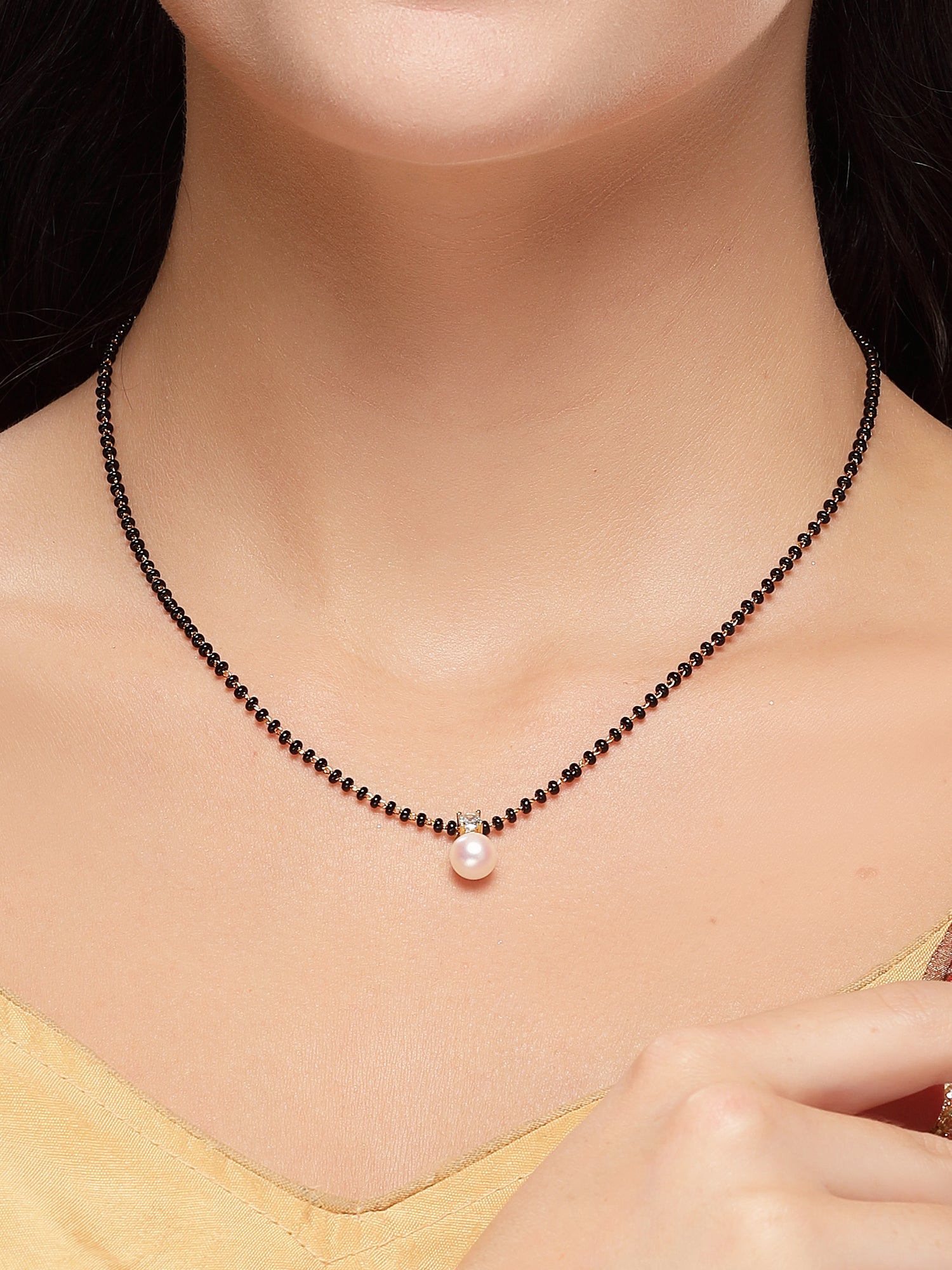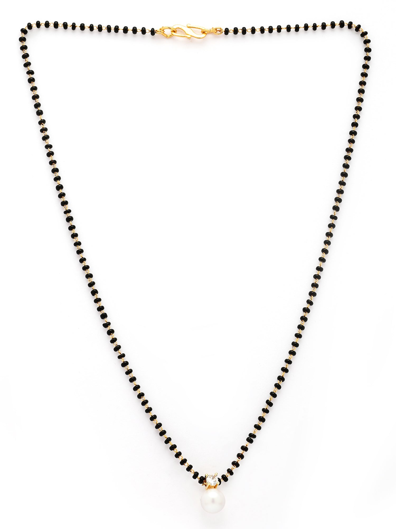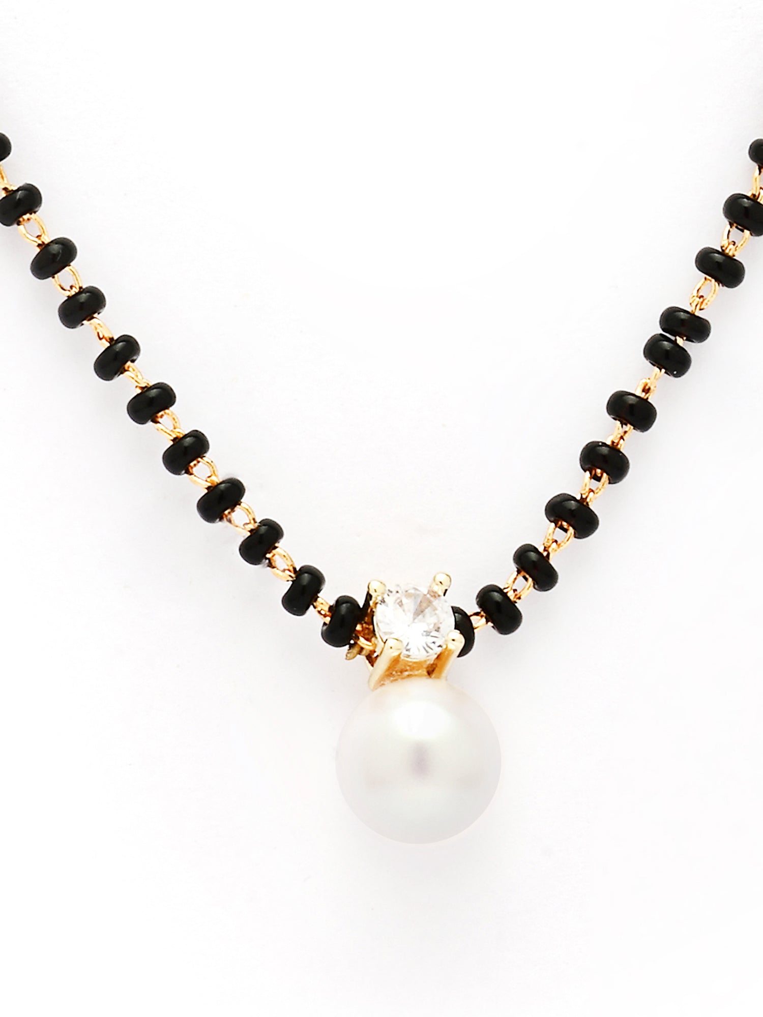 Bohey by KARATCART Graceful Pearl Drop Gold-Toned American Diamond Mangalsutra for Women