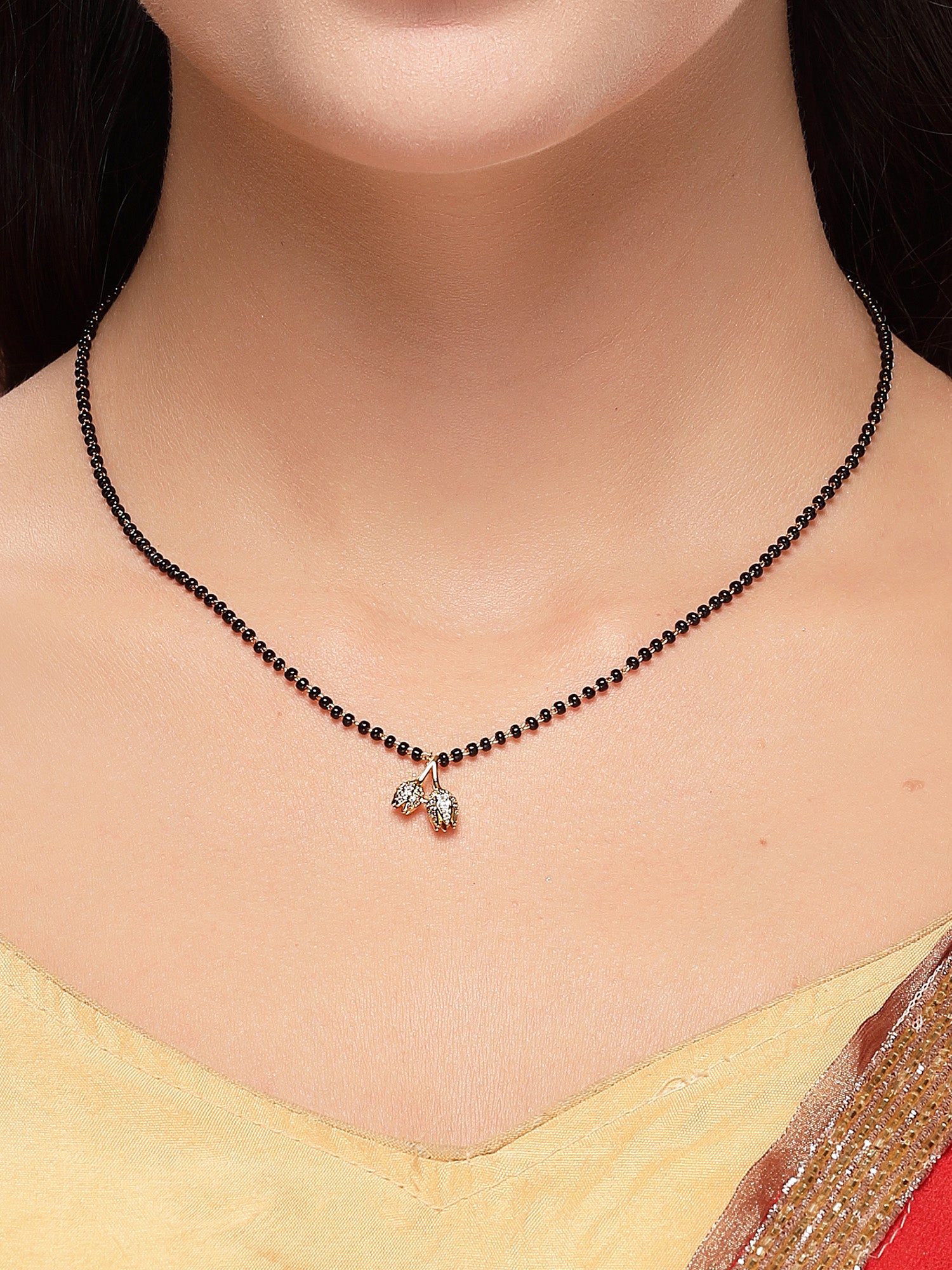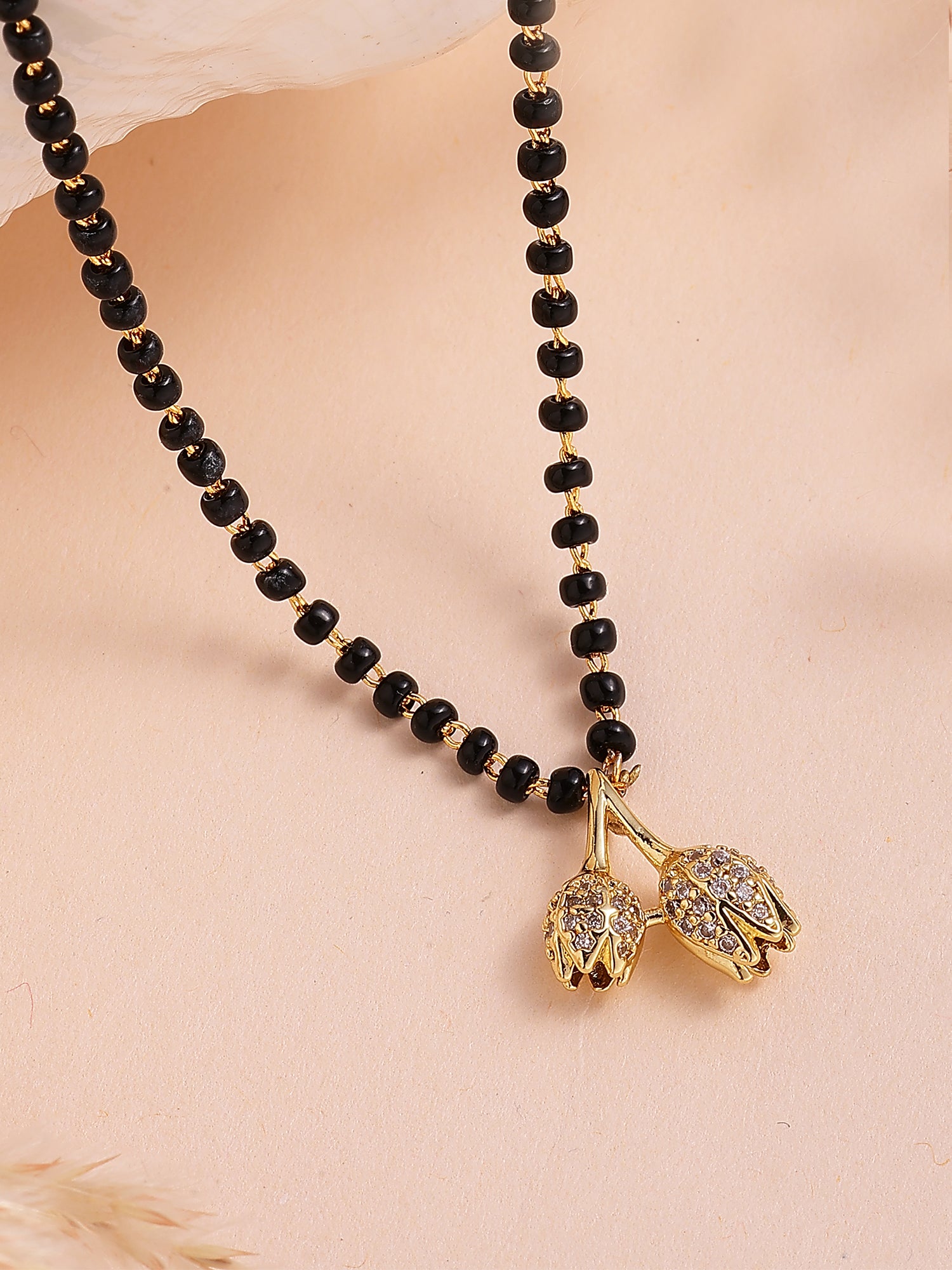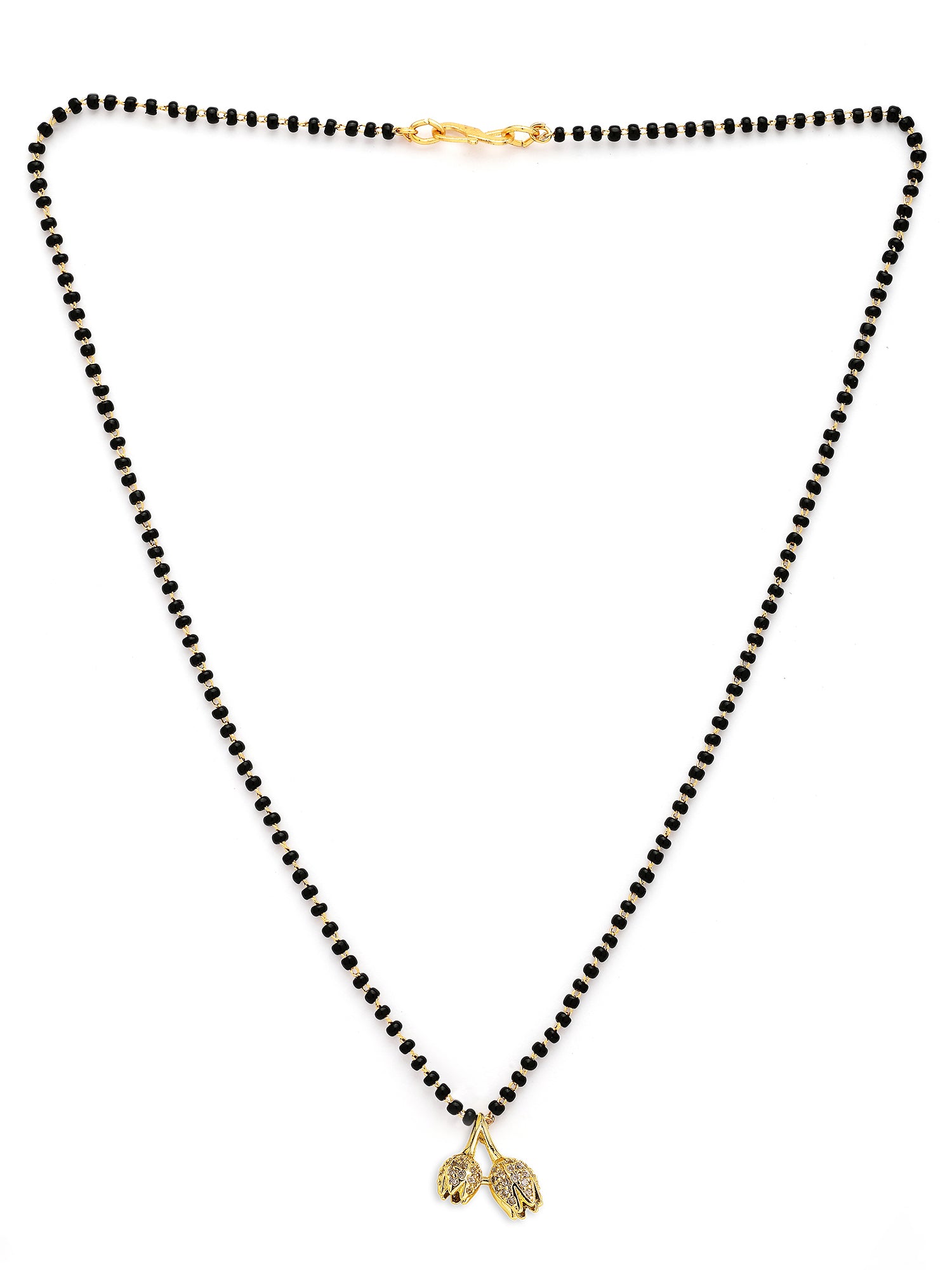 Bohey by KARATCART Classic Floral Charm Black Beaded Mangalsutra for Women