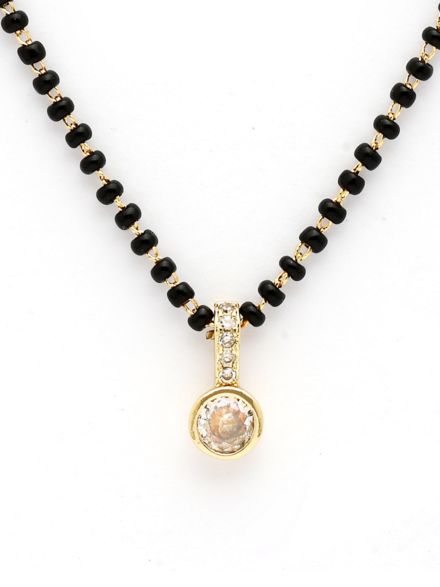 Bohey by KARATCART Classic Round Solitaire Pendant Gold-Toned Mangalsutra for Women