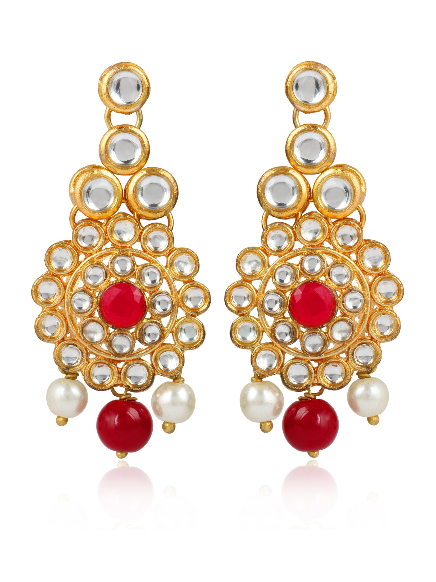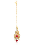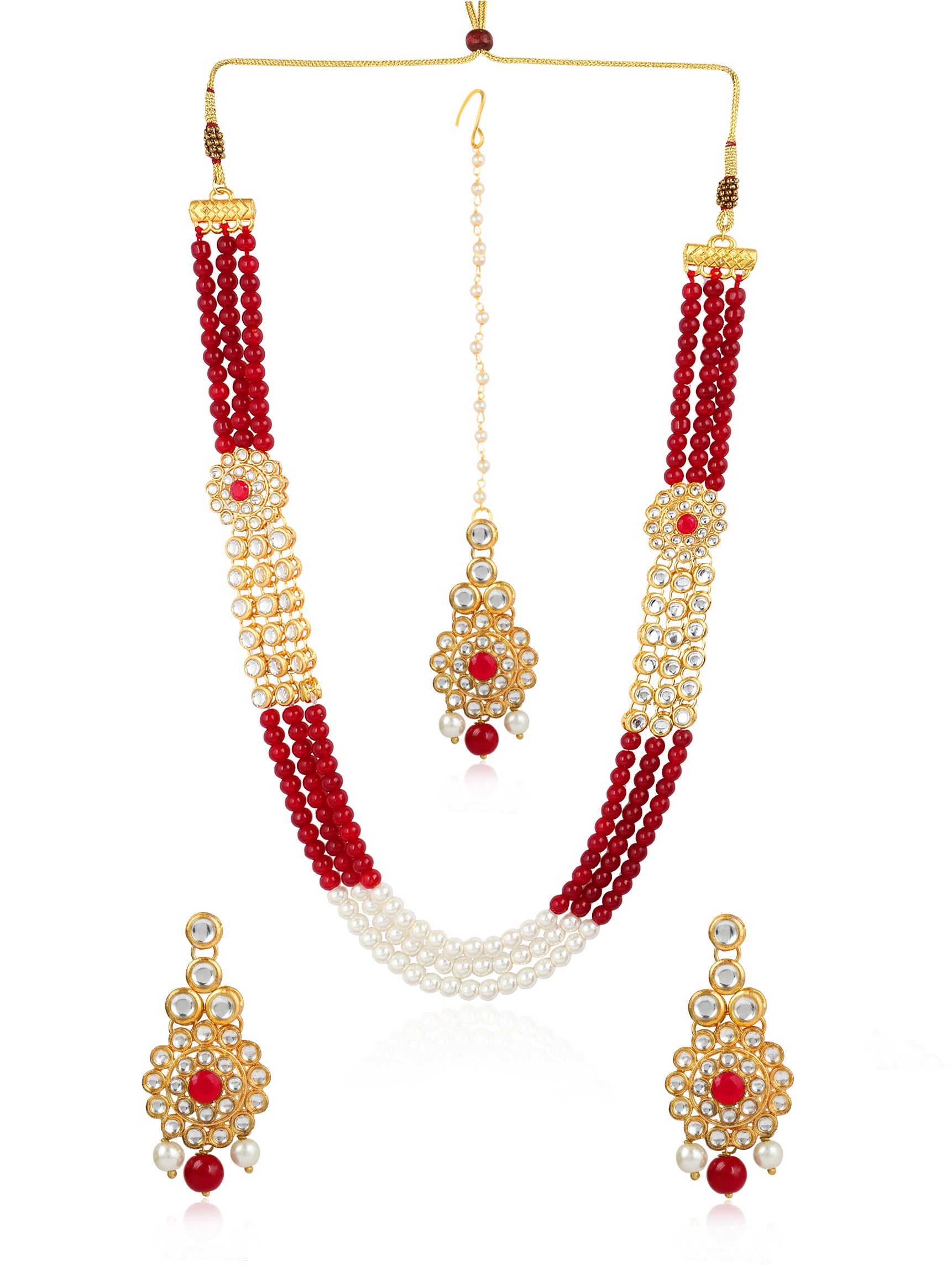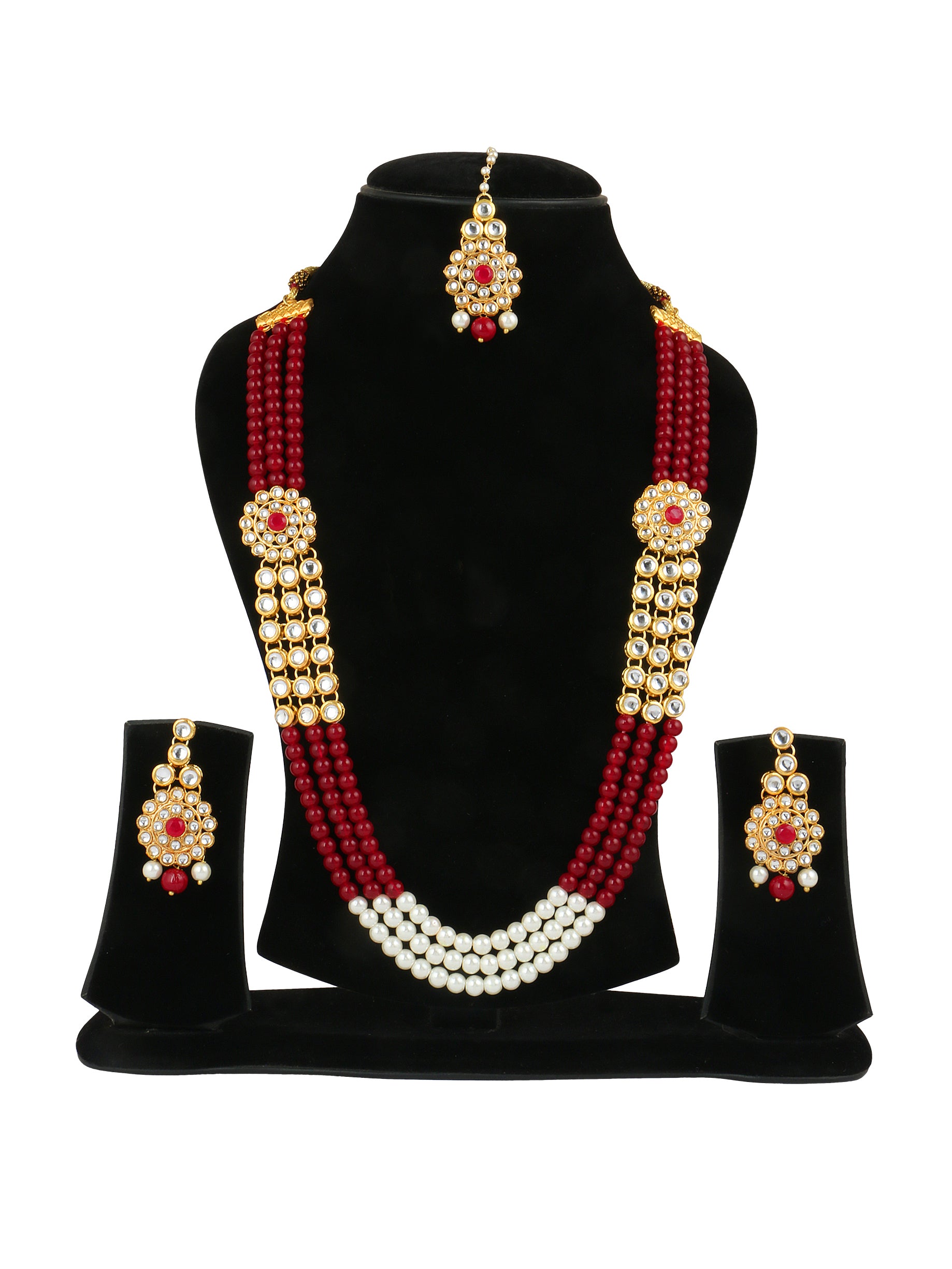 Gold-toned and red necklace with kundan and red beads, secured with a drawstring closure