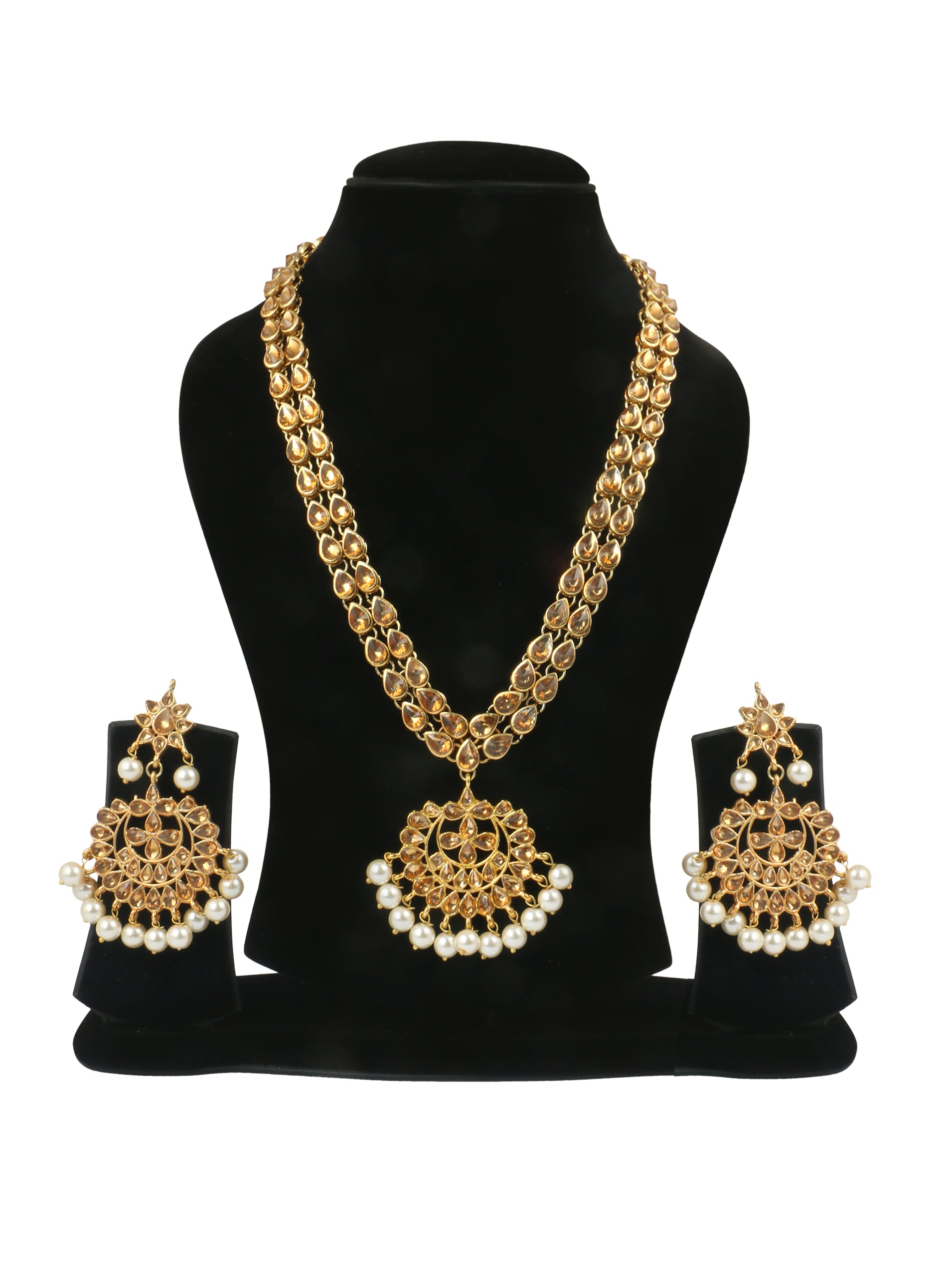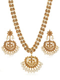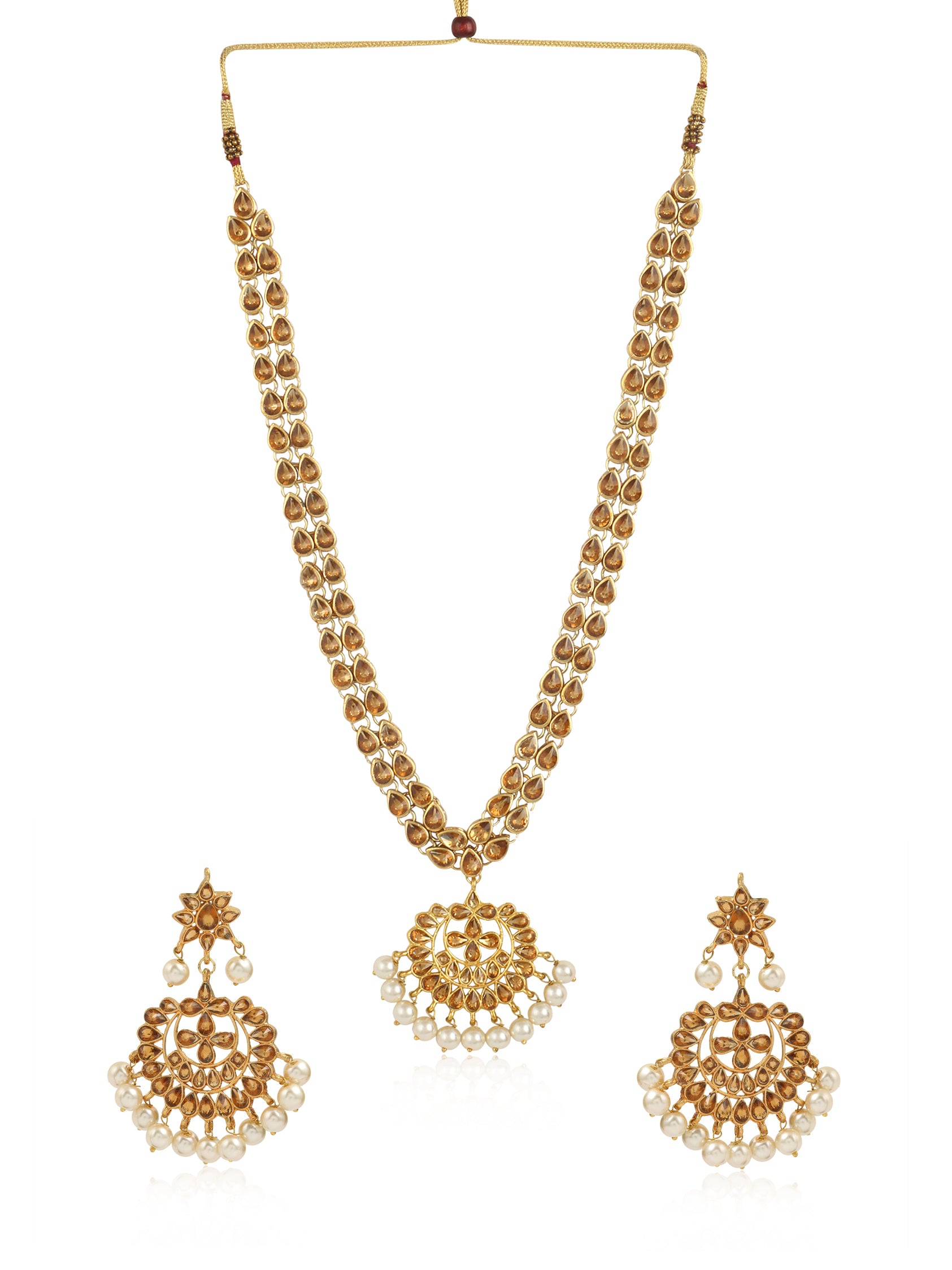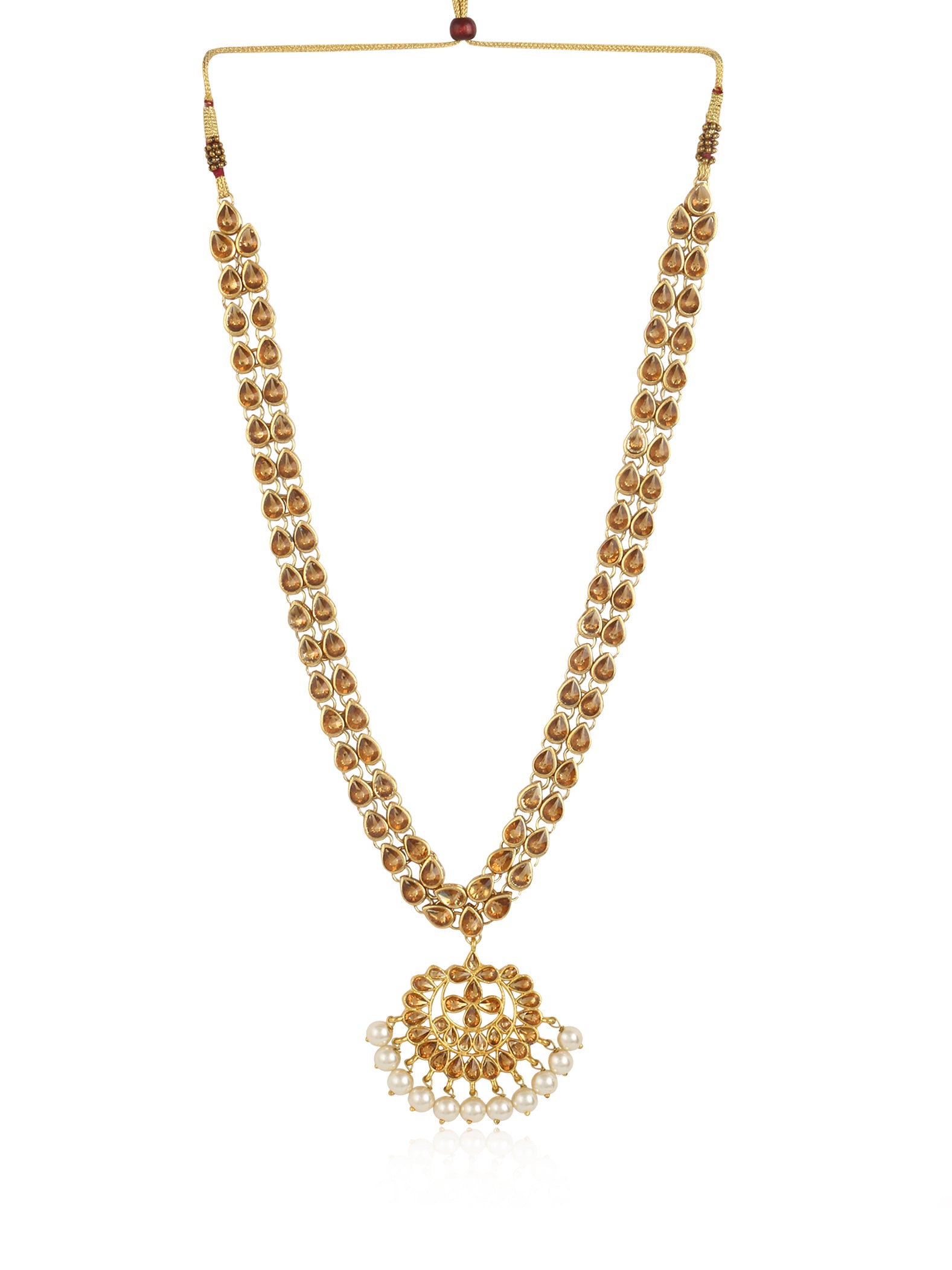 - Antique origins Kundan White Pearl Drop Long Necklace For Women