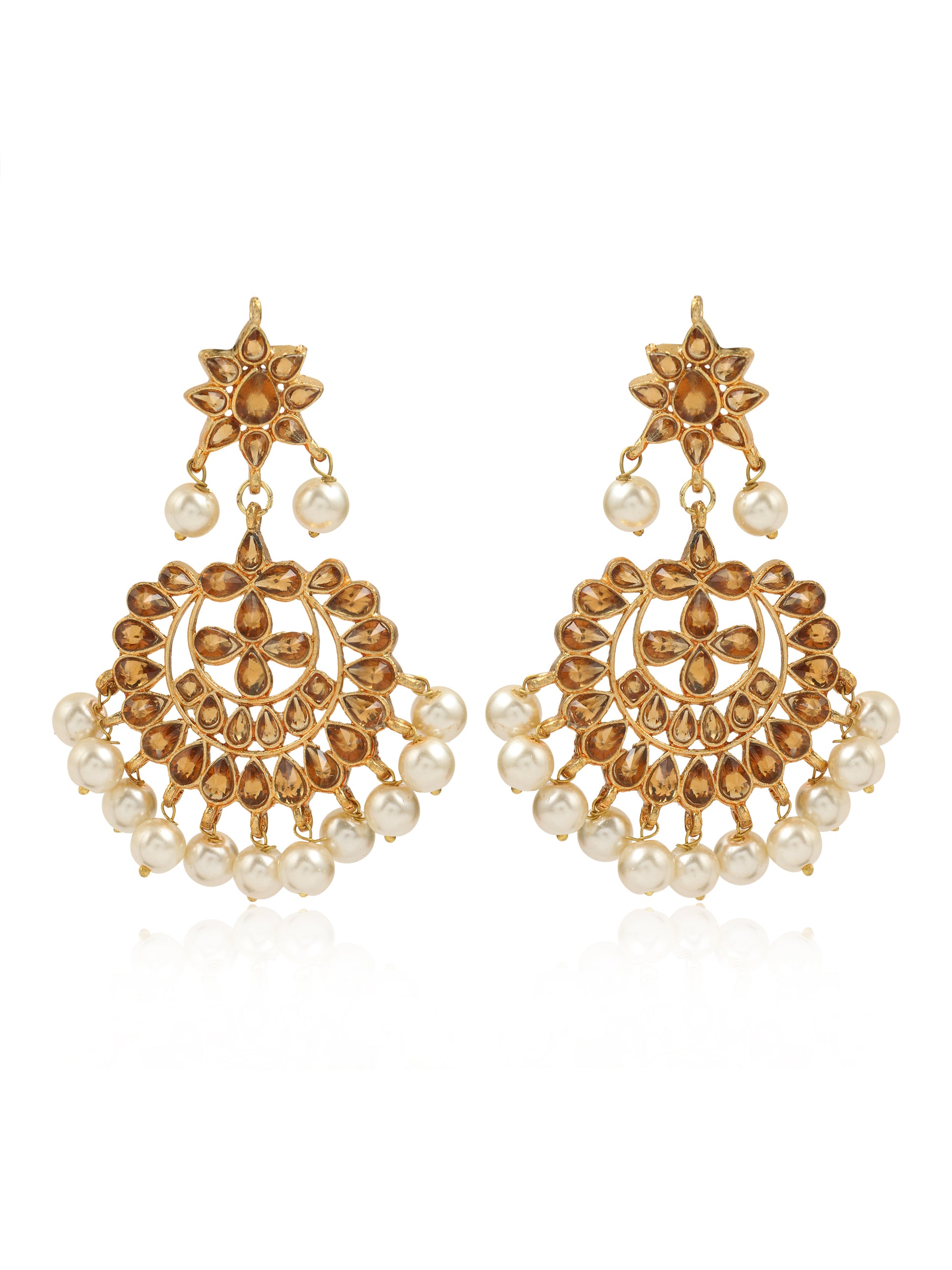 - You know when we buy that perfect dress for our bestie's wedding and are trying to find the jewellery that perfectly matches our dress. It has to be trendy and obviously bold enough to attract attention. After all the bridesmaid is the most important after the bride herself. Well here is a golden necklace with an elegant design and subtle approach. The big chandbali earrings provide the oomph factor and you are all set.