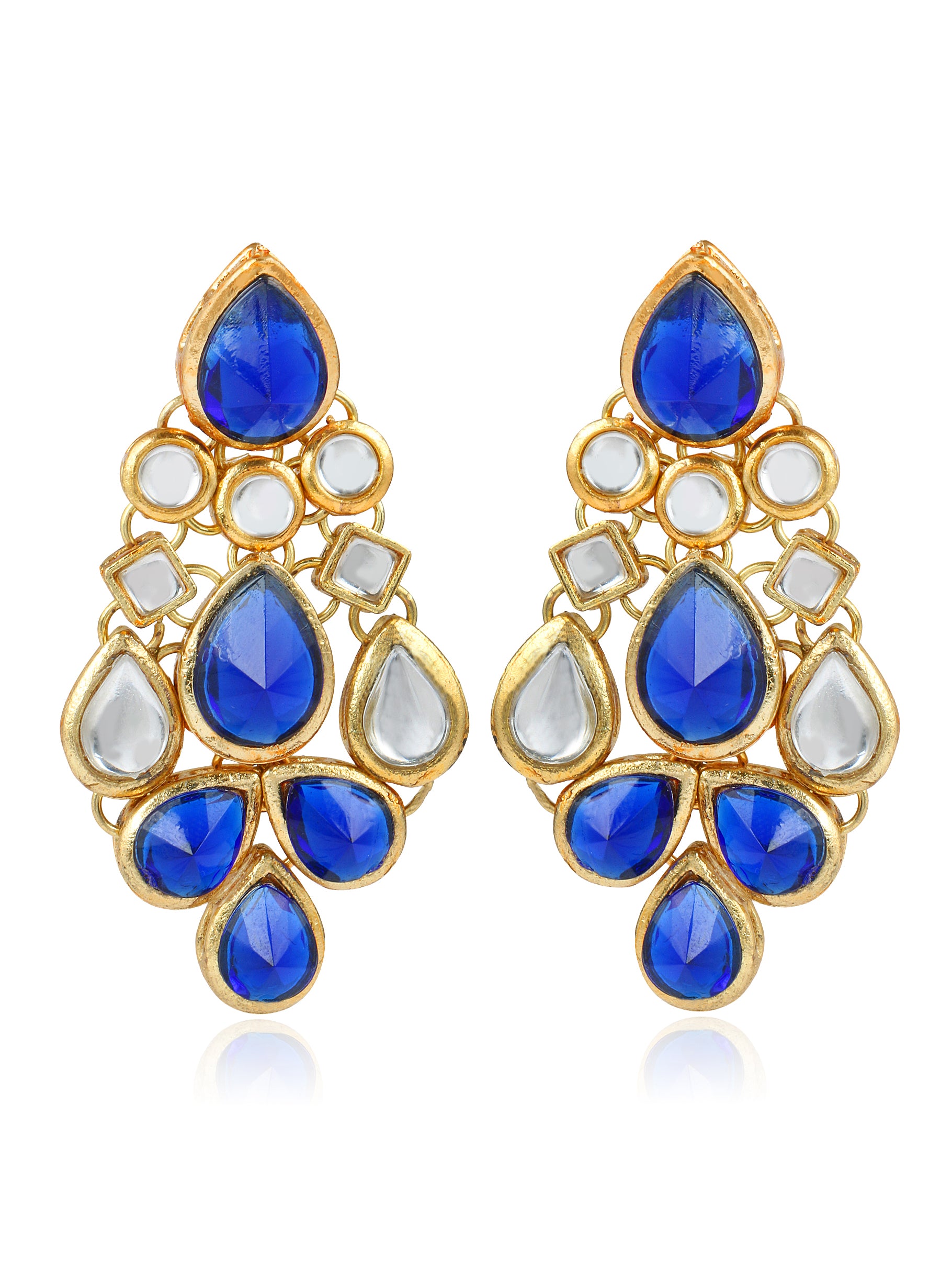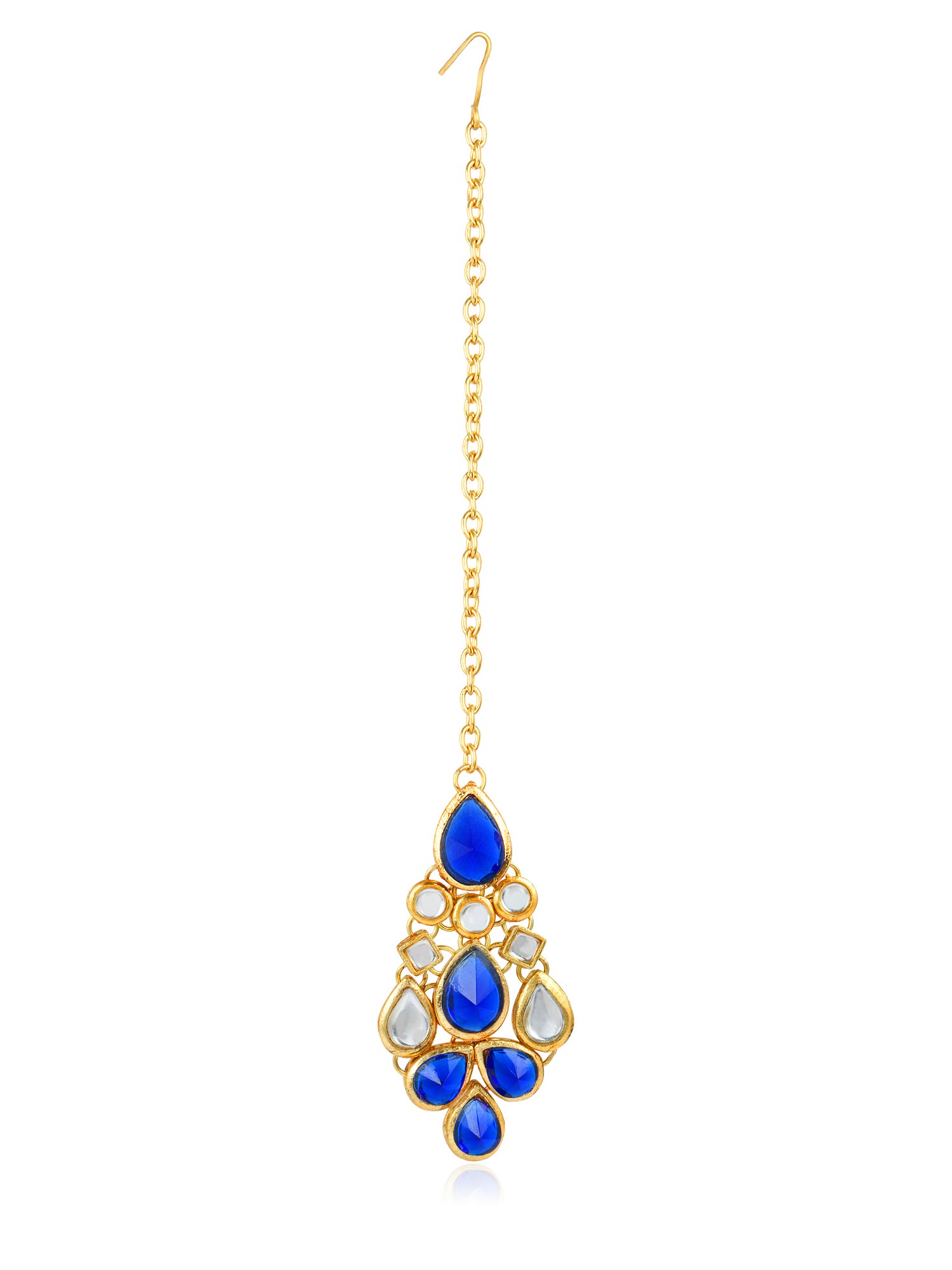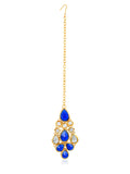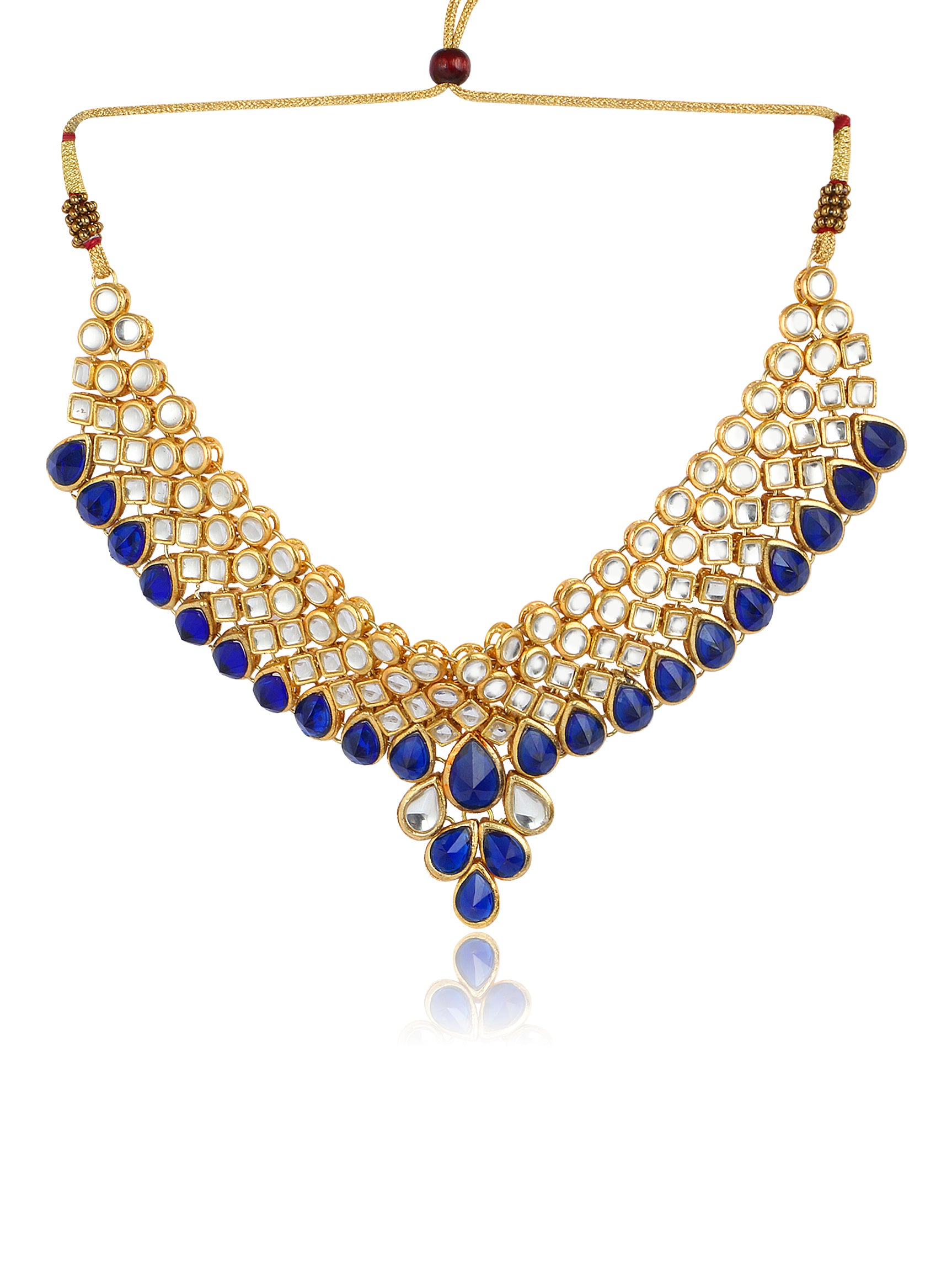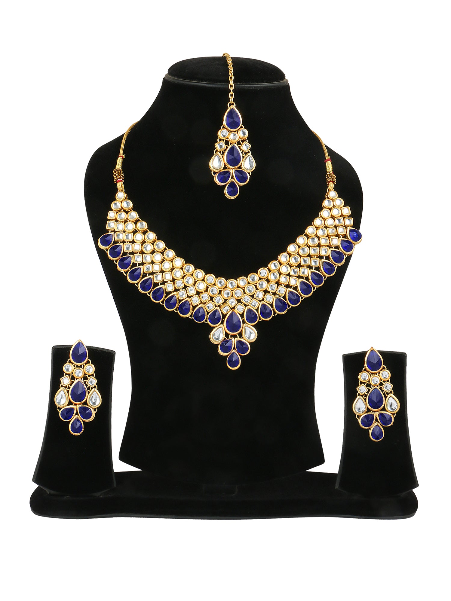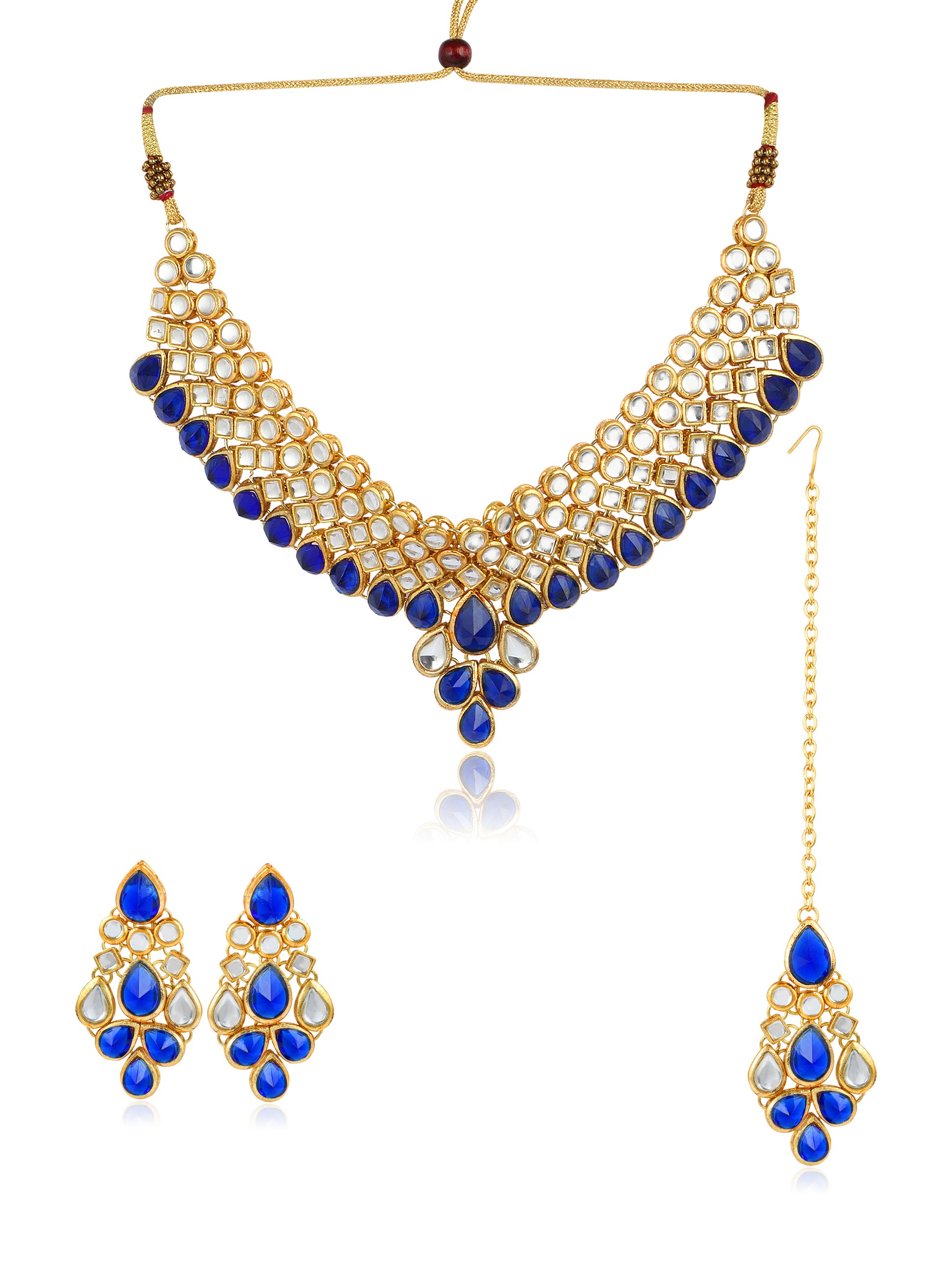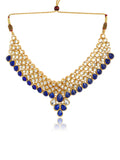- Karatcart Partywear Traditional Kundan Blue Necklace Set with Earrings and Maangtikka