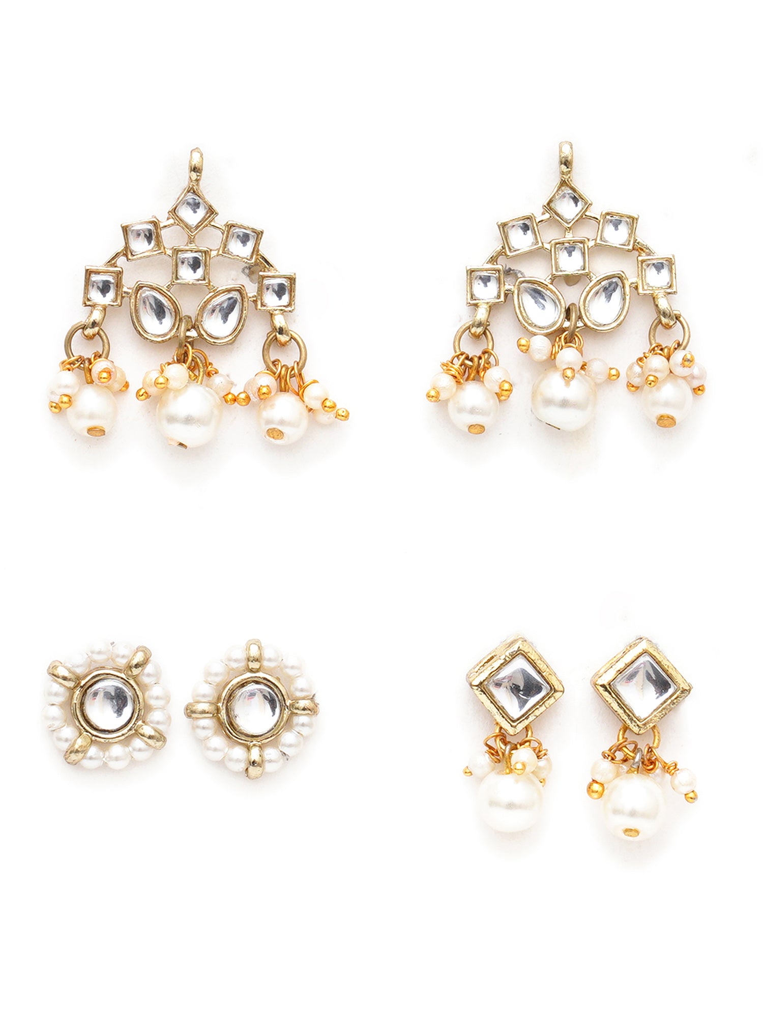 • Karatcart Set of 3 Handcrafted Kundan Earrings Combo for Women. Our products are designed with high-quality Kundan Stones and these products are enhanced with plating that are skin-friendly & with love to reach your heart.