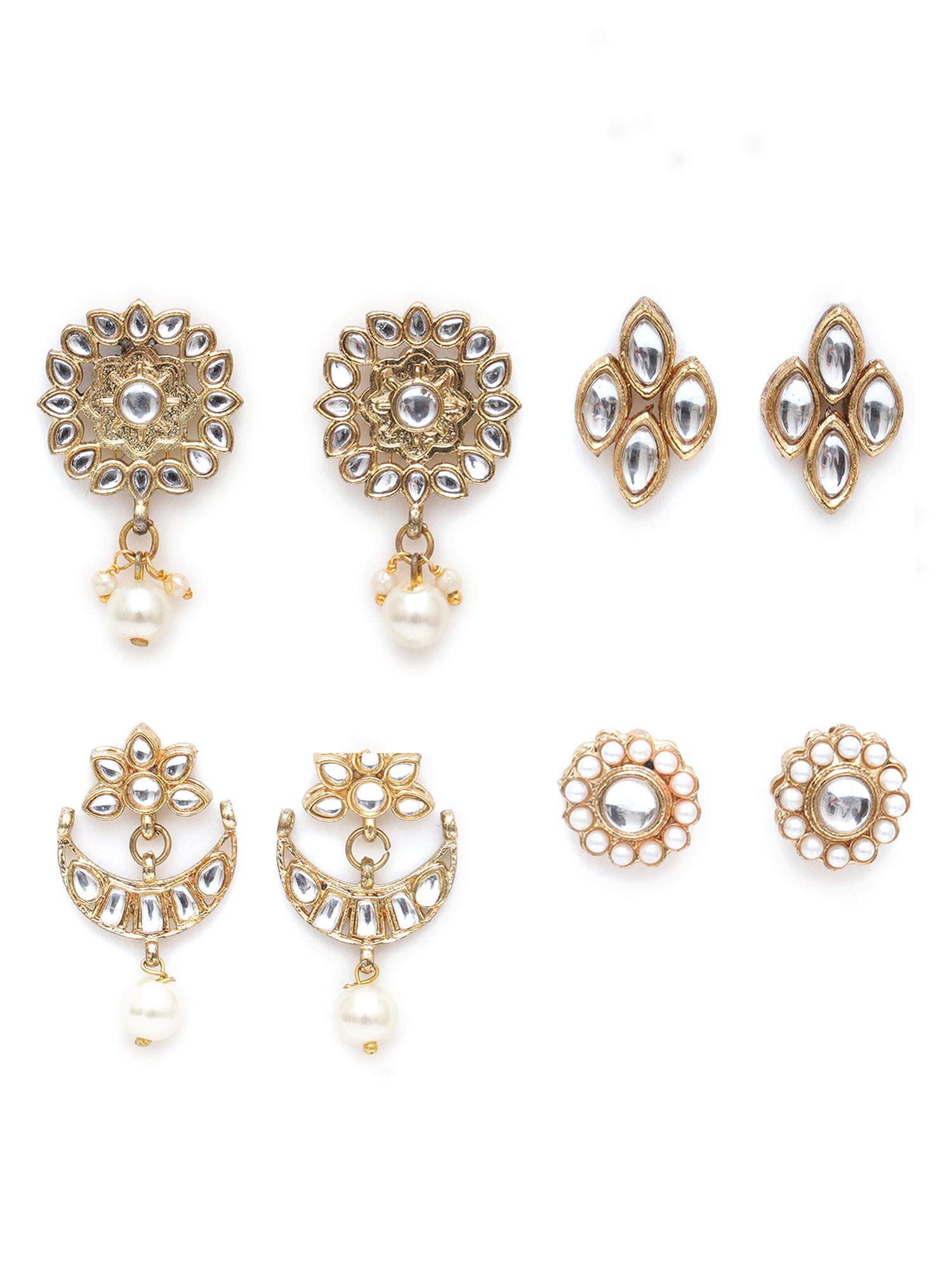 • Karatcart Set of 4 Handcrafted Kundan Earrings Combo for Women. Our products are designed with high-quality Kundan Stones and these products are enhanced with plating that are skin-friendly & with love to reach your heart.