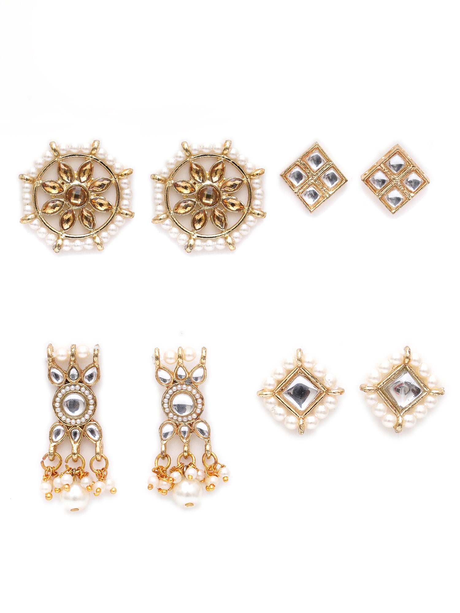 • Karatcart Set of 4 Handcrafted Kundan Earrings Combo for Women. Our products are designed with high-quality Kundan Stones and these products are enhanced with plating that are skin-friendly & with love to reach your heart.