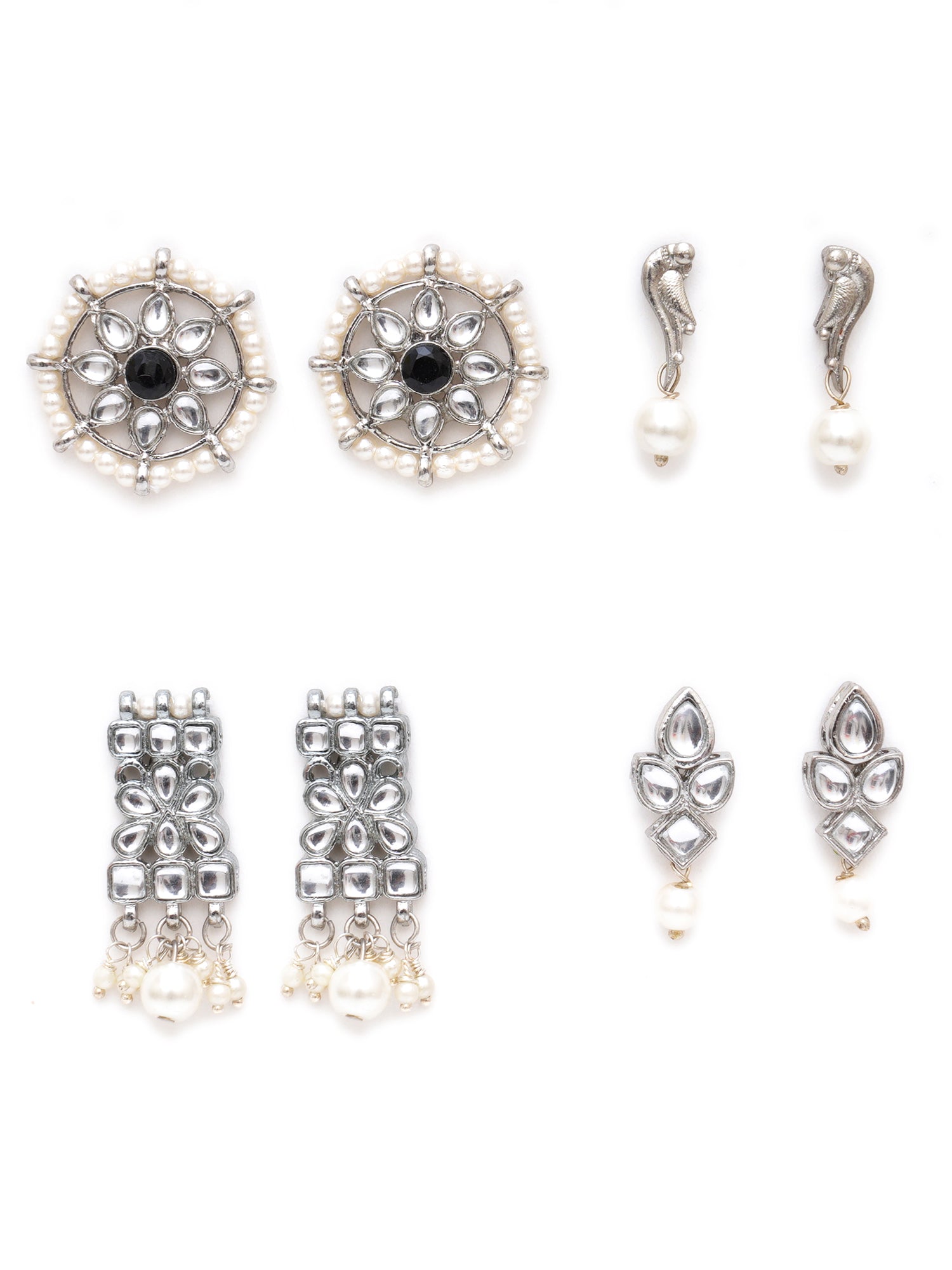 Karatcart Set of 4 Handcrafted Kundan Earrings Combo for Women