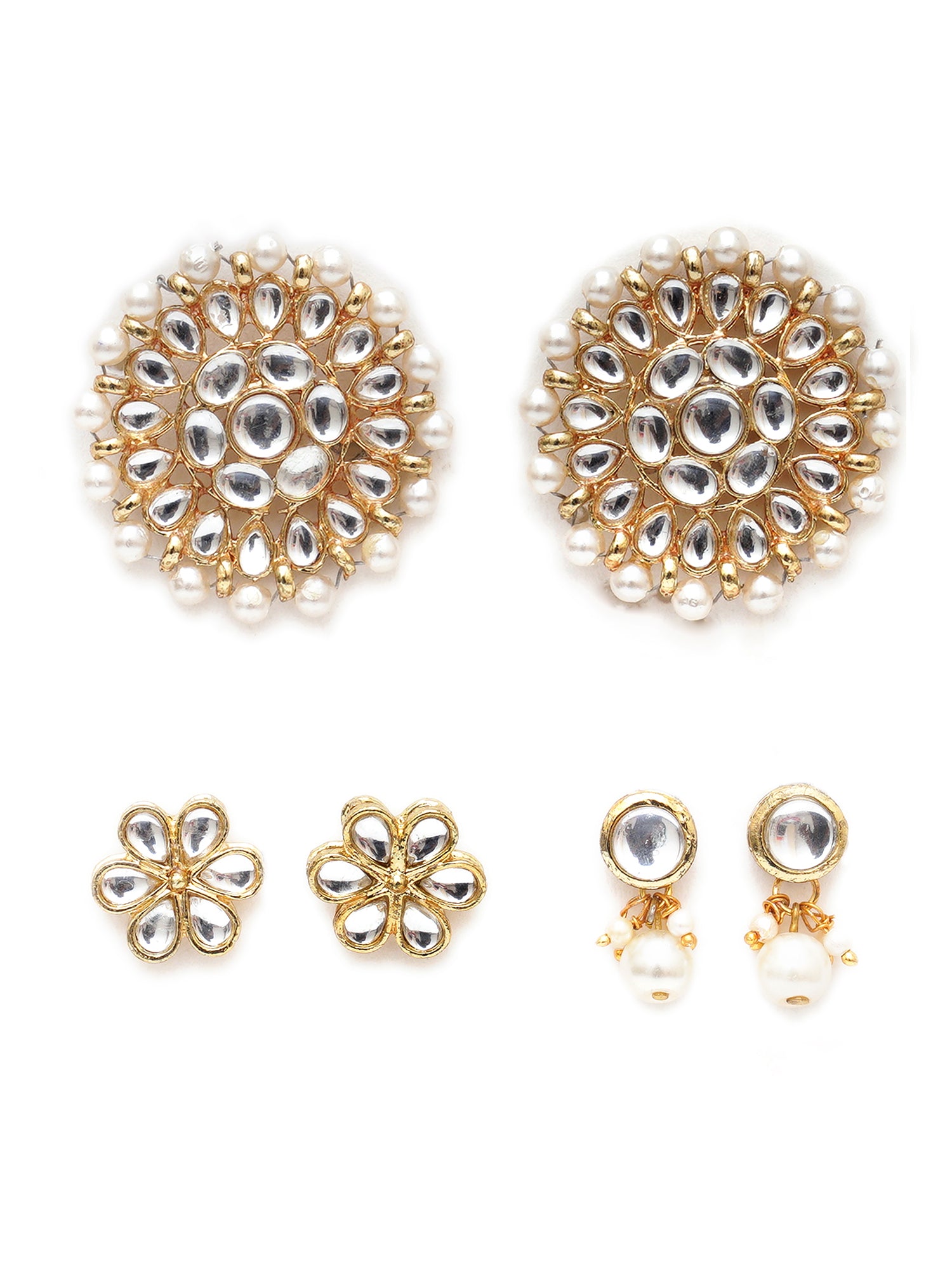 Karatcart Set of 3 Handcrafted Kundan Earrings Combo for Women