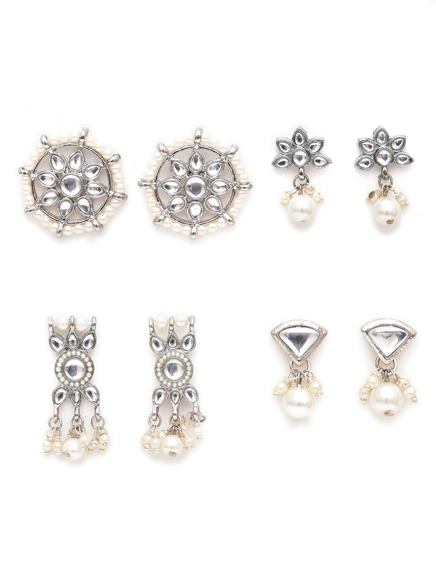Karatcart Set of 4 Handcrafted Kundan Earrings Combo for Women