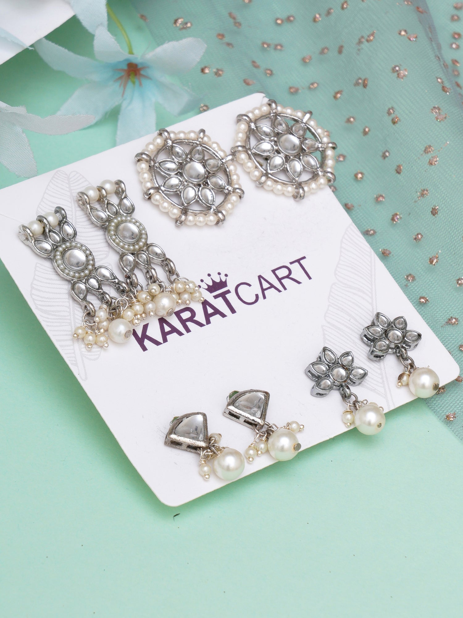 • Karatcart Set of 4 Handcrafted Kundan Earrings Combo for Women. Our products are designed with high-quality Kundan Stones and these products are enhanced with plating that are skin-friendly & with love to reach your heart.