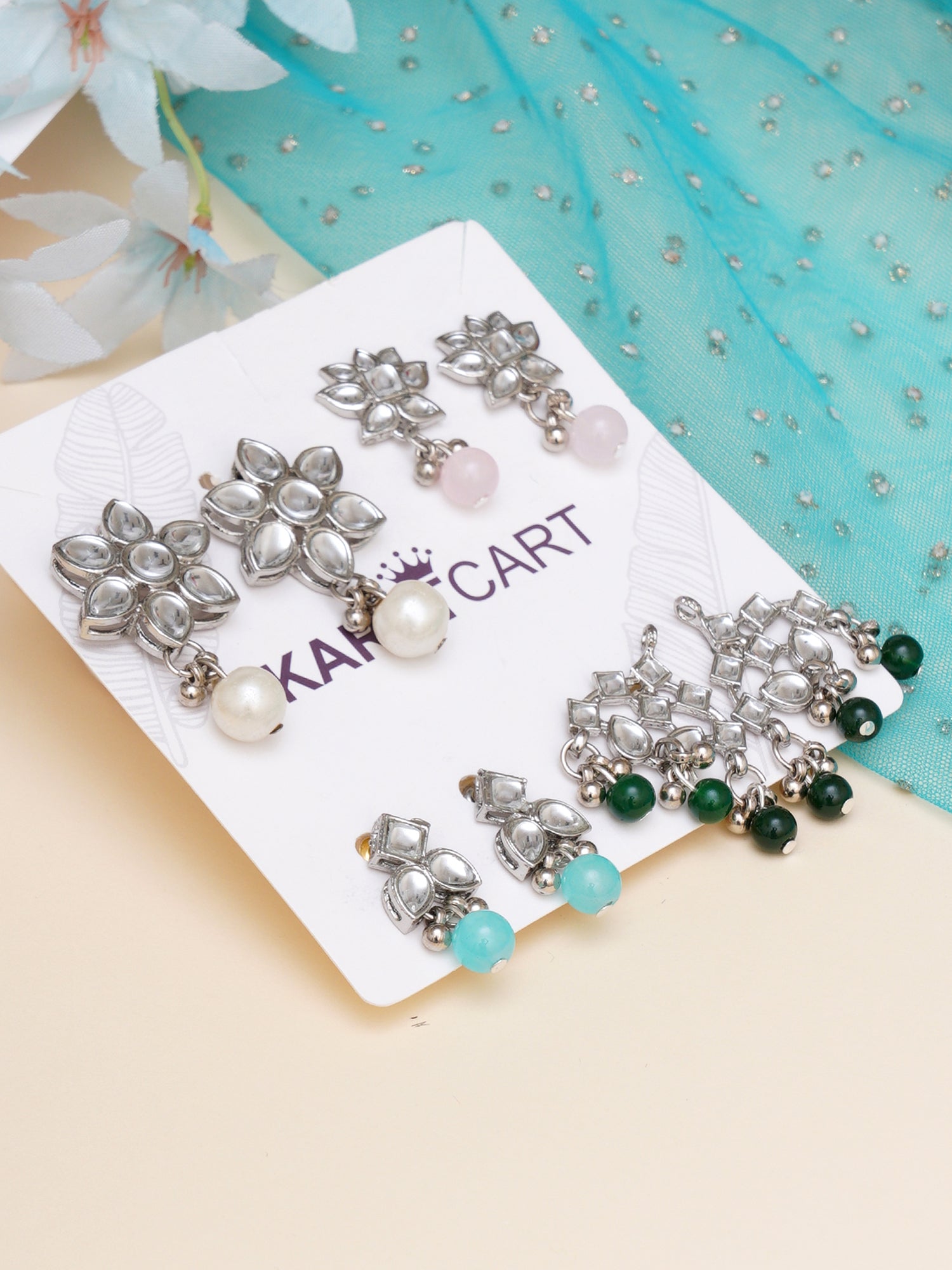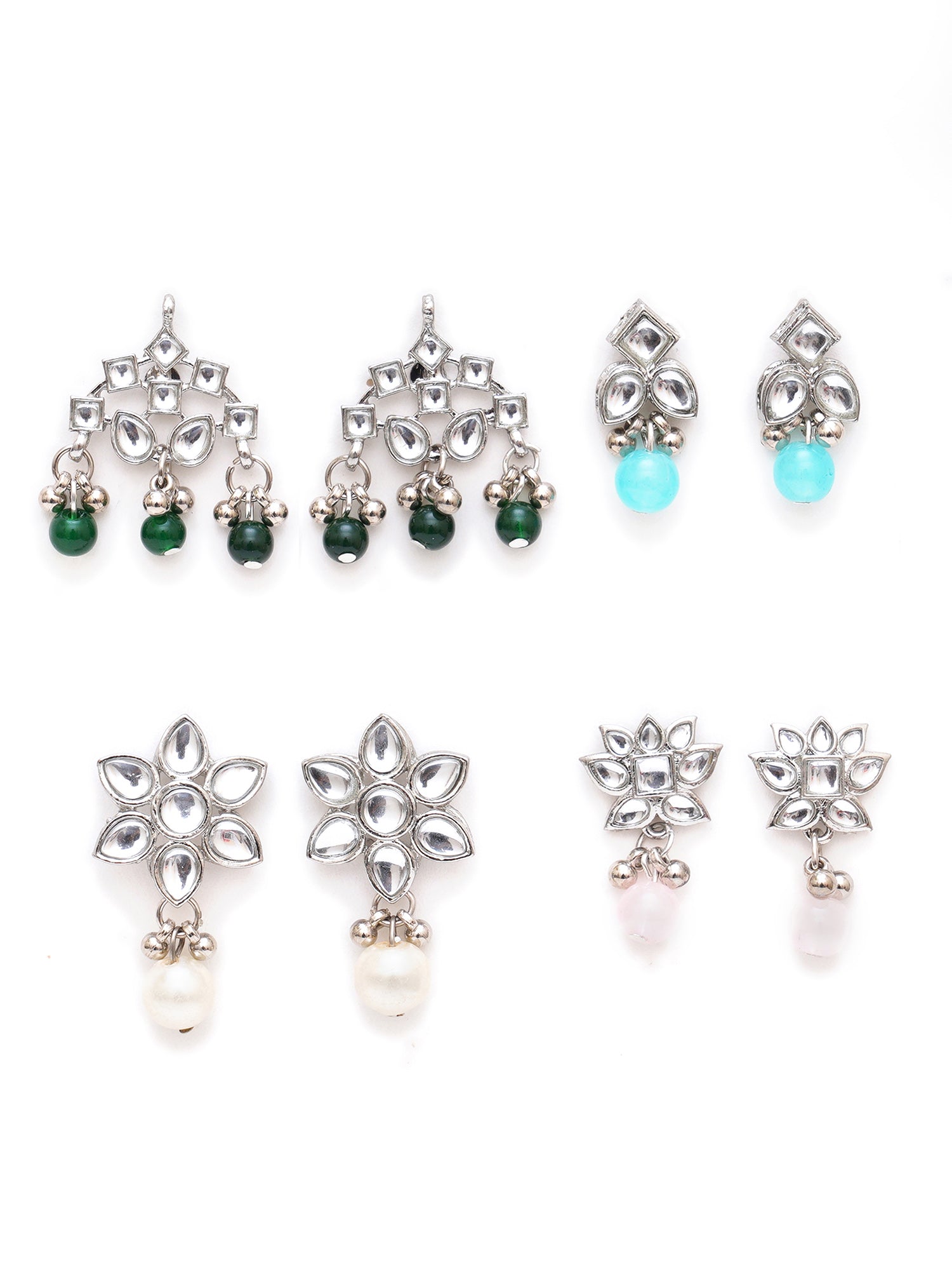 Karatcart Set of 4 Handcrafted Kundan Earrings Combo for Women