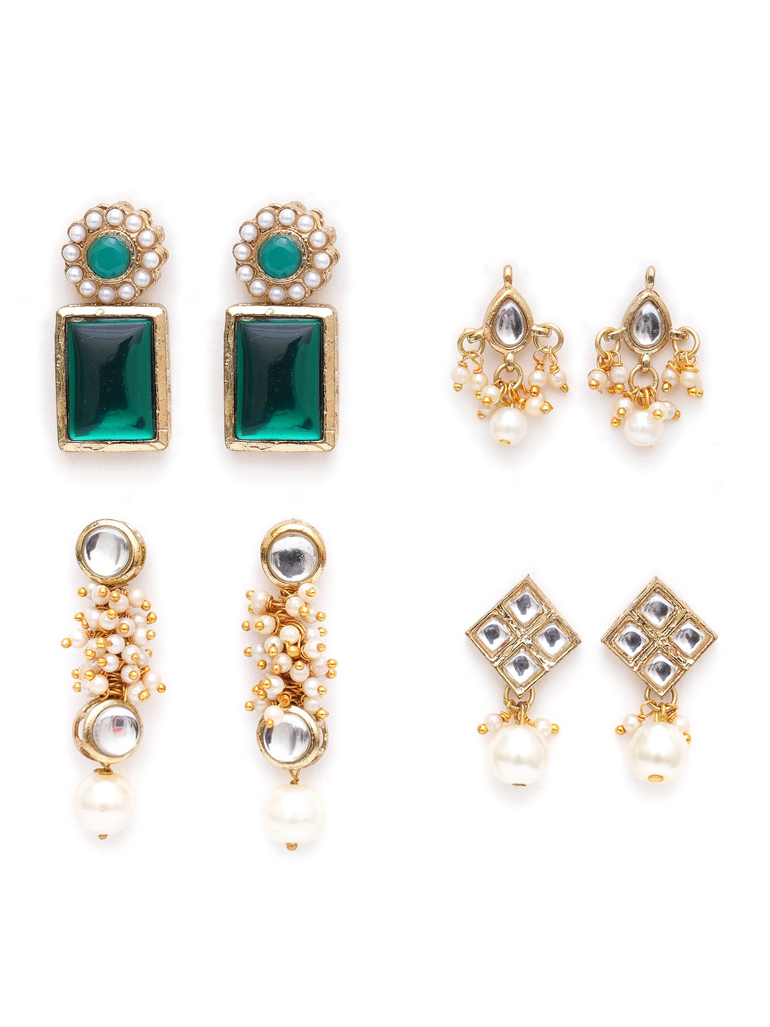 Karatcart Set of 4 Handcrafted Kundan Earrings Combo for Women