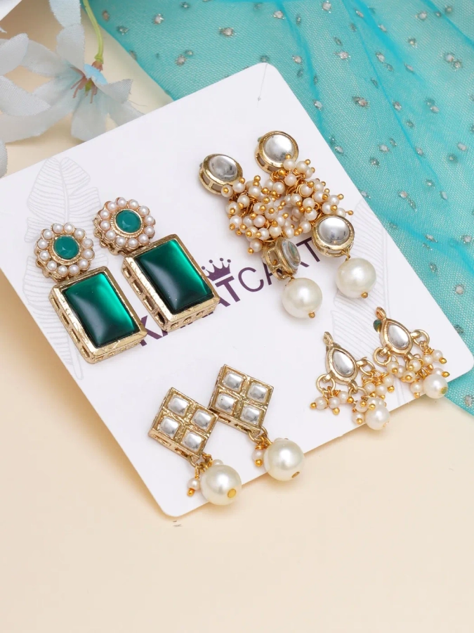 • Karatcart Set of 4 Handcrafted Kundan Earrings Combo for Women. Our products are designed with high-quality Kundan Stones and these products are enhanced with plating that are skin-friendly & with love to reach your heart.