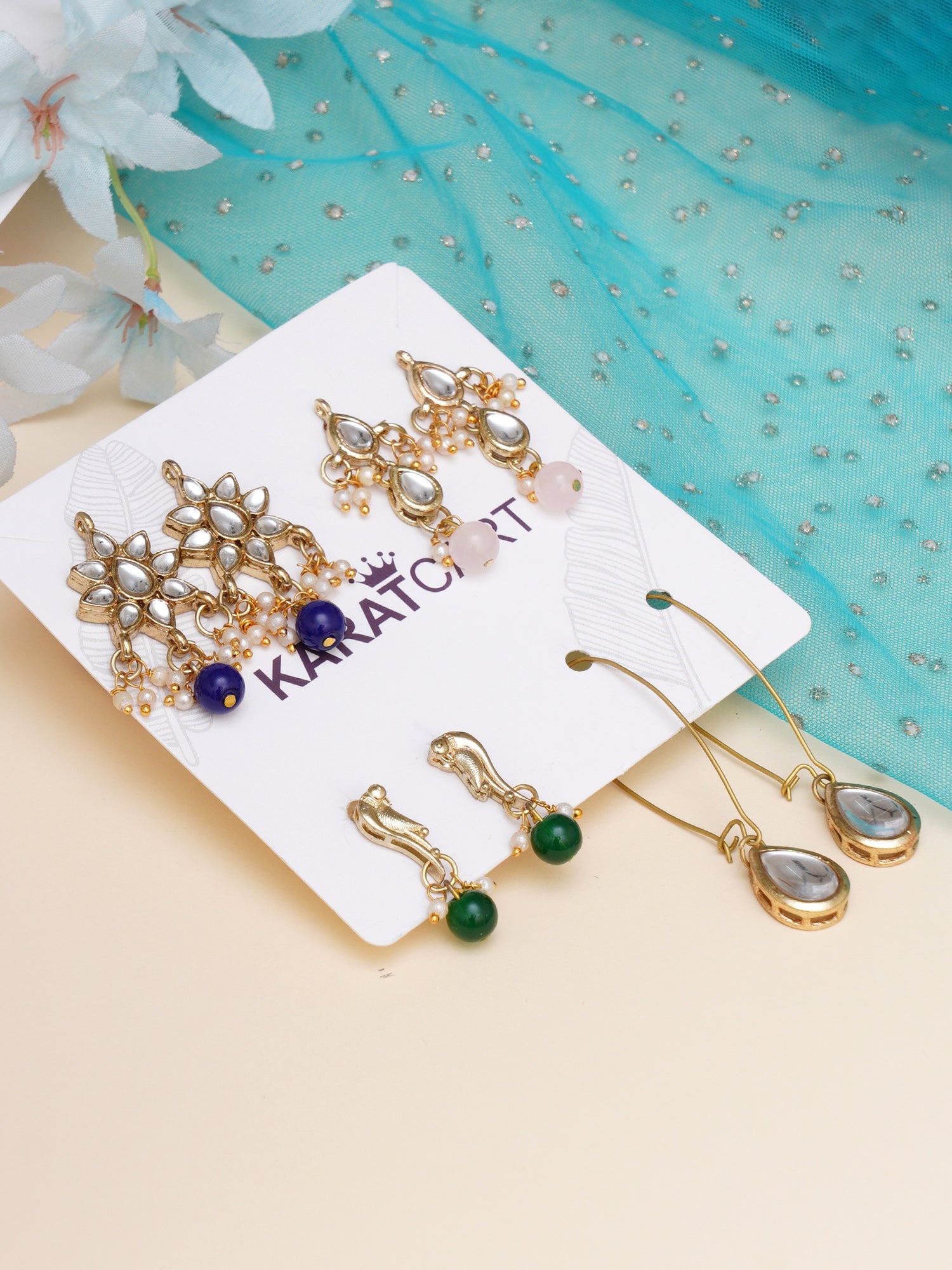Karatcart Set of 4 Handcrafted Kundan Earrings Combo for Women